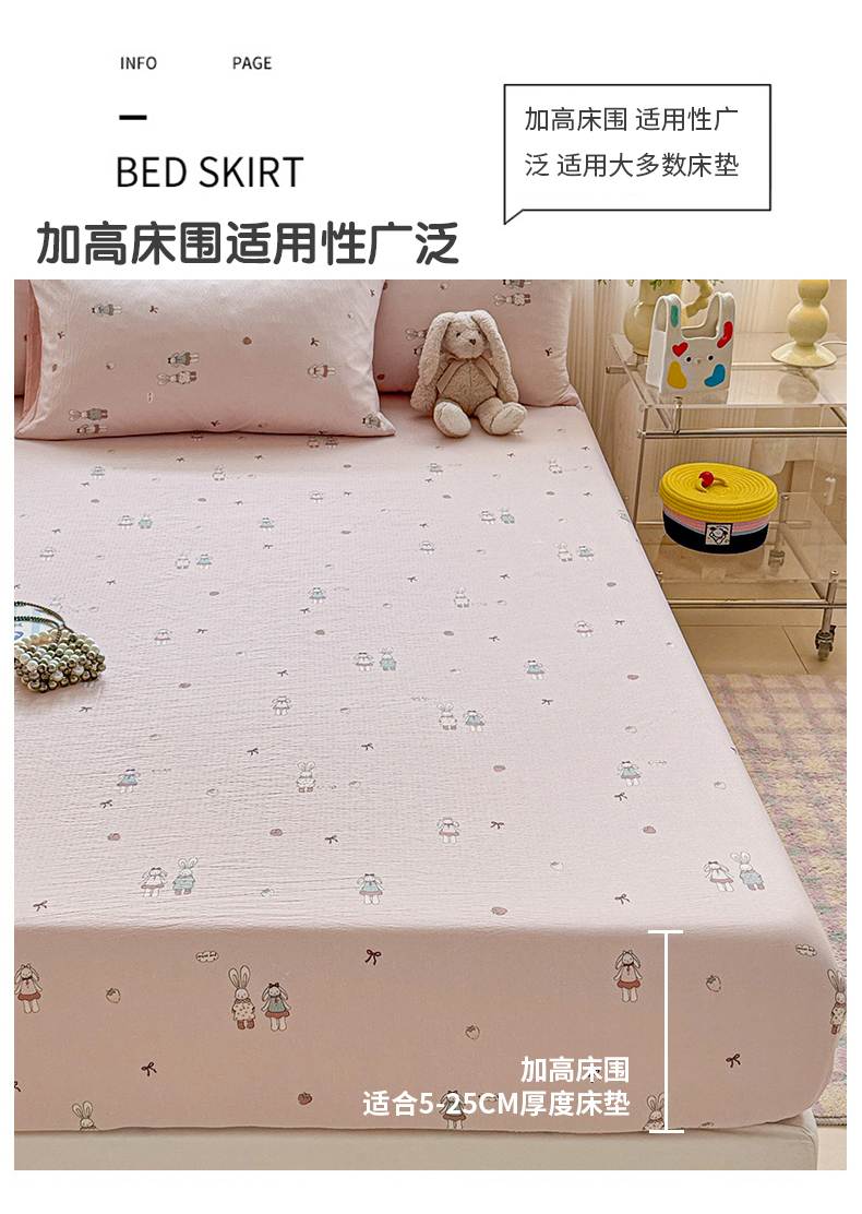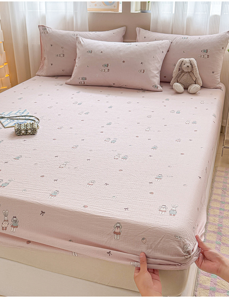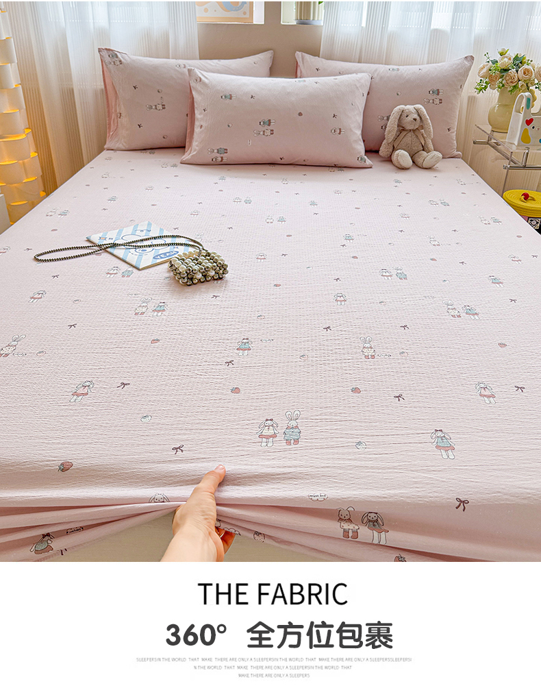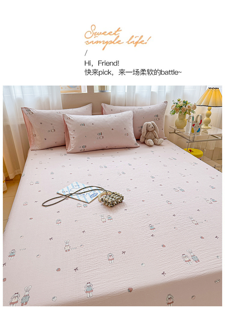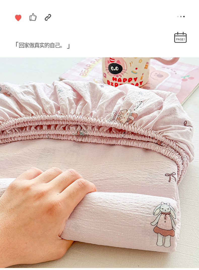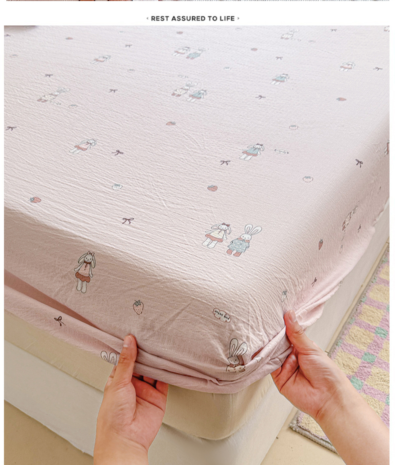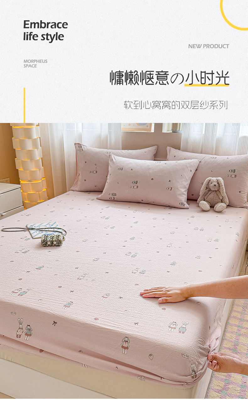 丽美人家纺 2026新款A类柔软双层皱皱纱印花单床笠床笠单件 兔小姐