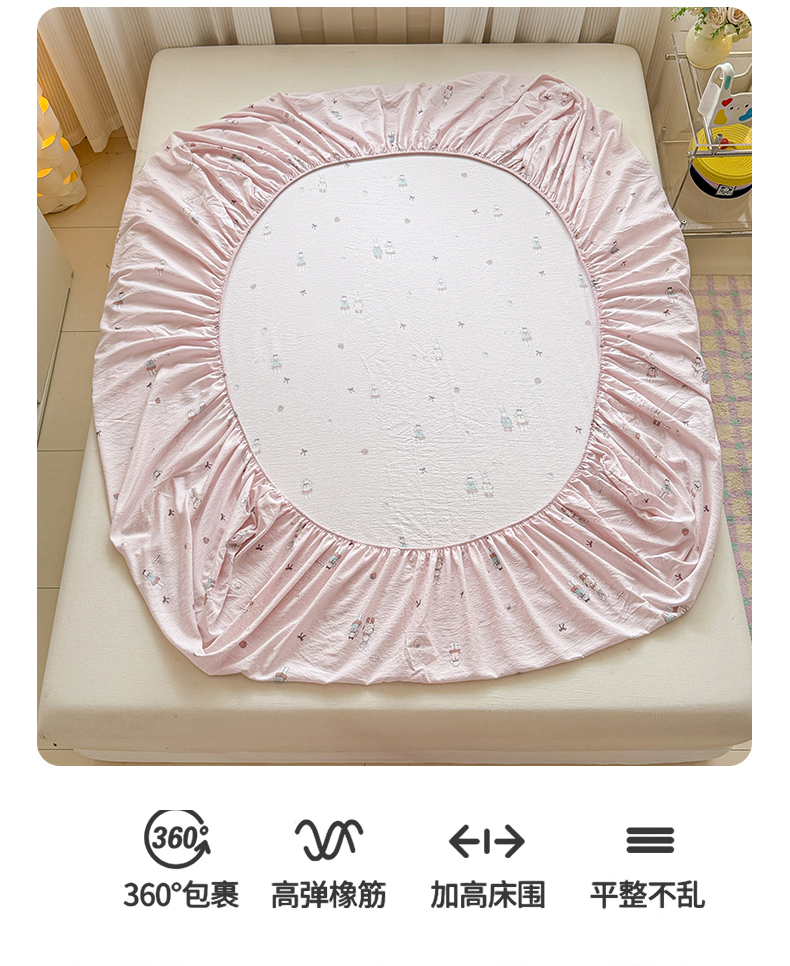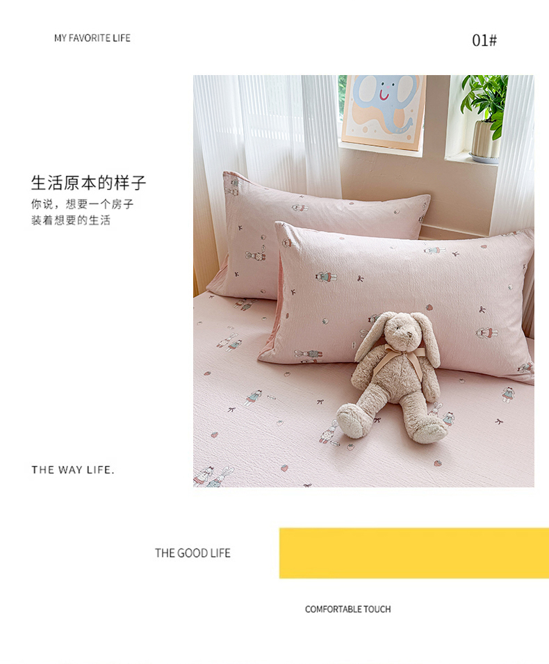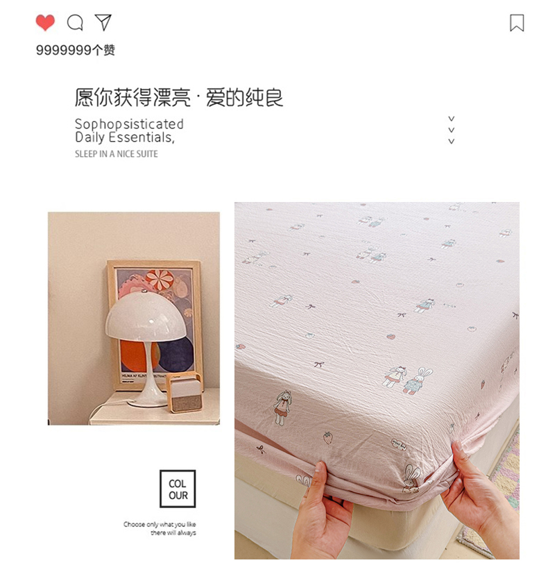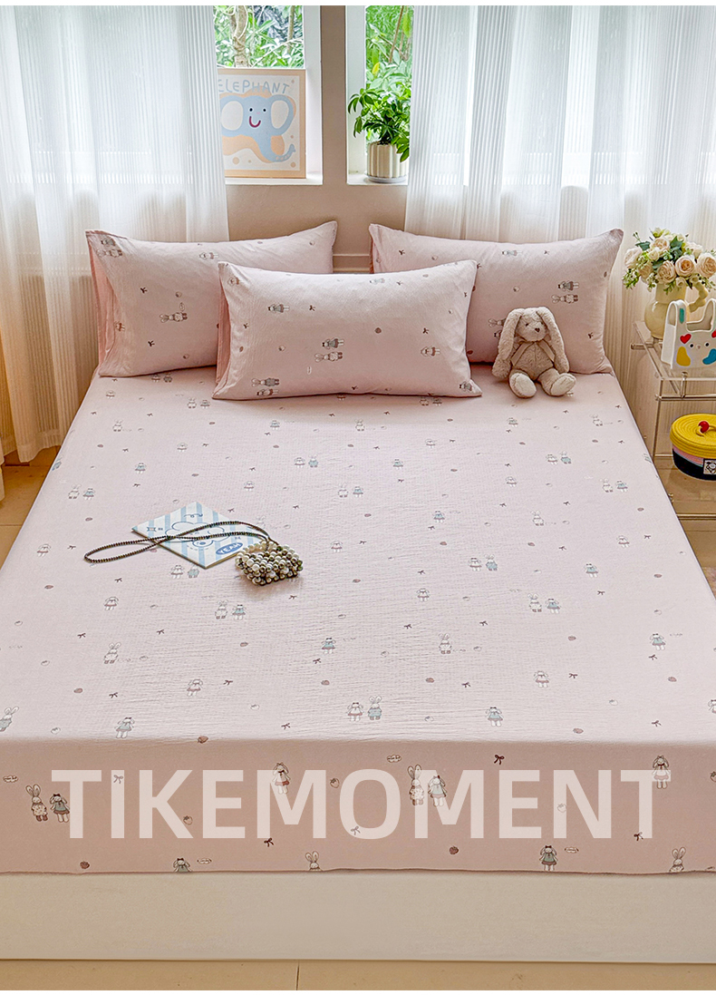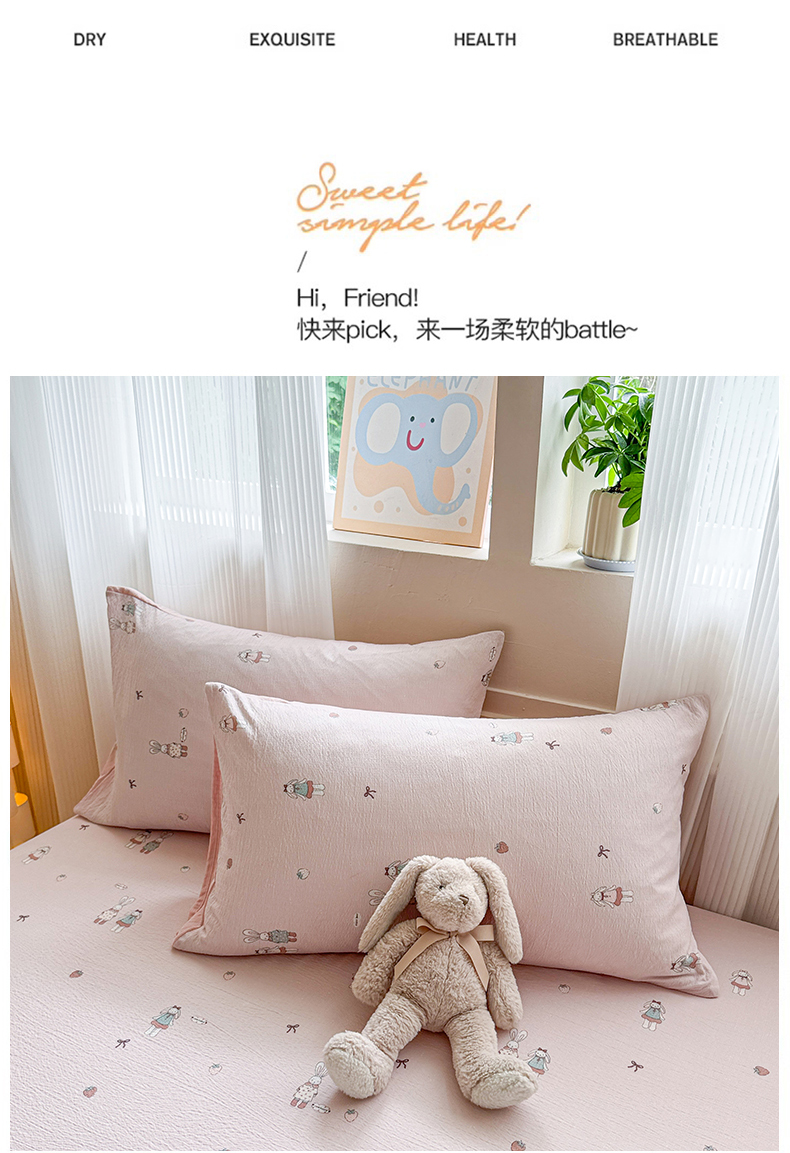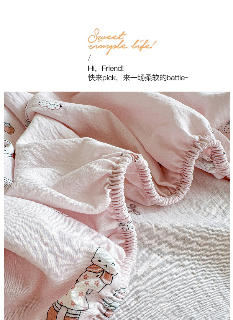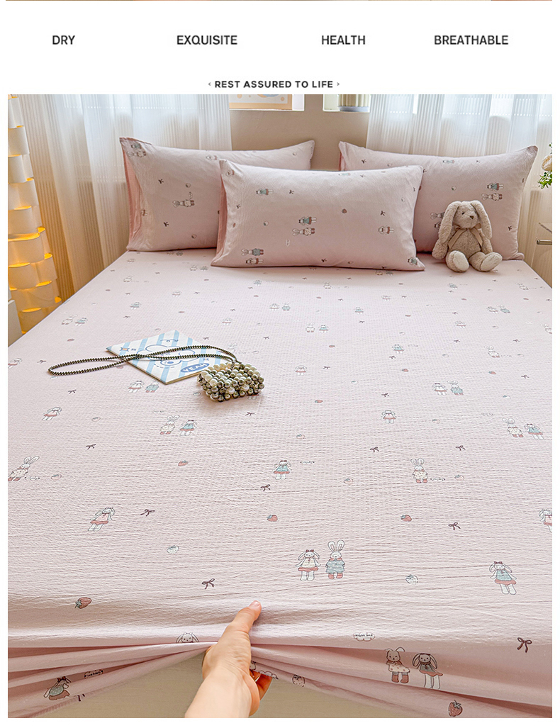 丽美人家纺 2026新款A类柔软双层皱皱纱印花单床笠床笠单件 兔小姐