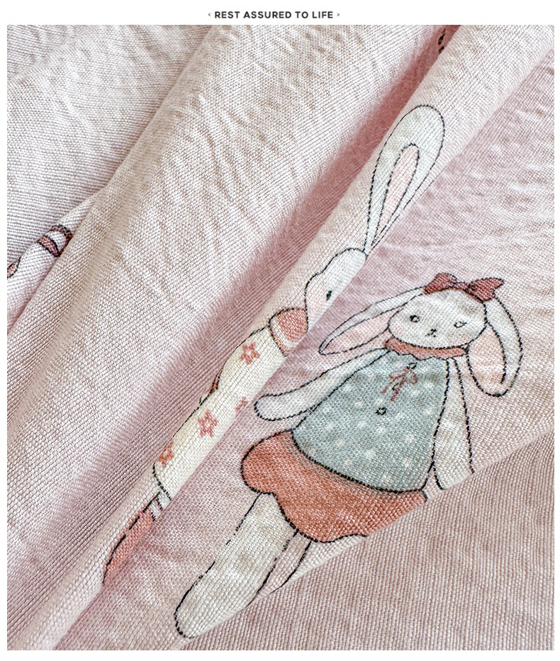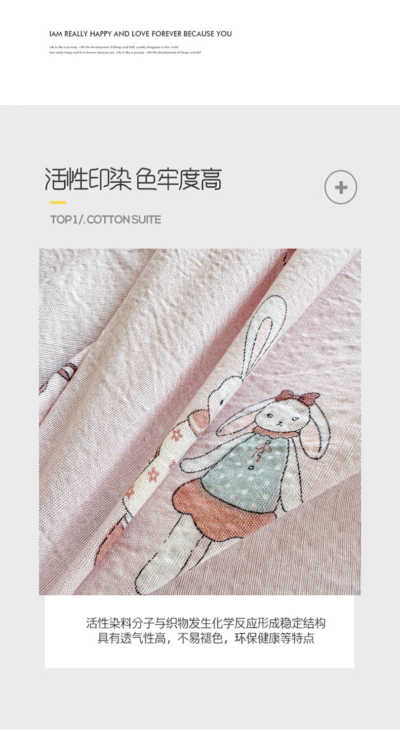 • 91家纺网 家纺一手货源 找家纺 丽美人家纺 2026新款A类柔软双层皱皱纱印花单床笠床笠单件 兔小姐