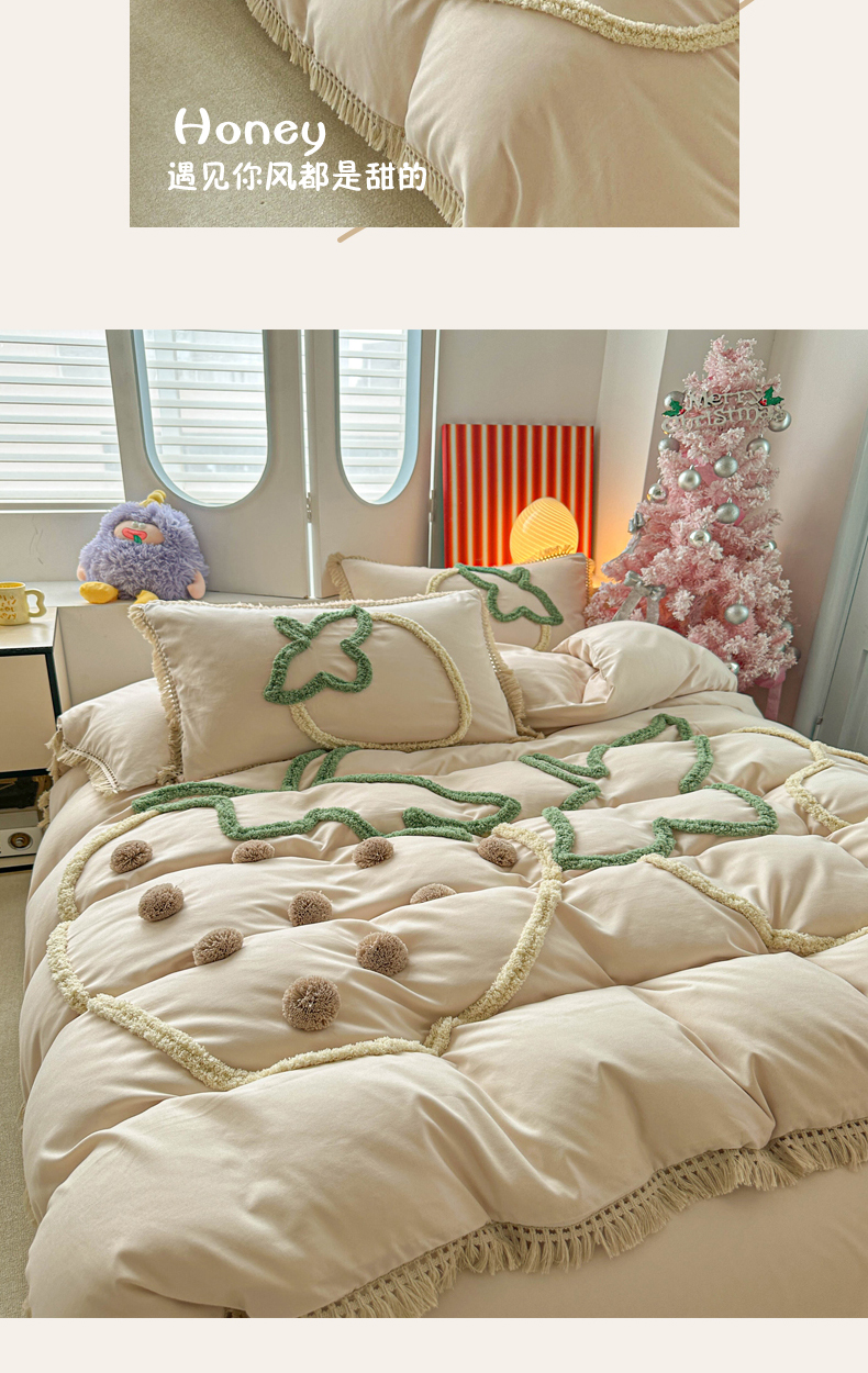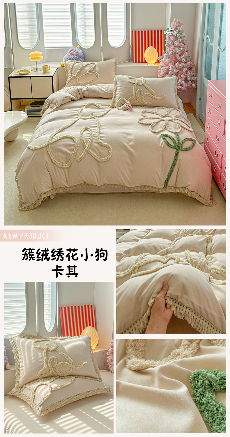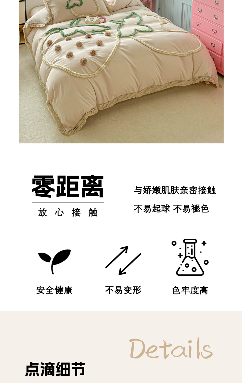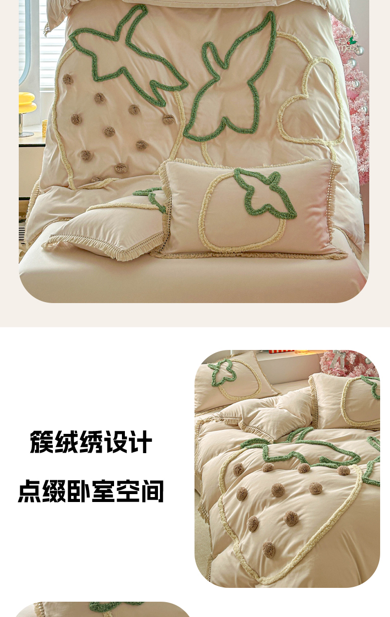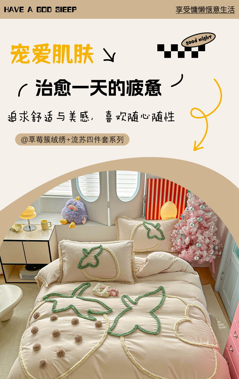当前位置: 91家纺网 > 商品网购 > 床品套件 > 四件套 > 其它四件套 > 缘生活 2026新款立体簇绒绣流苏四件套 大爱草莓-卡其