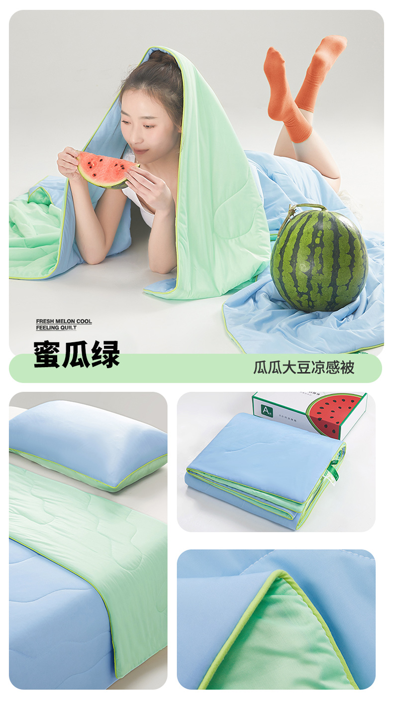 (总)爱彼家纺 2026新款生活果蔬夏凉被凉感舒适冰凉双拼果蔬夏被夏凉被空调被,果蔬夏被-冰兰花,果蔬夏被-哈密瓜绿,果蔬夏被-西瓜绿
