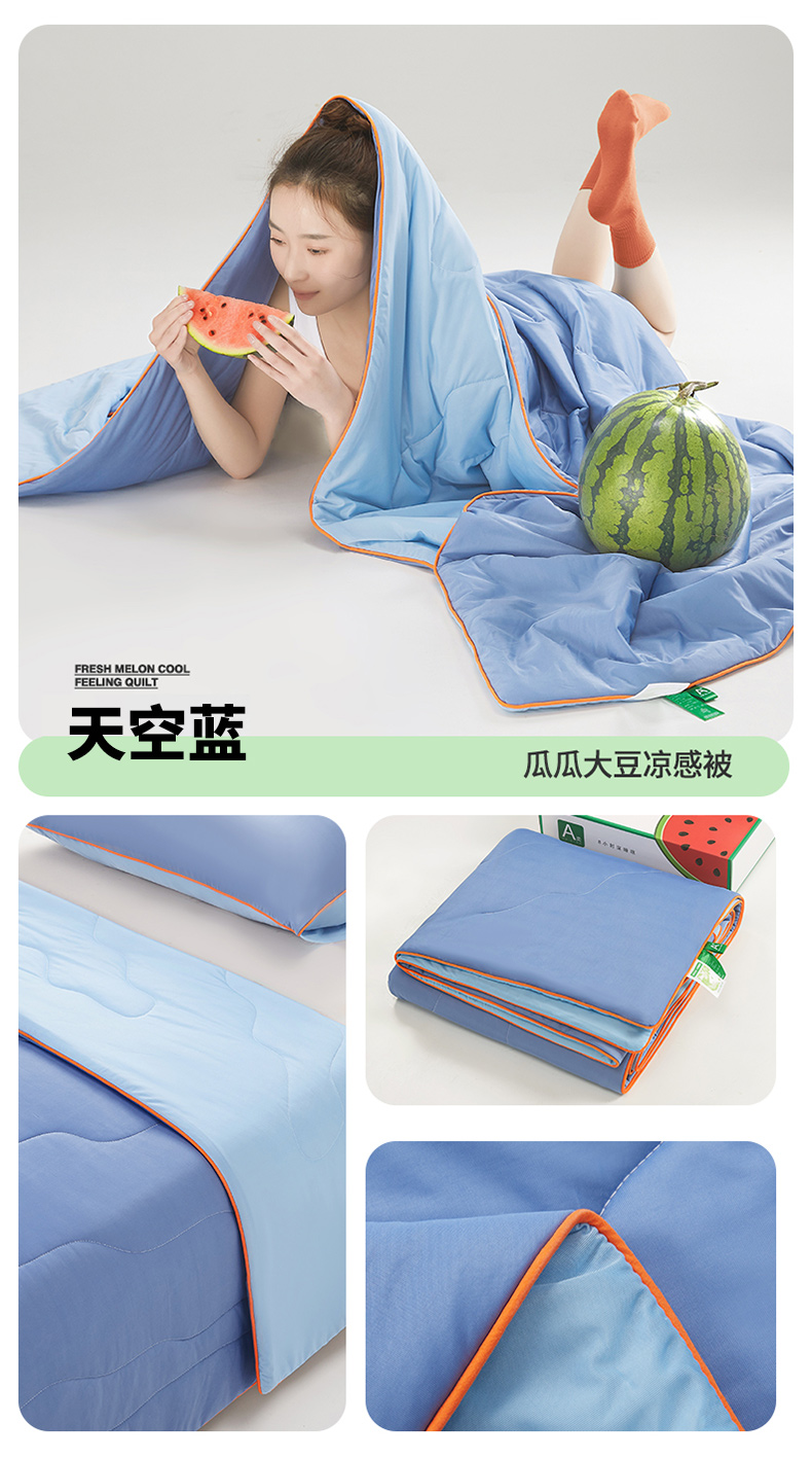 商品名称:爱彼家纺 2026新款A类氨纶凉感丝西瓜大豆空调被夏被夏凉被(控价最低79.9/89.9/99.9) 瓜瓜被-天空蓝