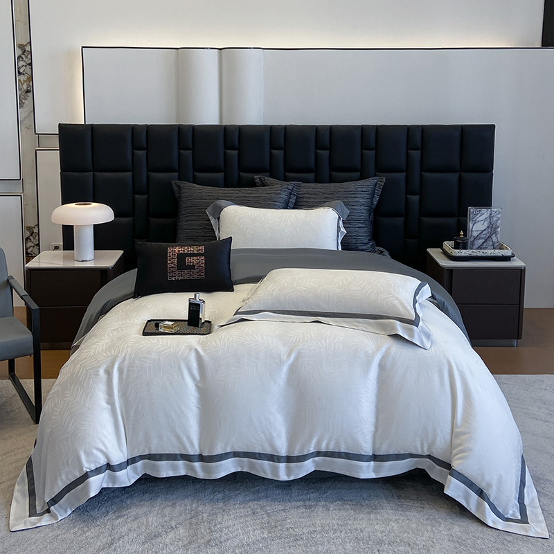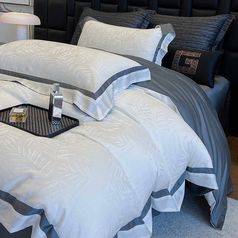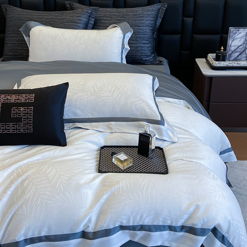 (总)若未家居2023新款轻奢意式50支全棉长绒棉四件套-水墨,贵族白,雾棕,烟蓝