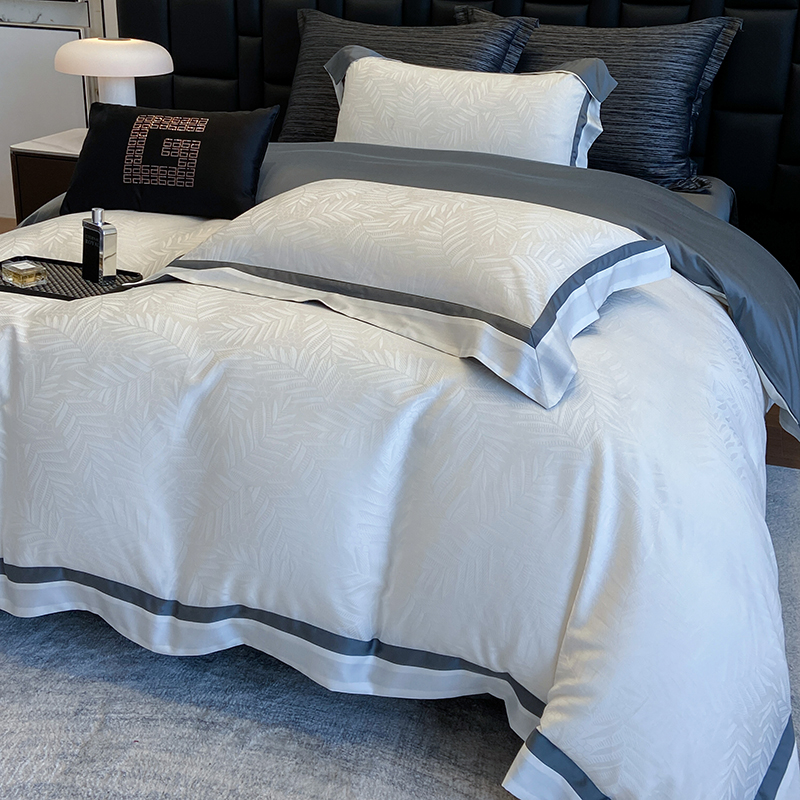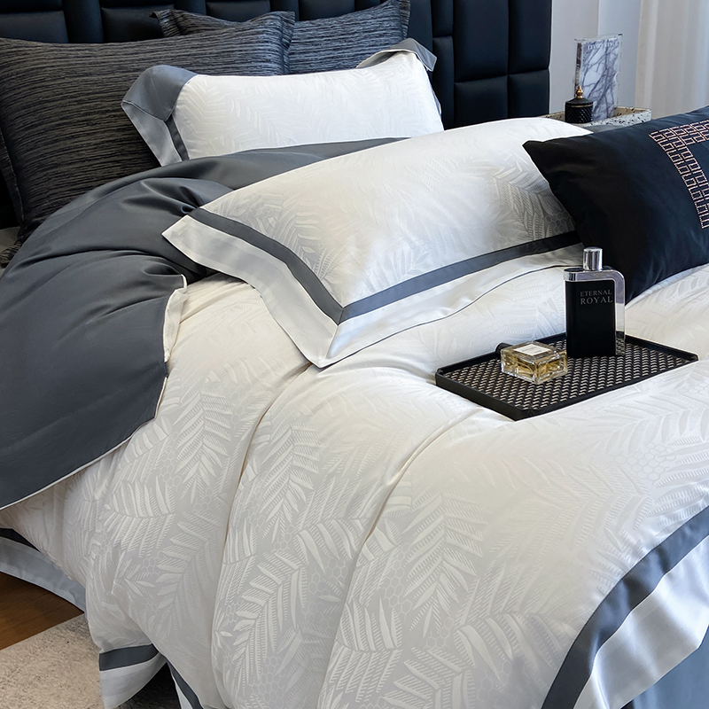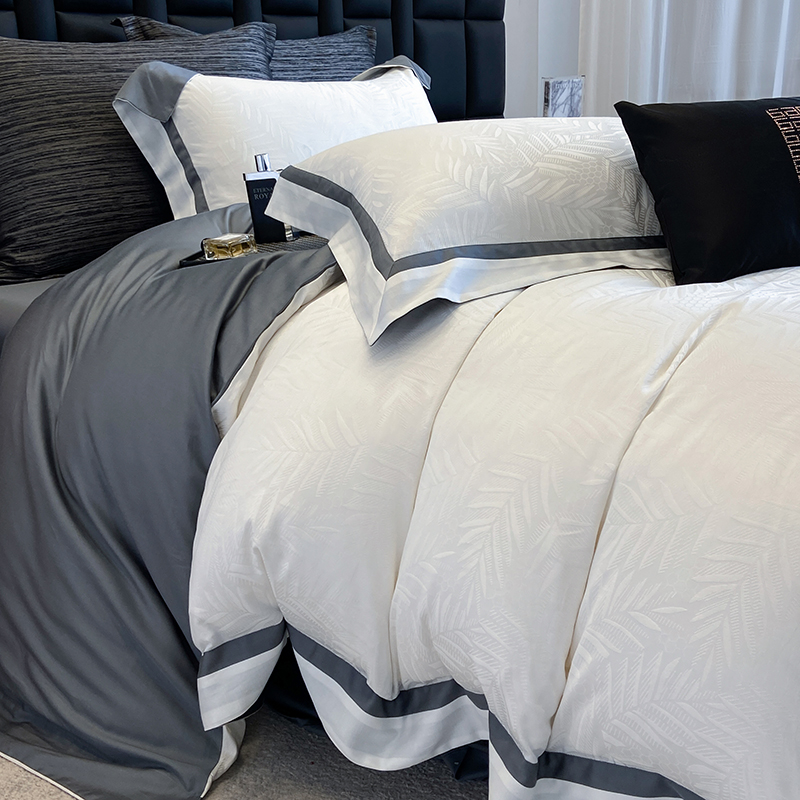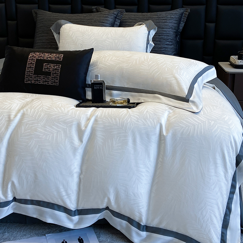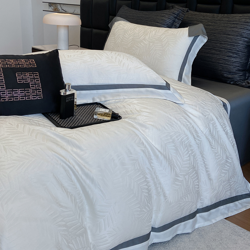 商品名称:若未家居 LOVEWE HOUSE 2026新款双拼角提花兰精天丝棉四件套-叶澜( 控价券后不低于398) 叶澜-白
