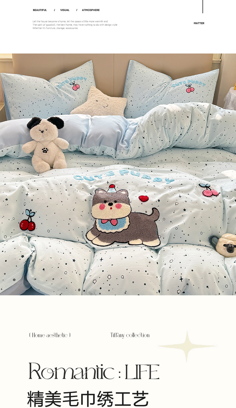 (总)曲之慕 2026新款直播爆款混搭风毛巾绣四件套学生韩版三件套,可爱兔,好心情,伙伴狗,可爱小猫咪,萌萌兔,圣诞熊,心动信号,星空缘,樱桃小狗