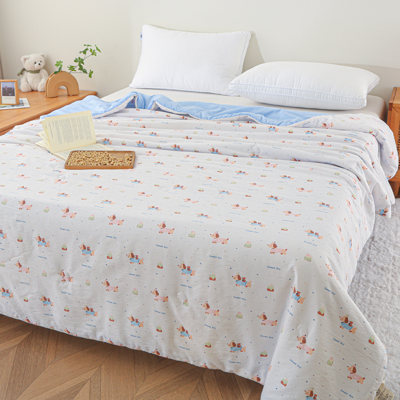 (总)亚龙工厂店 2026春夏新款爆款法式小香风皱皱纱木棉大豆被夏被,白色,狗狗派对,蝴蝶结草莓,灰色,清雅淡蓝,十里桃花,天蓝色,夏天,玉色,紫色,紫萱