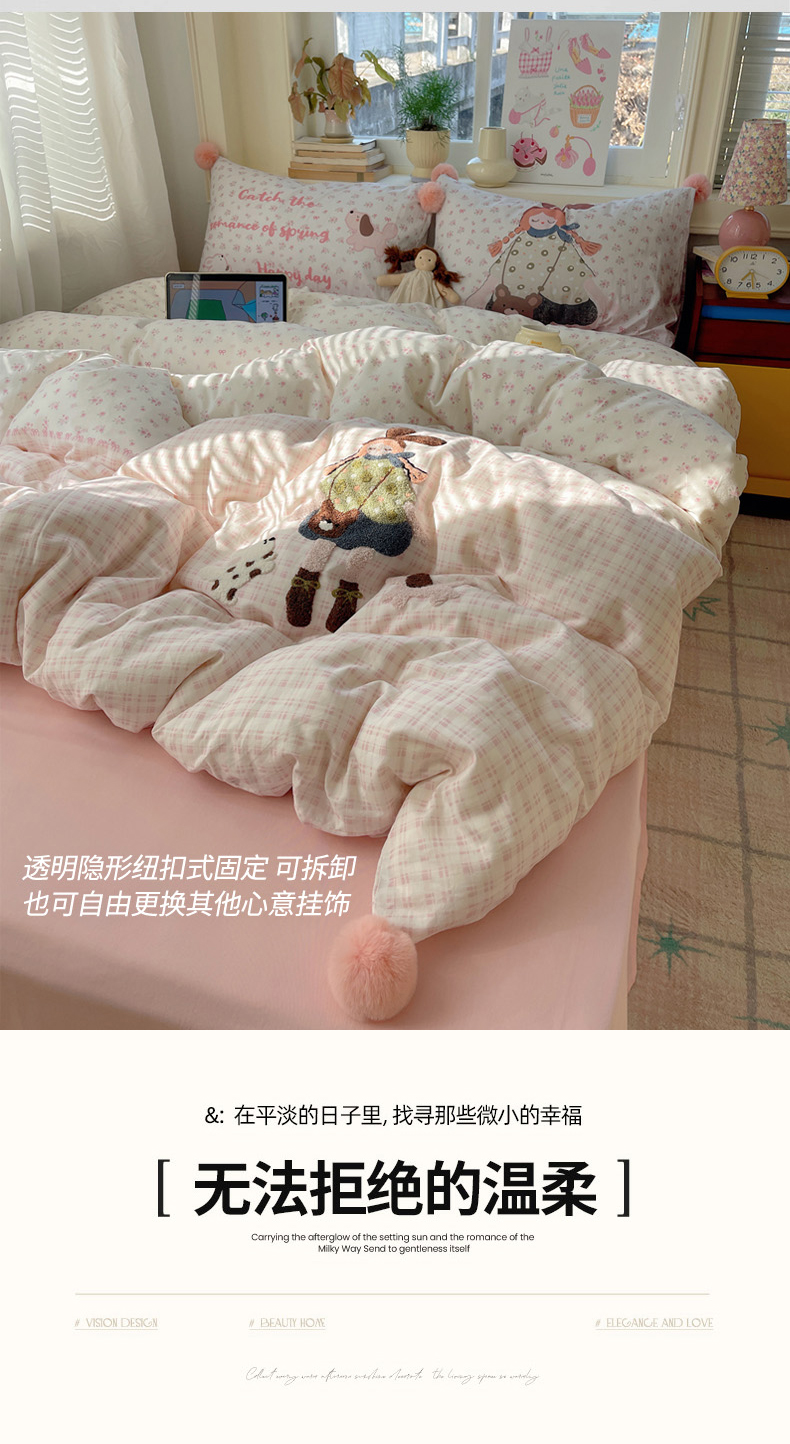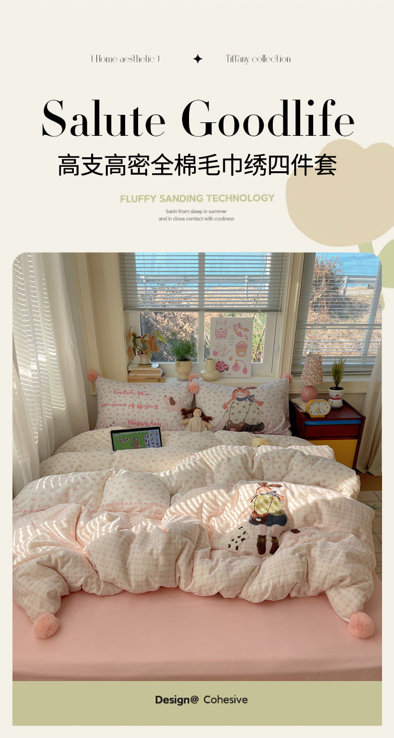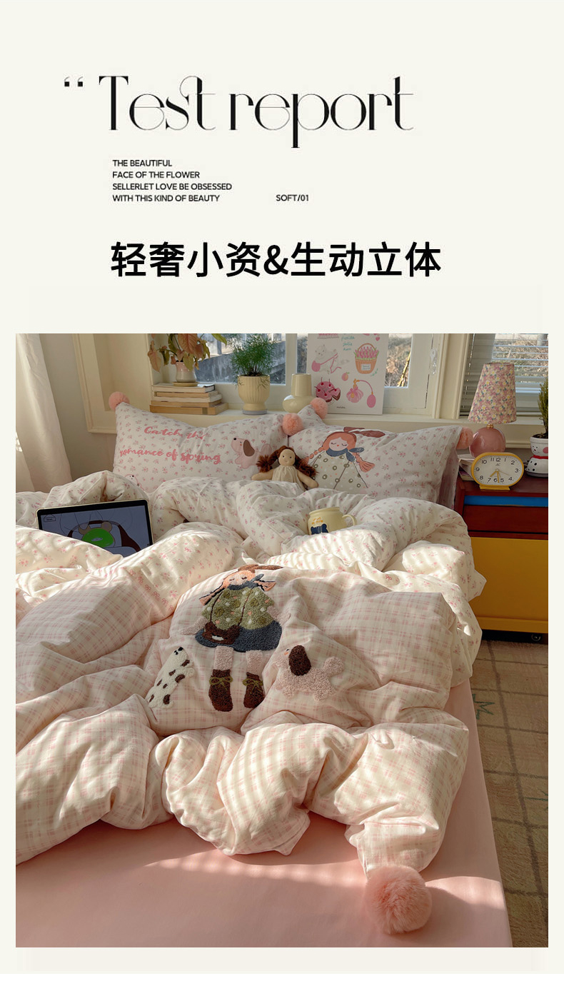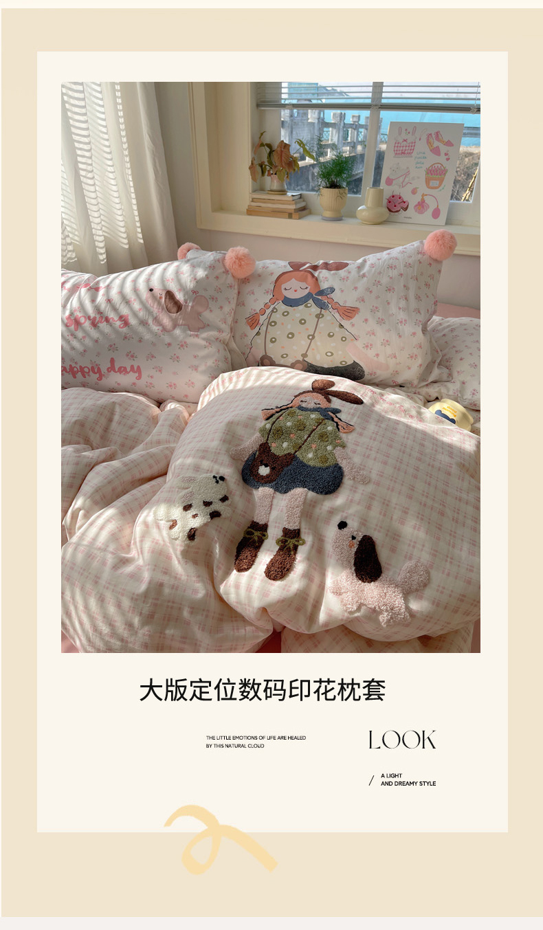 丽涵家纺 2026新款全棉数码印花毛巾绣四件套-少女派 甜梦满溢
