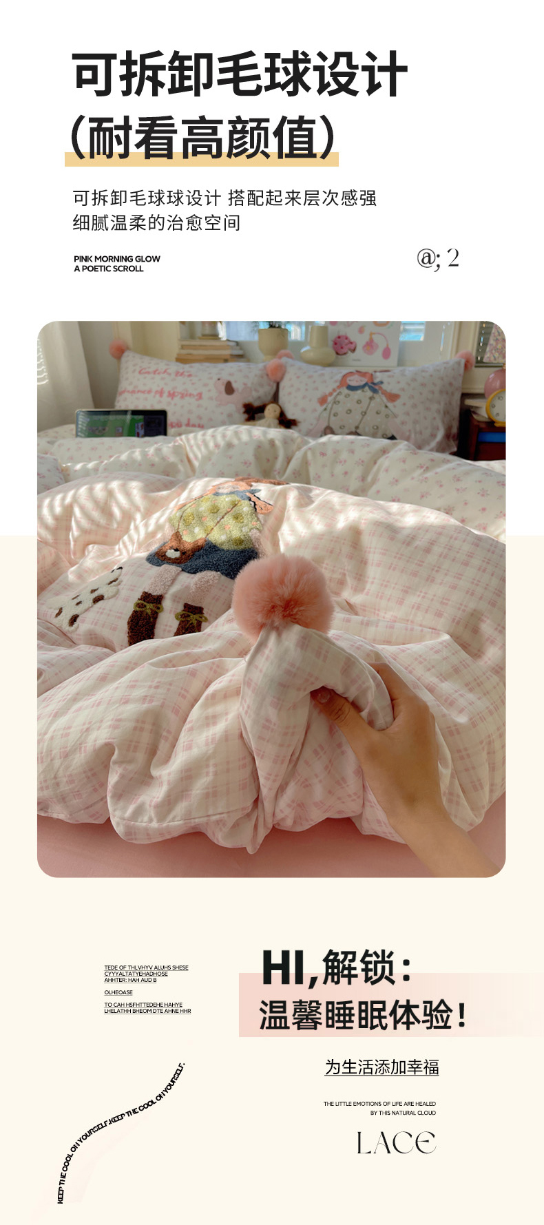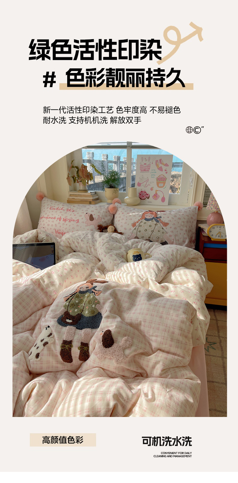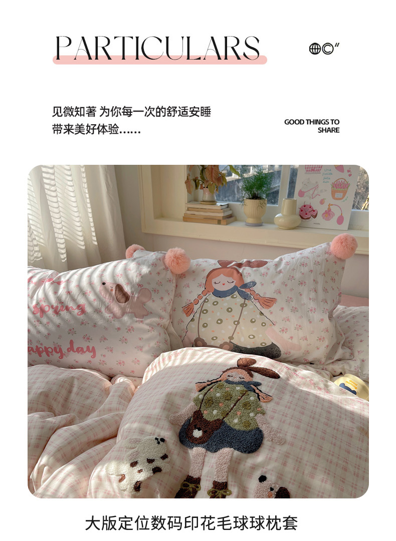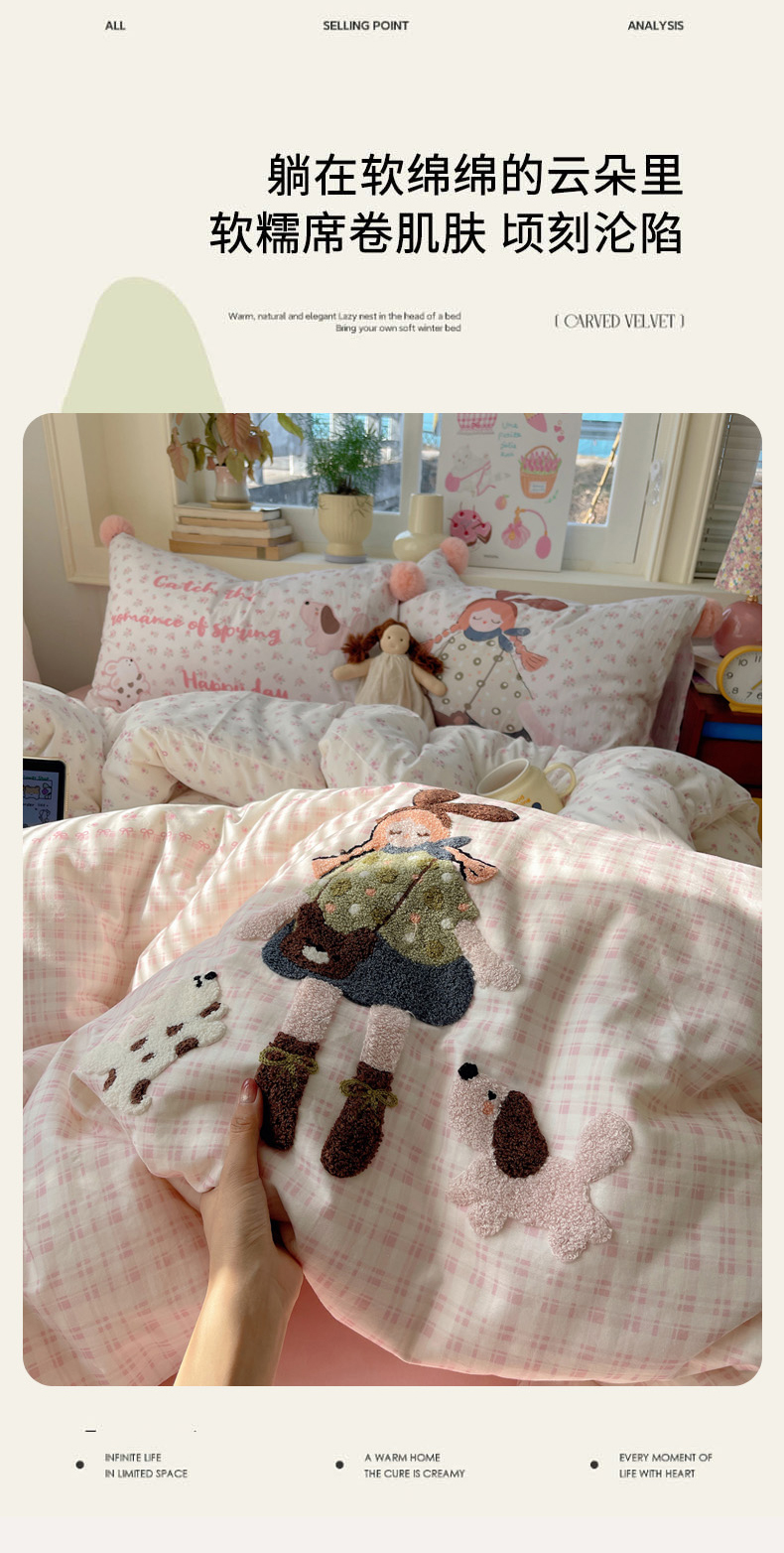 丽涵家纺 2026新款全棉数码印花毛巾绣四件套-少女派 甜梦满溢