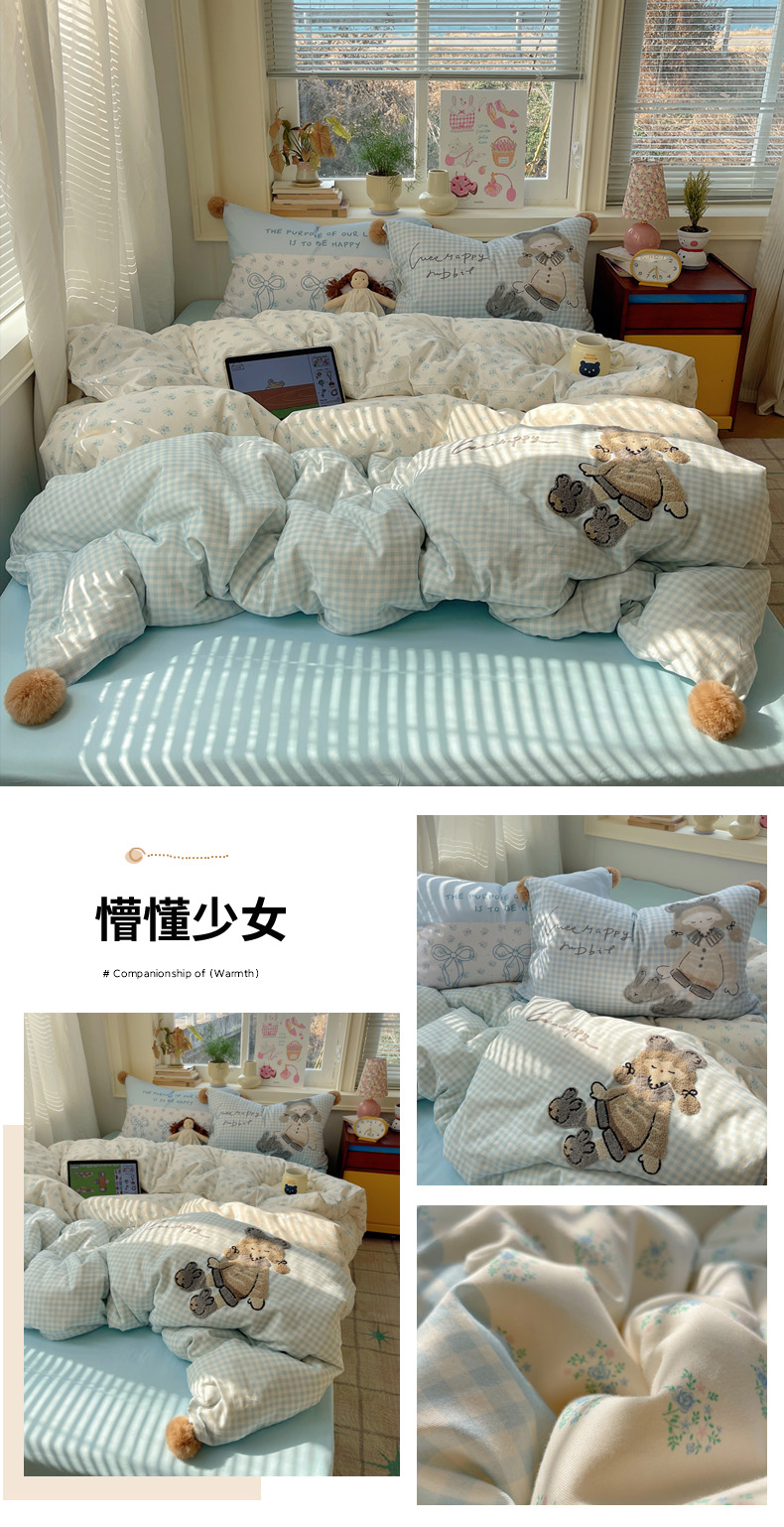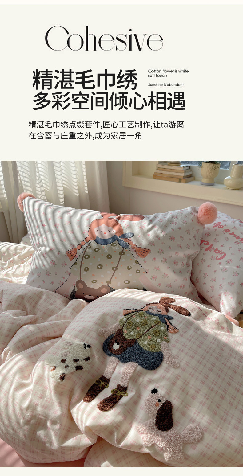 (总)丽涵家纺 2026新款全棉数码印花毛巾绣四件套-少女派,懵懂少女,熊崽奇遇,抱抱熊,甜梦满溢,甜茶女孩