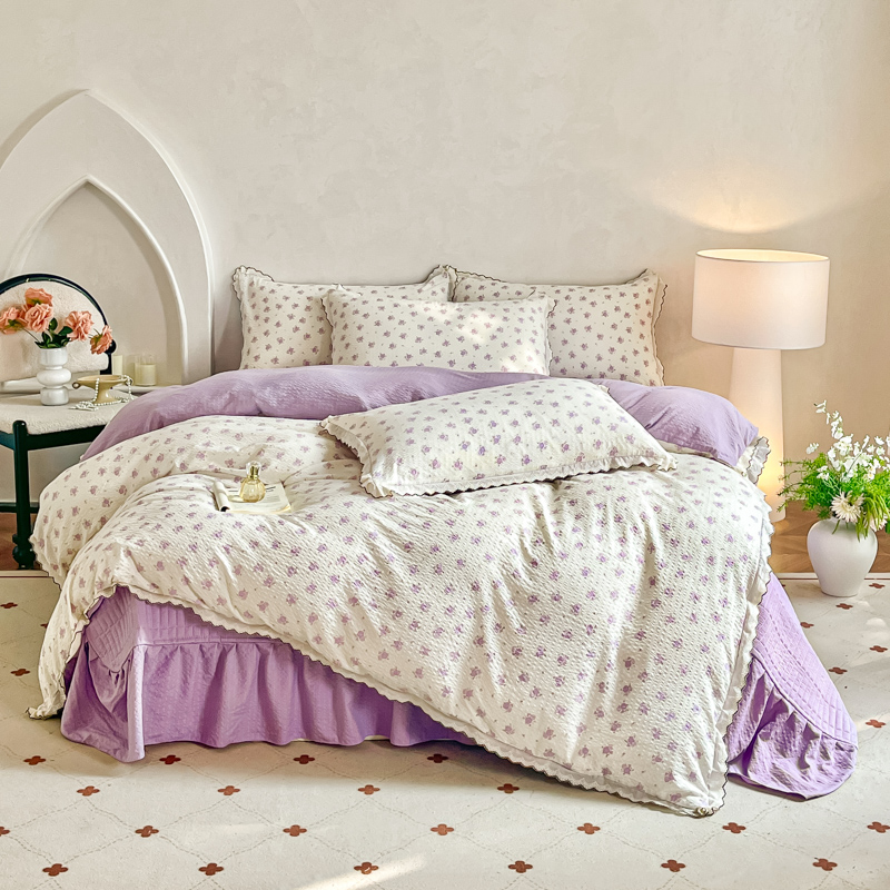(总)尚美 2026新款泡芙棉床盖全棉绣花小花韩版四件套