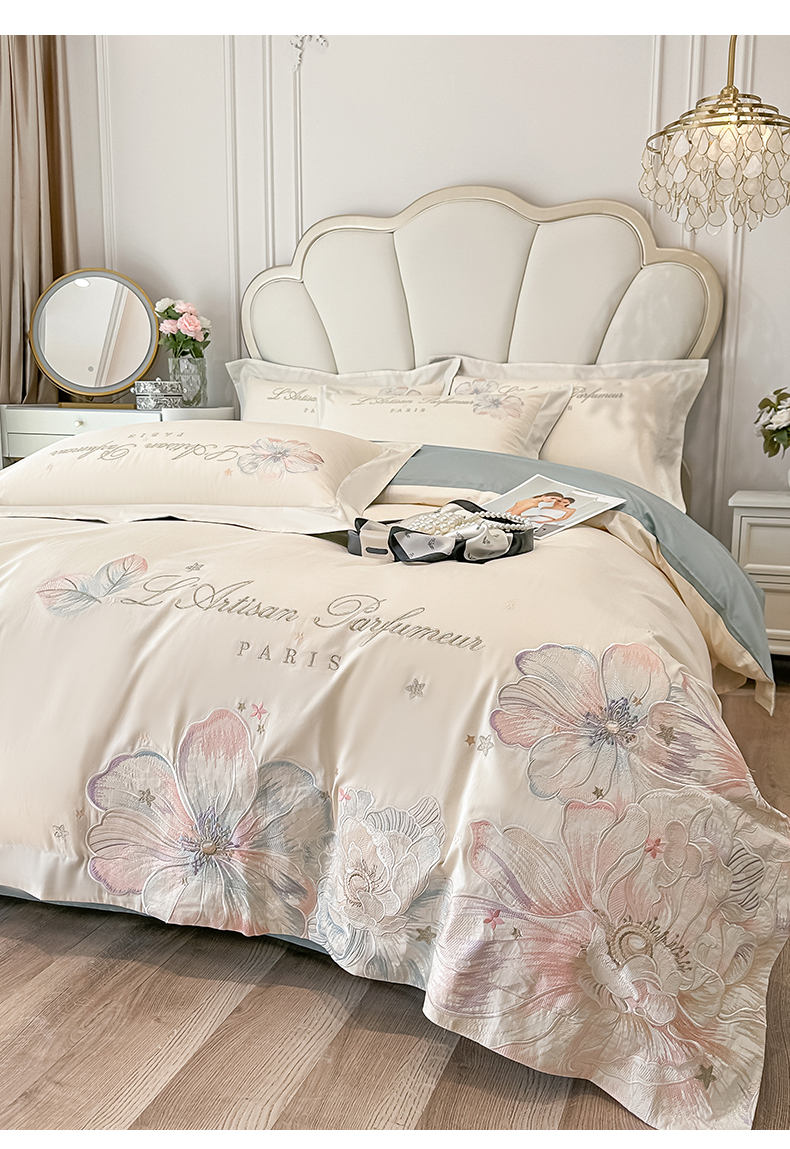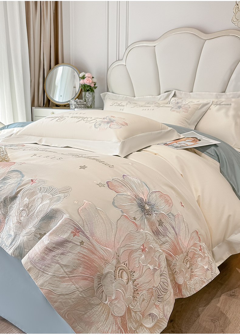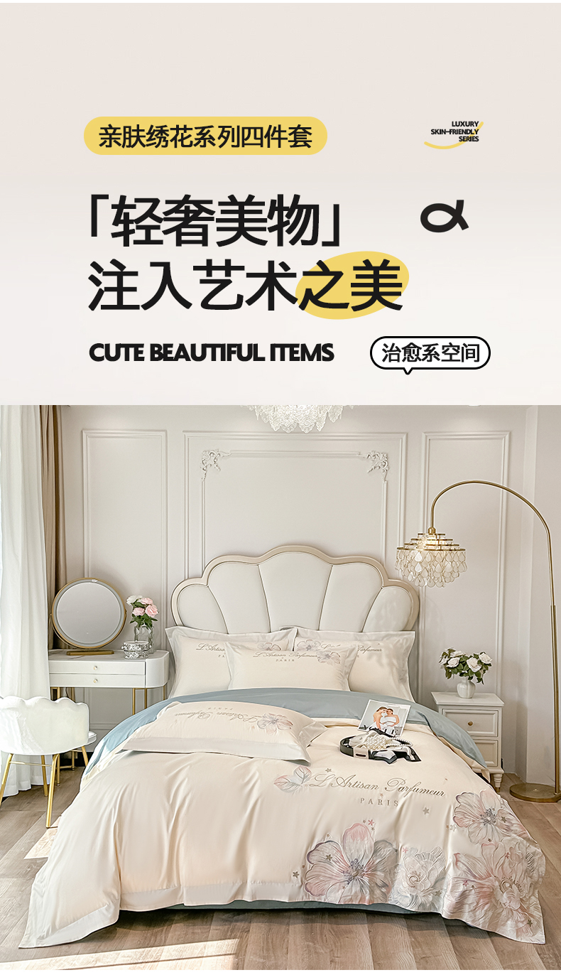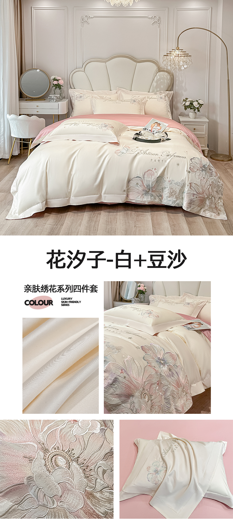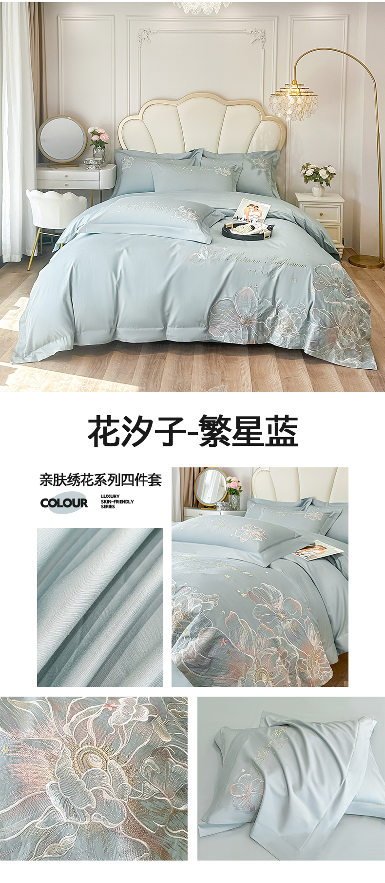 当前位置: 91家纺网 > 商品网购 > 床品套件 > 四件套 > 其它四件套 > 置顶家纺 2026新款花汐子亲肤刺绣小清新四件套 花汐子-白+繁星蓝