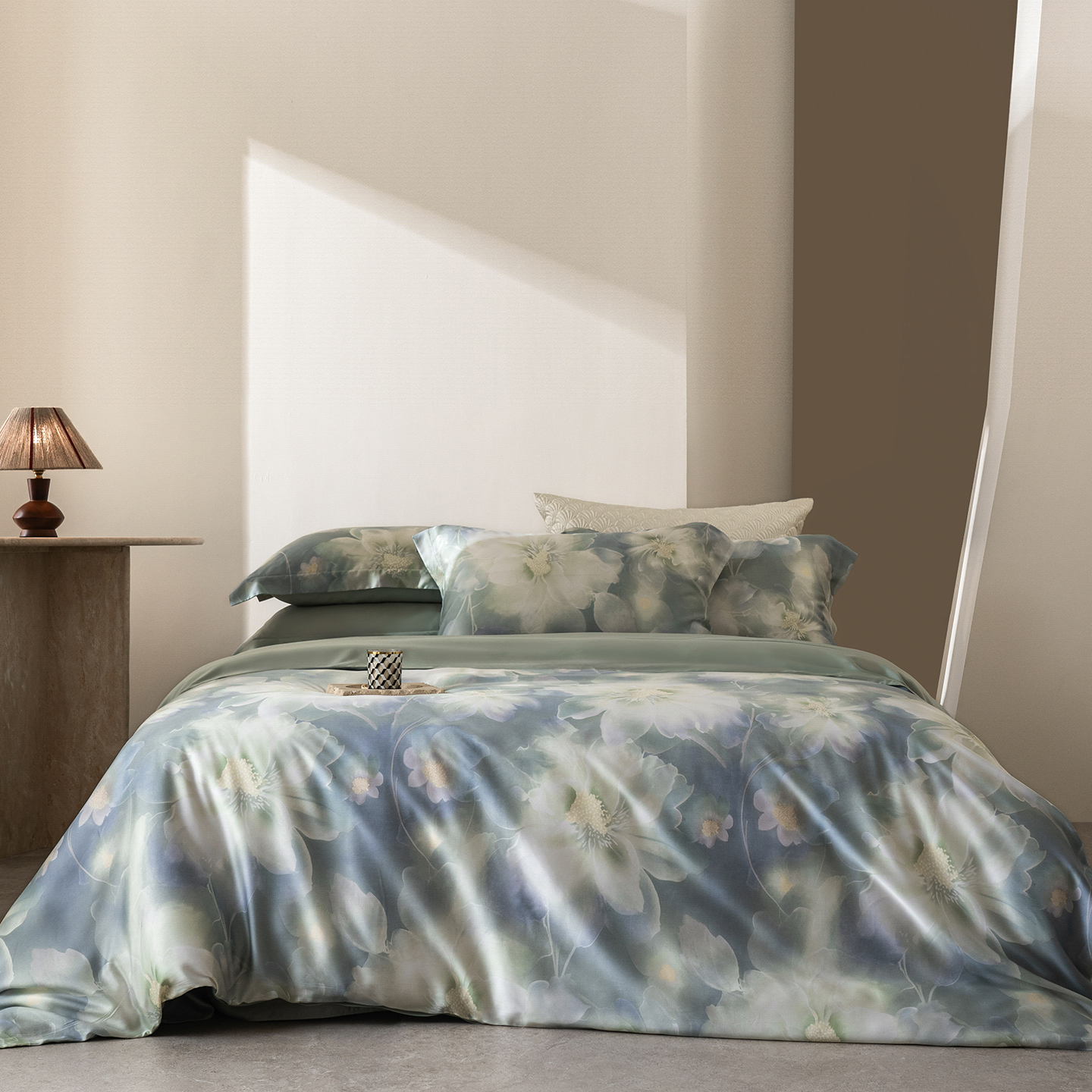 佳汐蓝家纺 2026新款春夏天丝数码印花(挂边款)四件套 荷塘月色-绿