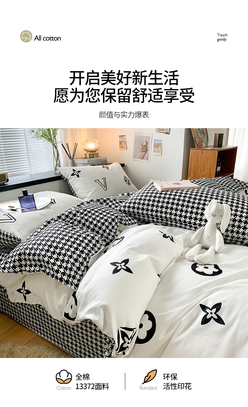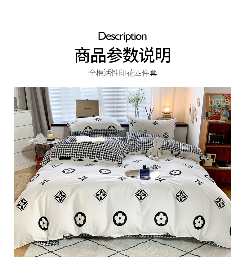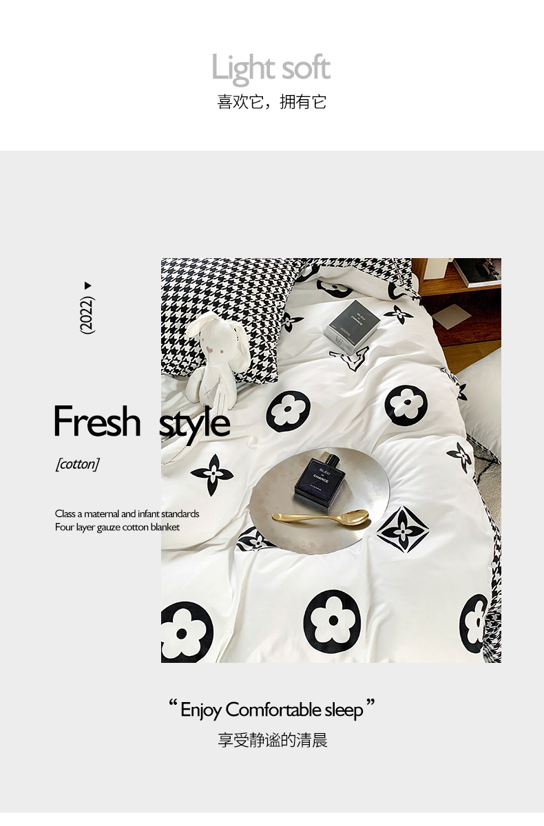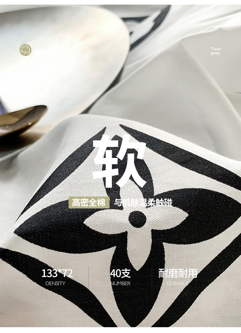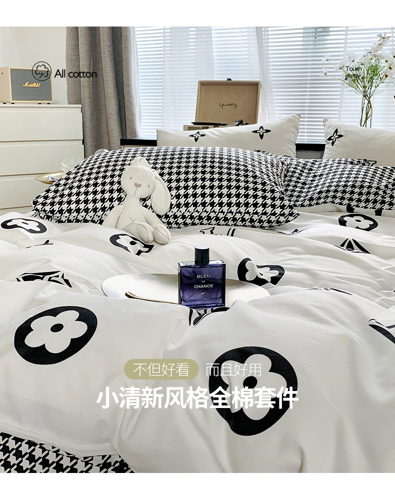 当前位置: 91家纺网 > 商品网购 > 床品套件 > 四件套 > 全棉普通四件套 > 朵希曼 2026新款全棉北欧黑白极简系列四件套 复古摩登