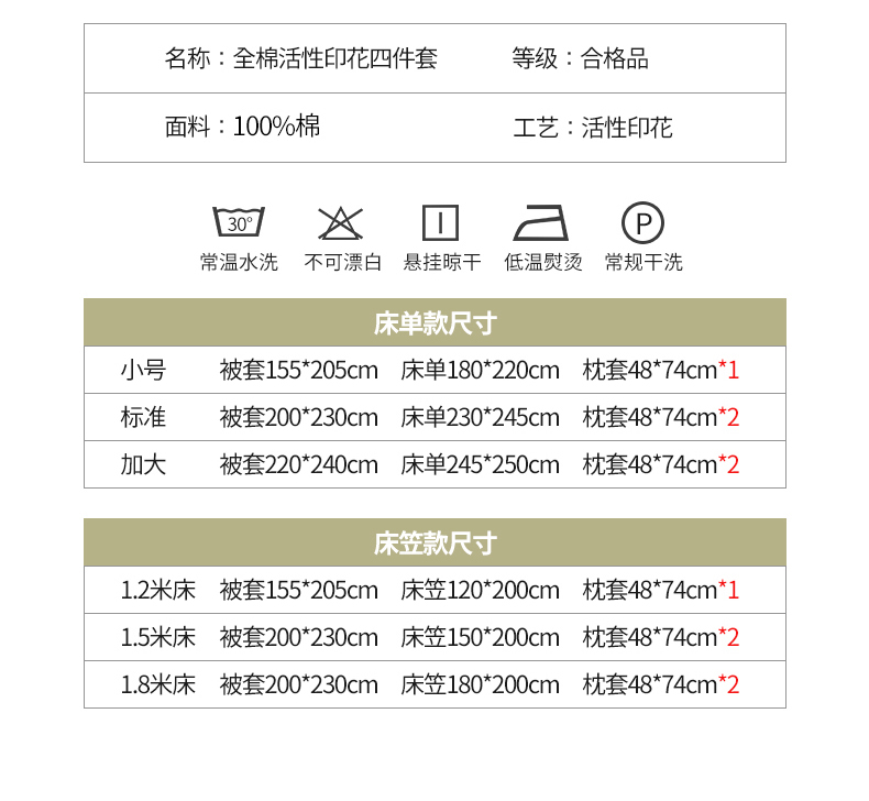 1.8m床笠款被套加大四件套 | ¥135.00 |