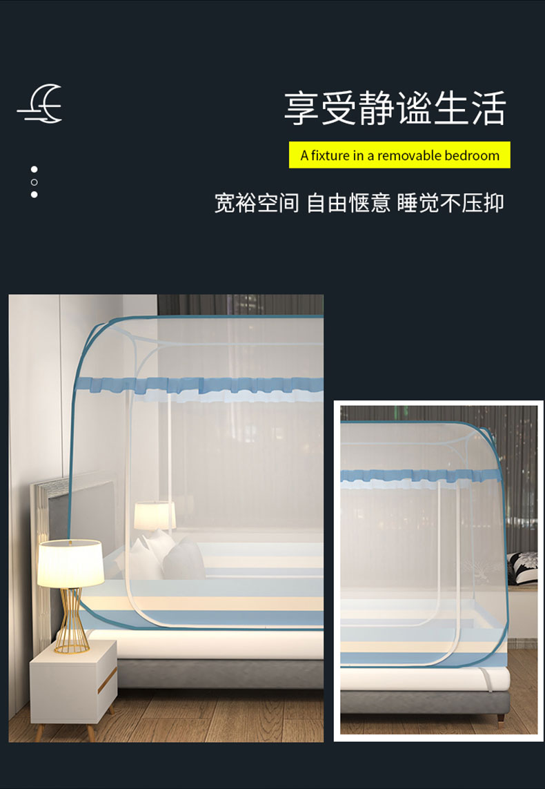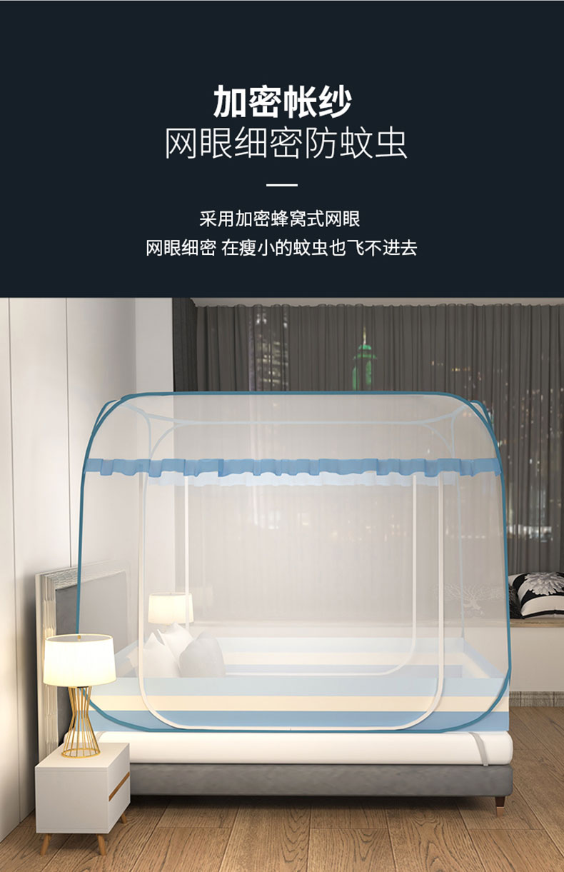 商品名称:青竹苑 2026新款免安装大顶花边款魔术蚊帐 条纹蓝