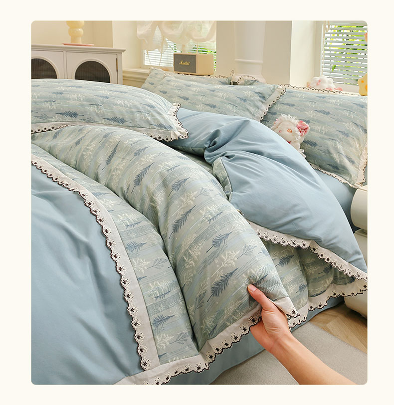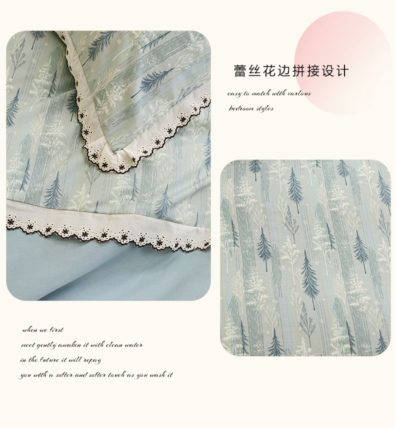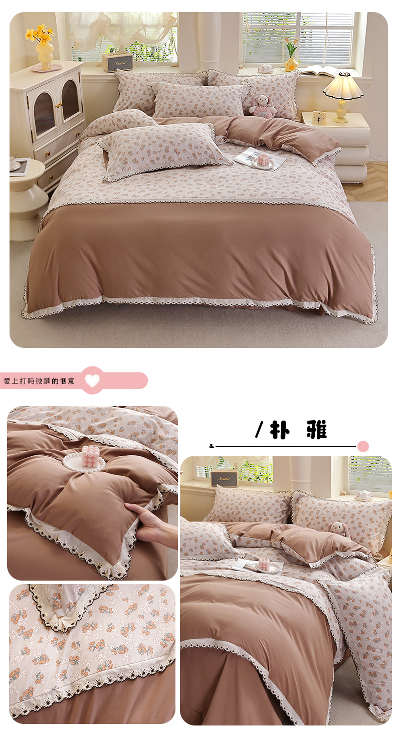 商品名称:北部居 2026新款水洗仿棉韩版花边款田园复古风小清新四件套-第一款 朴雅