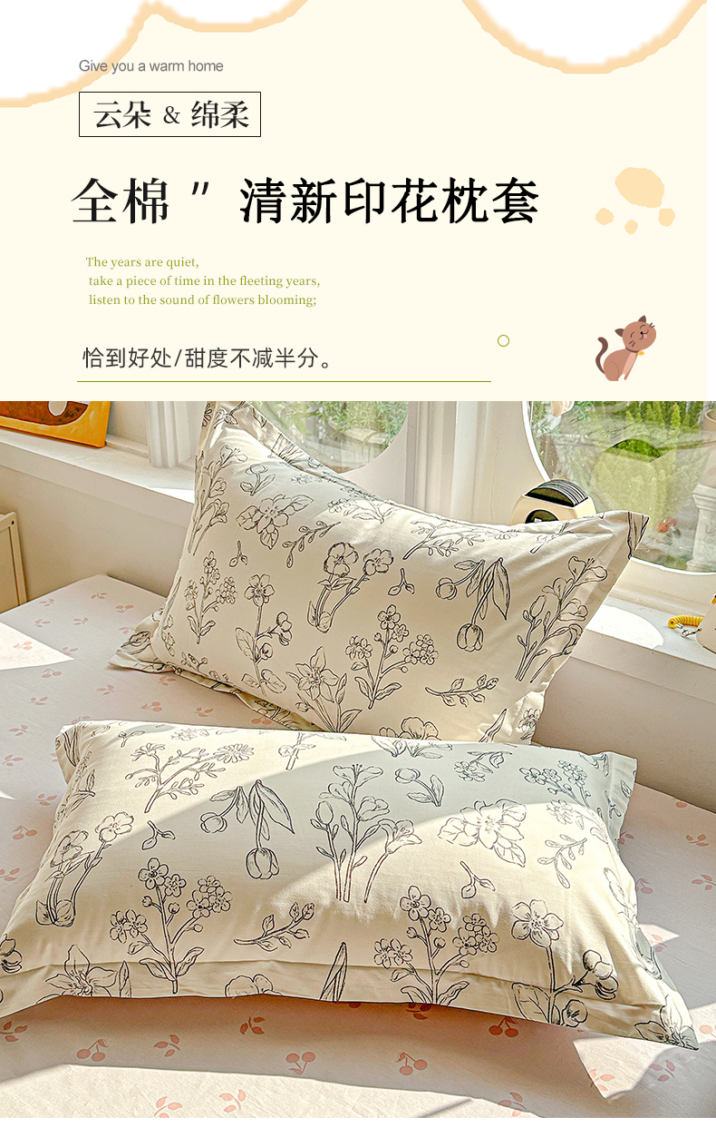 商品名称:佳汐蓝家纺 2026新款全棉纯棉加厚13376印花单品枕套 枕套单件 沫恋