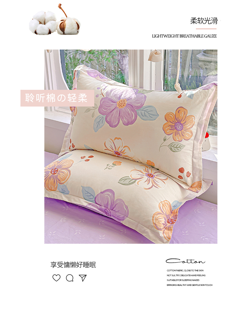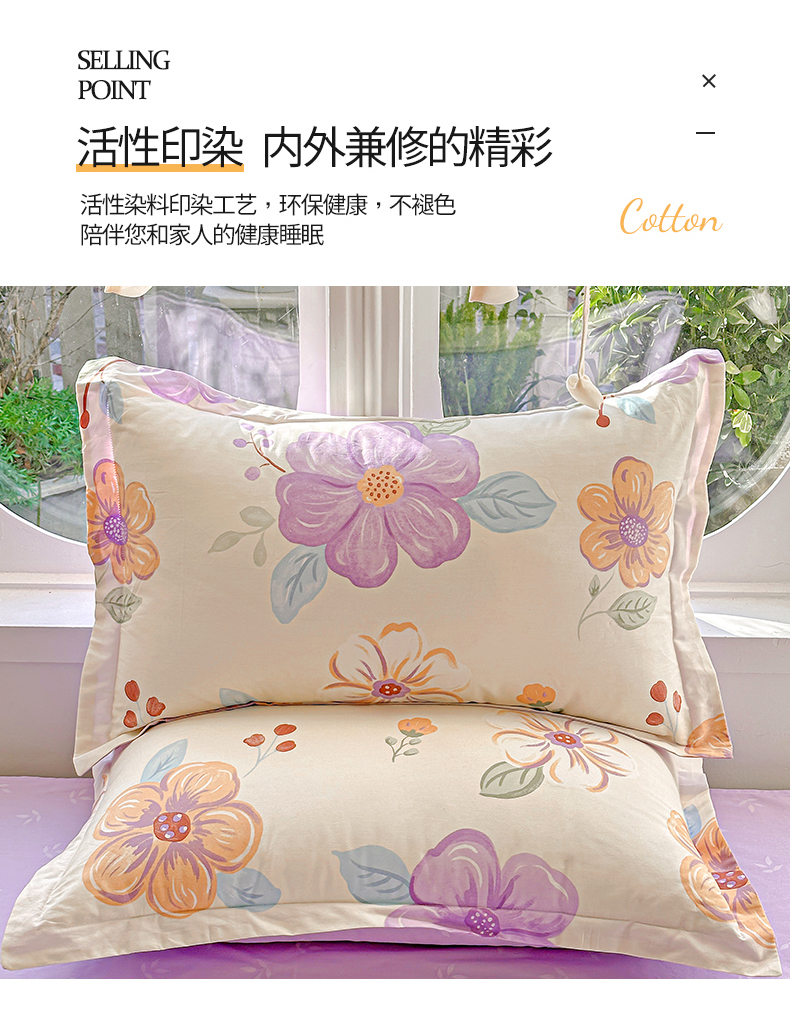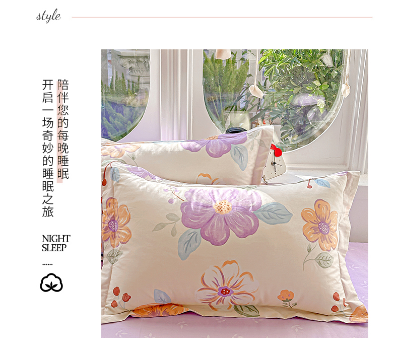 商品名称:佳汐蓝家纺 2026新款全棉纯棉加厚13376印花单品枕套 枕套单件 心怡如初