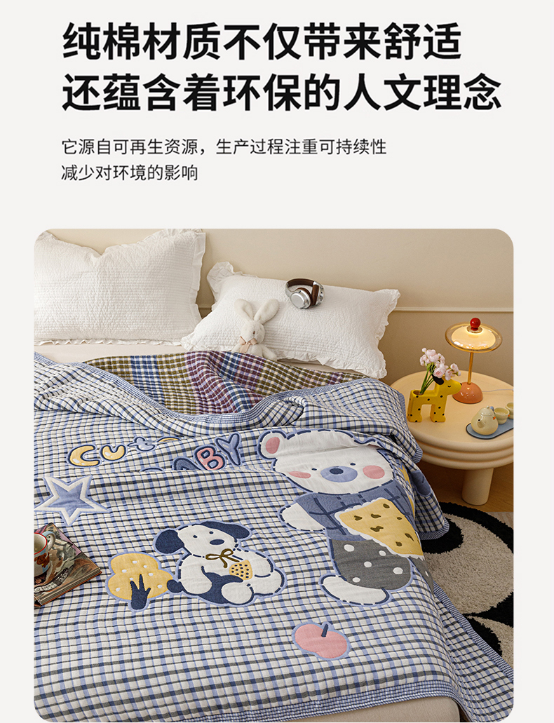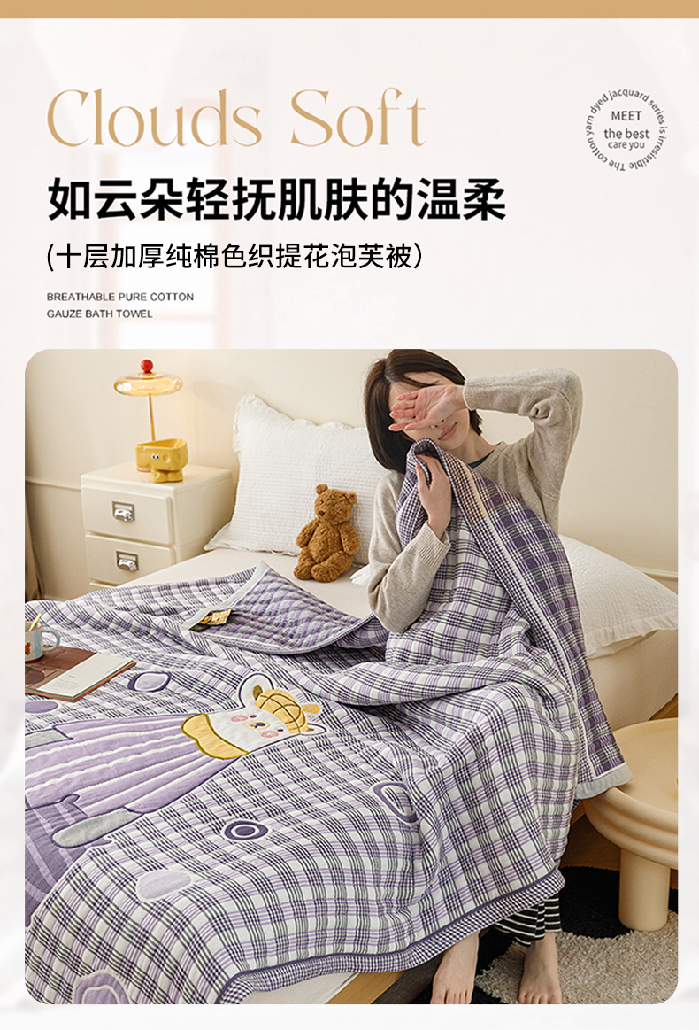 商品名称:(总)朴尔家纺-毛巾被 2026新品十层轻肤纯棉云朵棉色织提花纱布泡芙被毛巾被