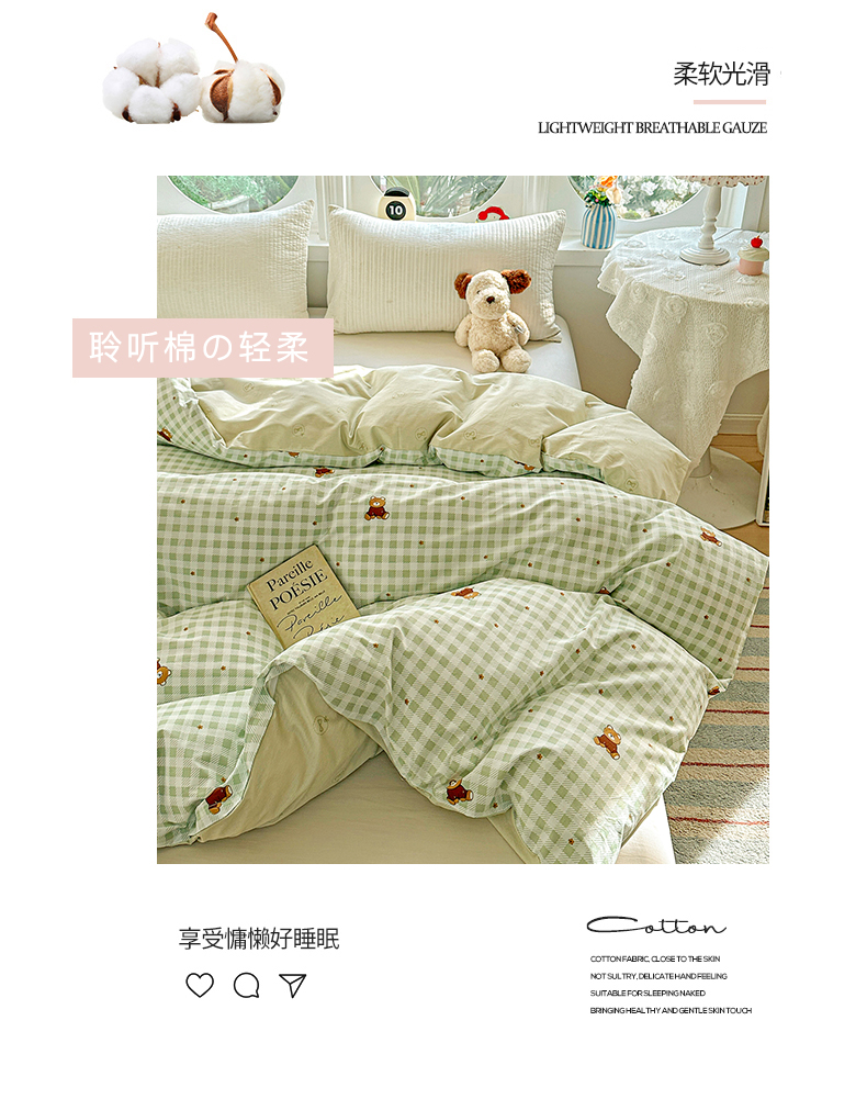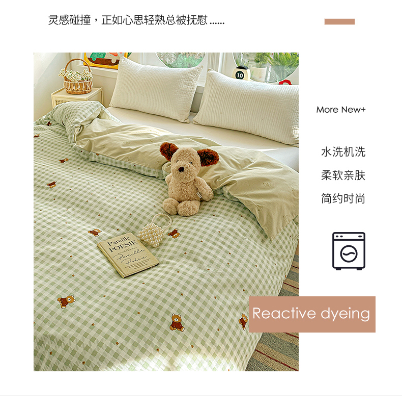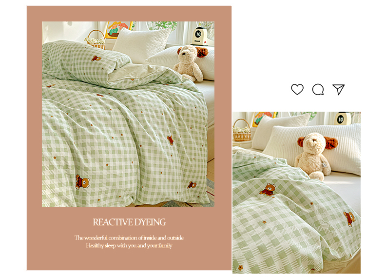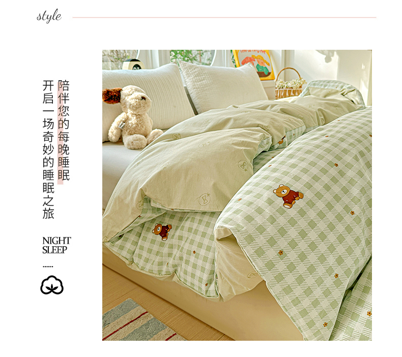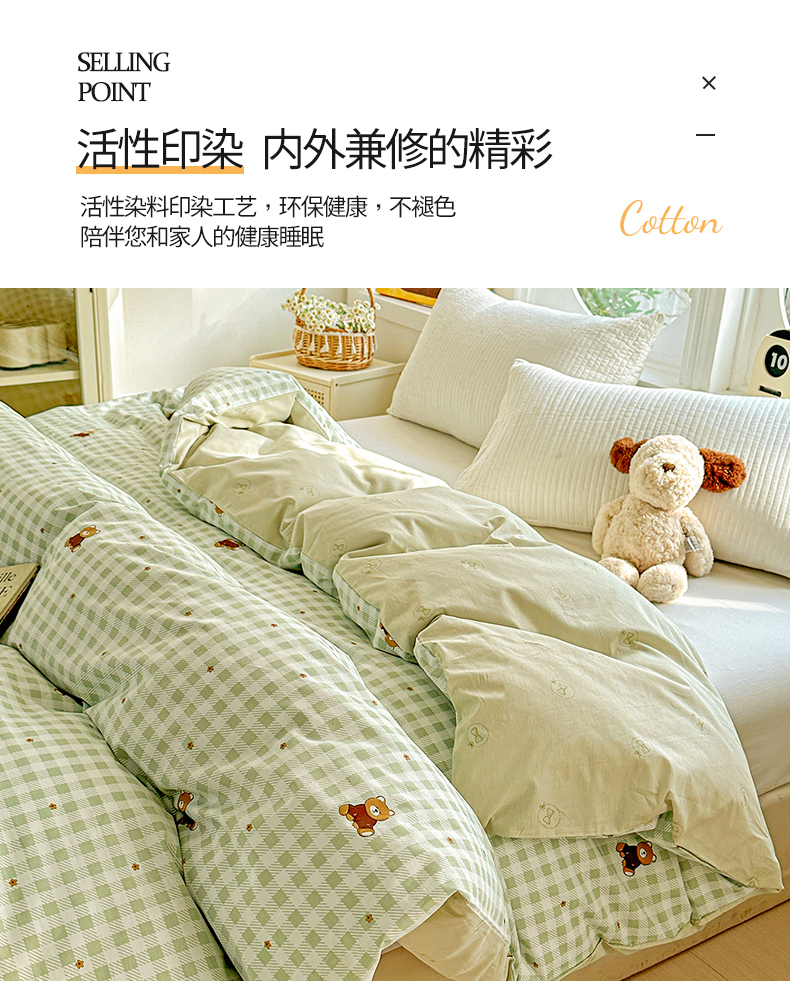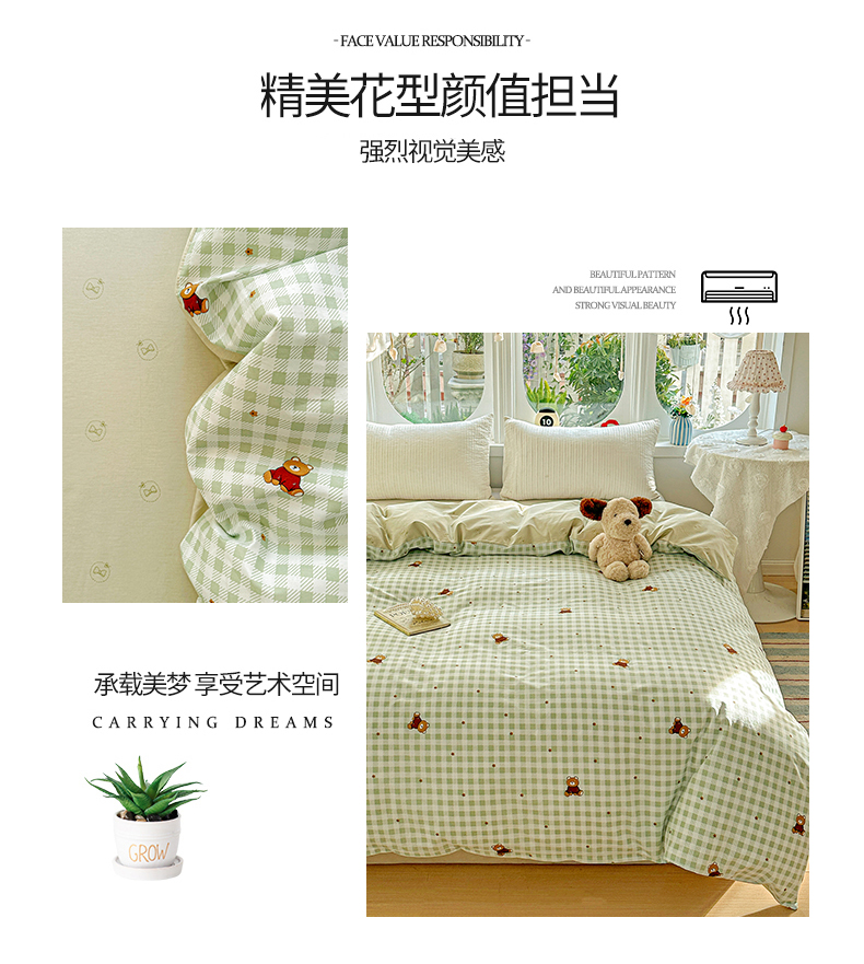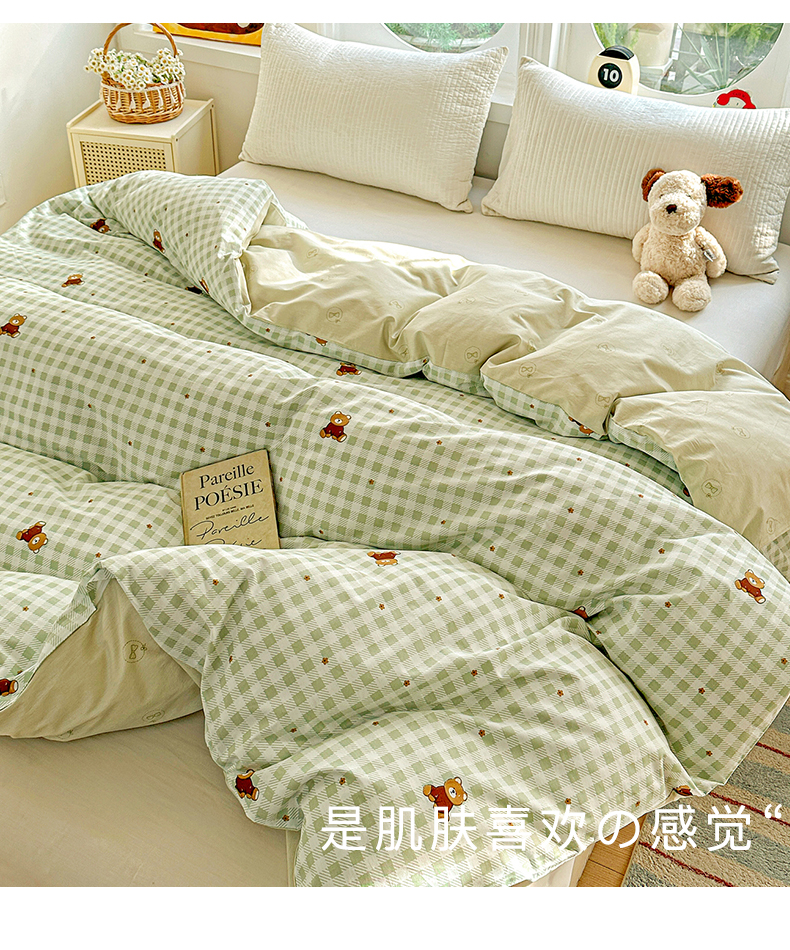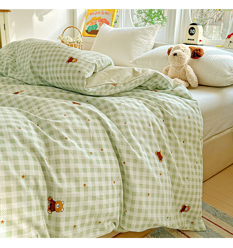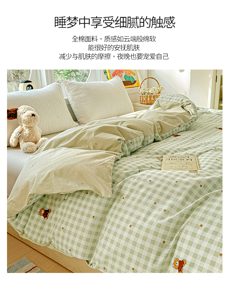商品名称:佳汐蓝家纺 2026新款全棉纯棉加厚13376印花单品被套 被套单件 绿格小熊