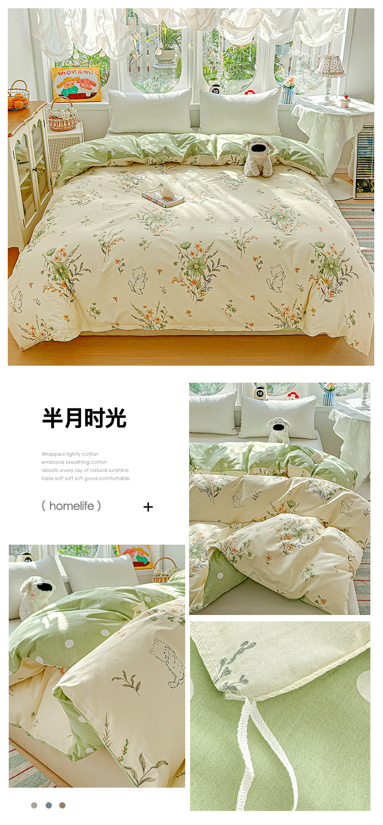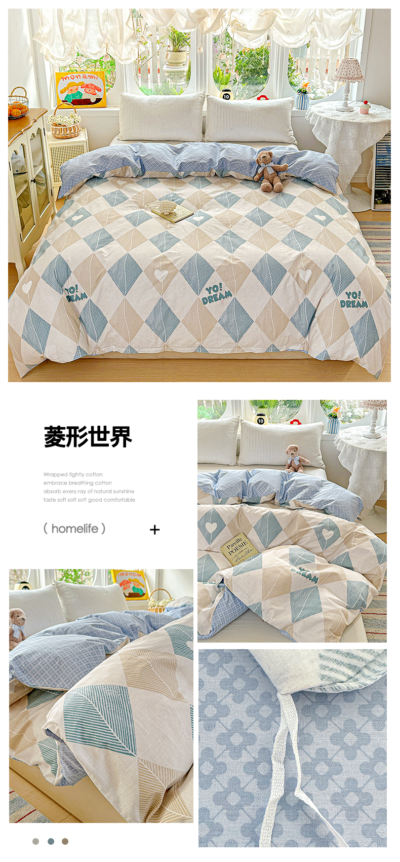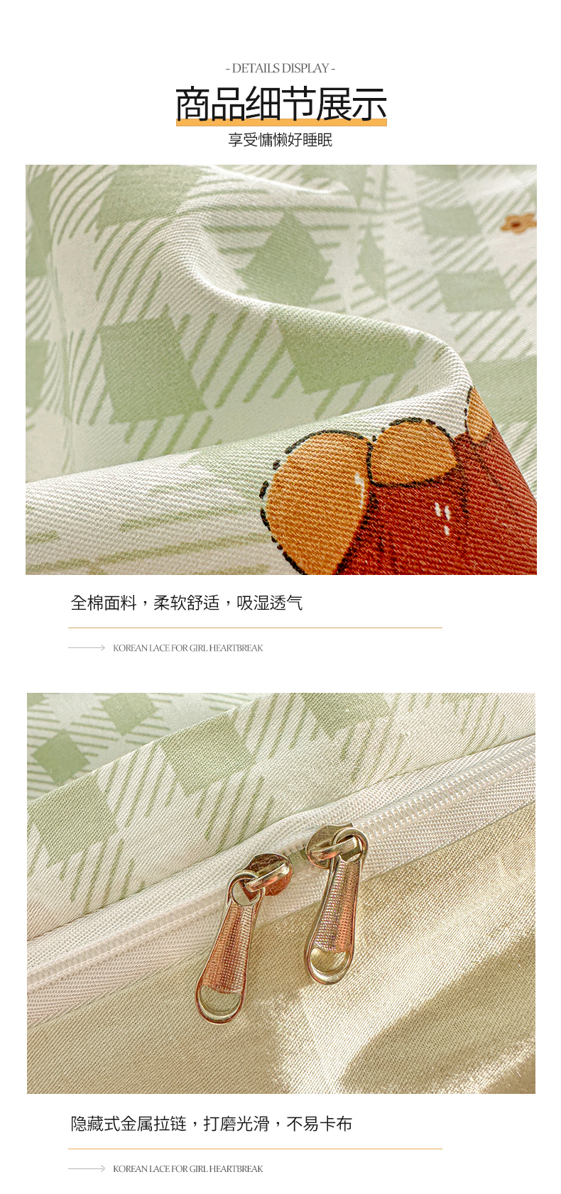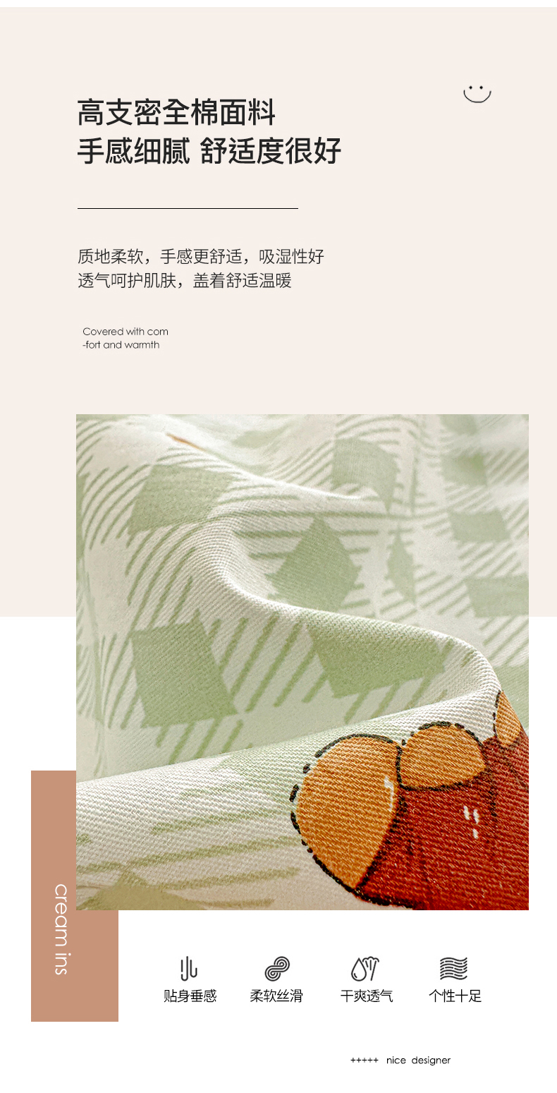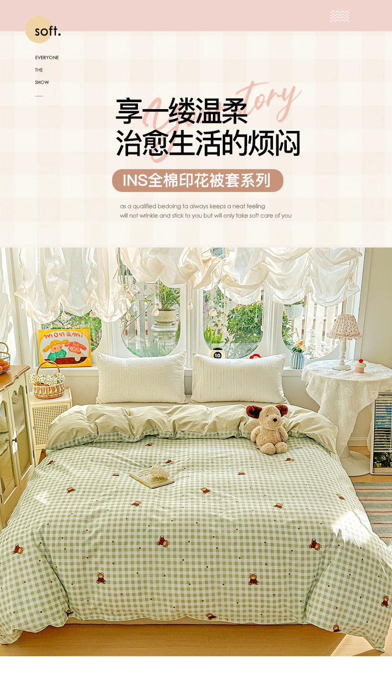 商品名称:佳汐蓝家纺 2026新款全棉纯棉加厚13376印花单品被套 被套单件 绿格小熊