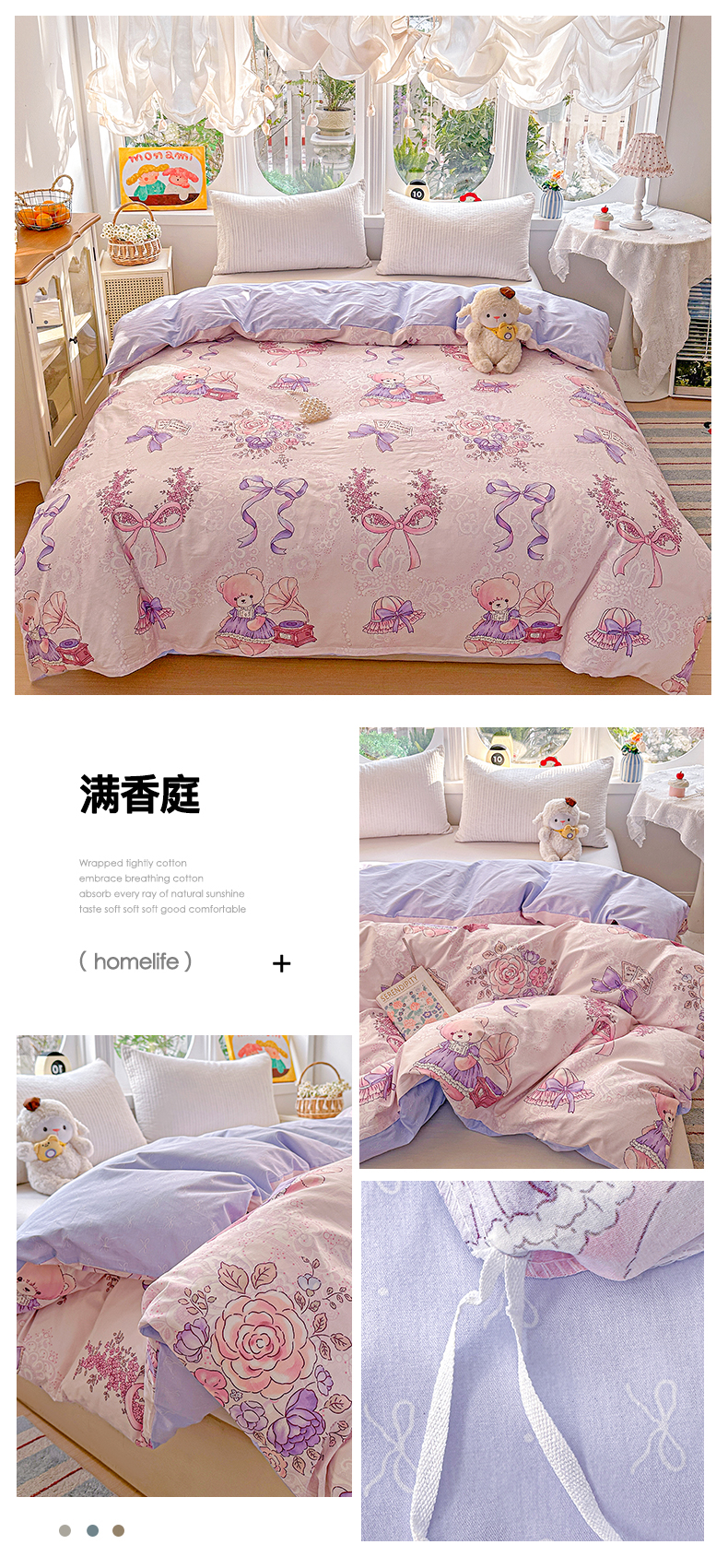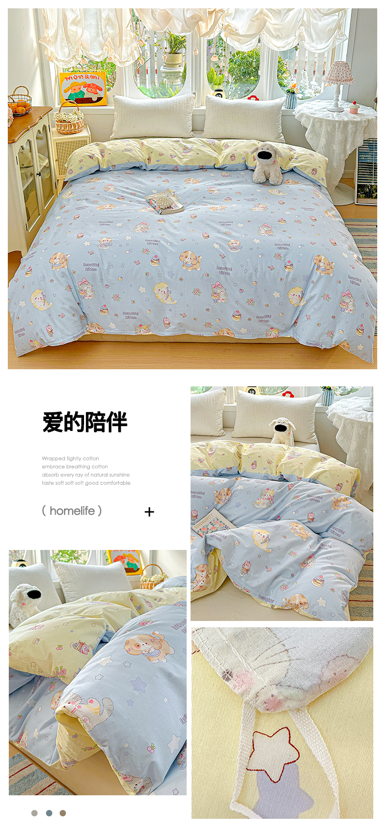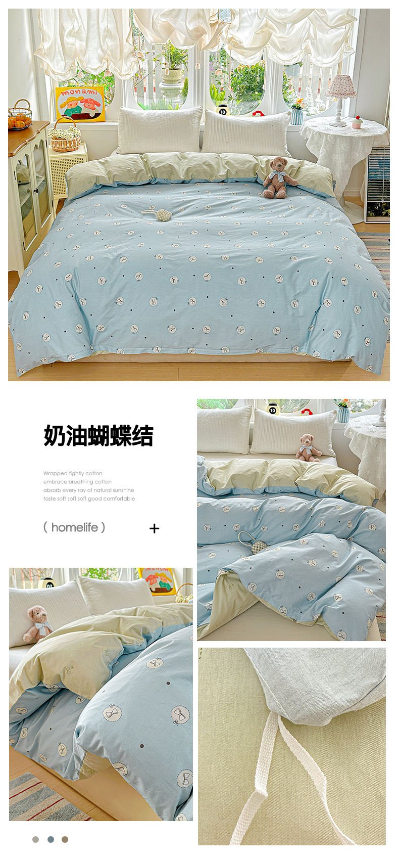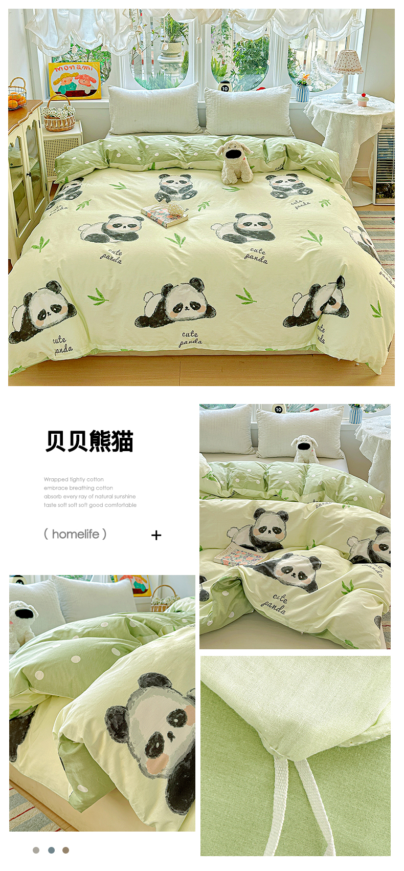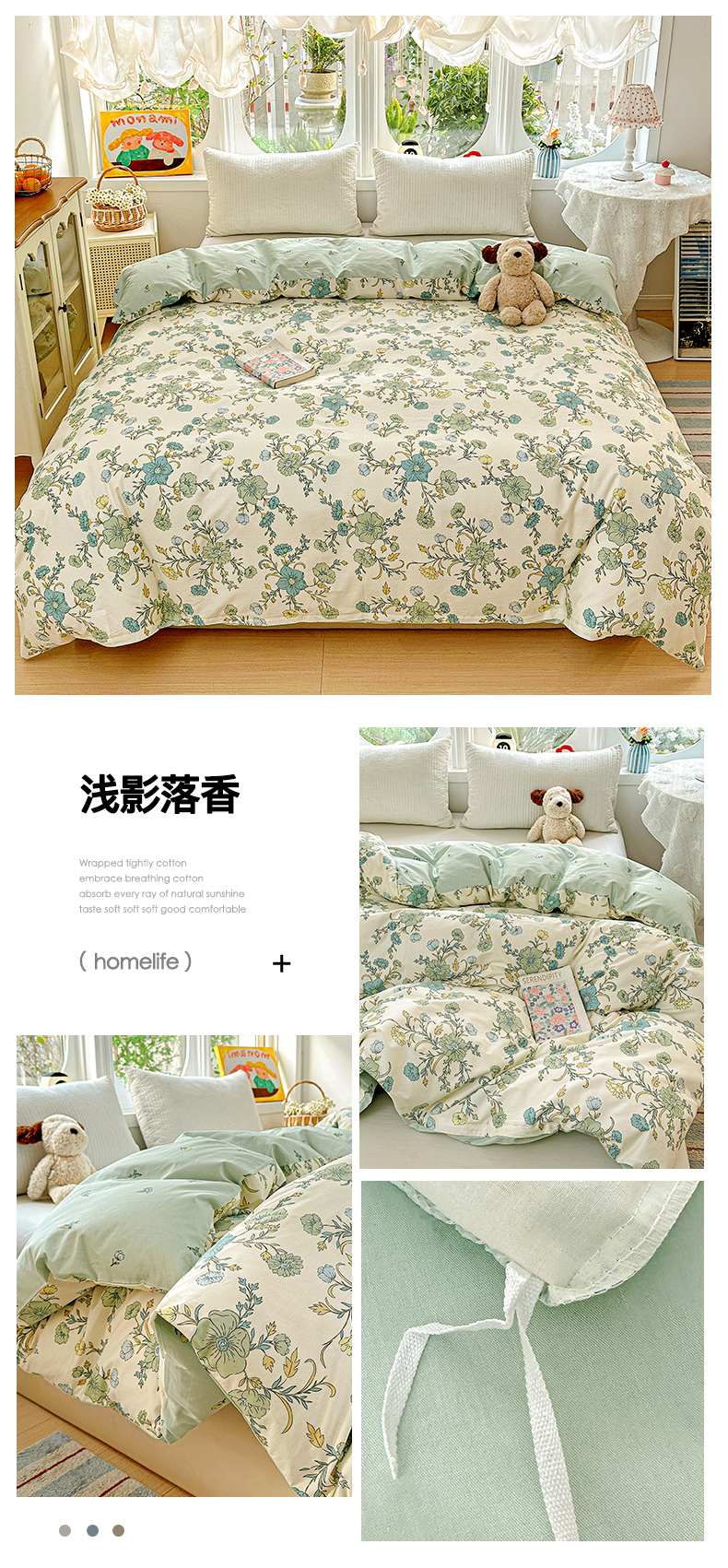 商品名称:佳汐蓝家纺 2026新款全棉纯棉加厚13376印花单品被套 被套单件 绿格小熊