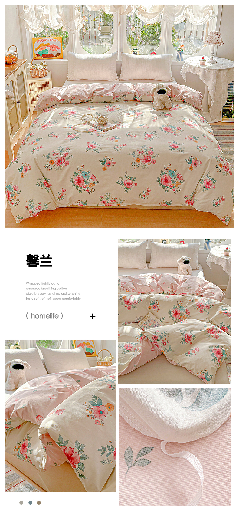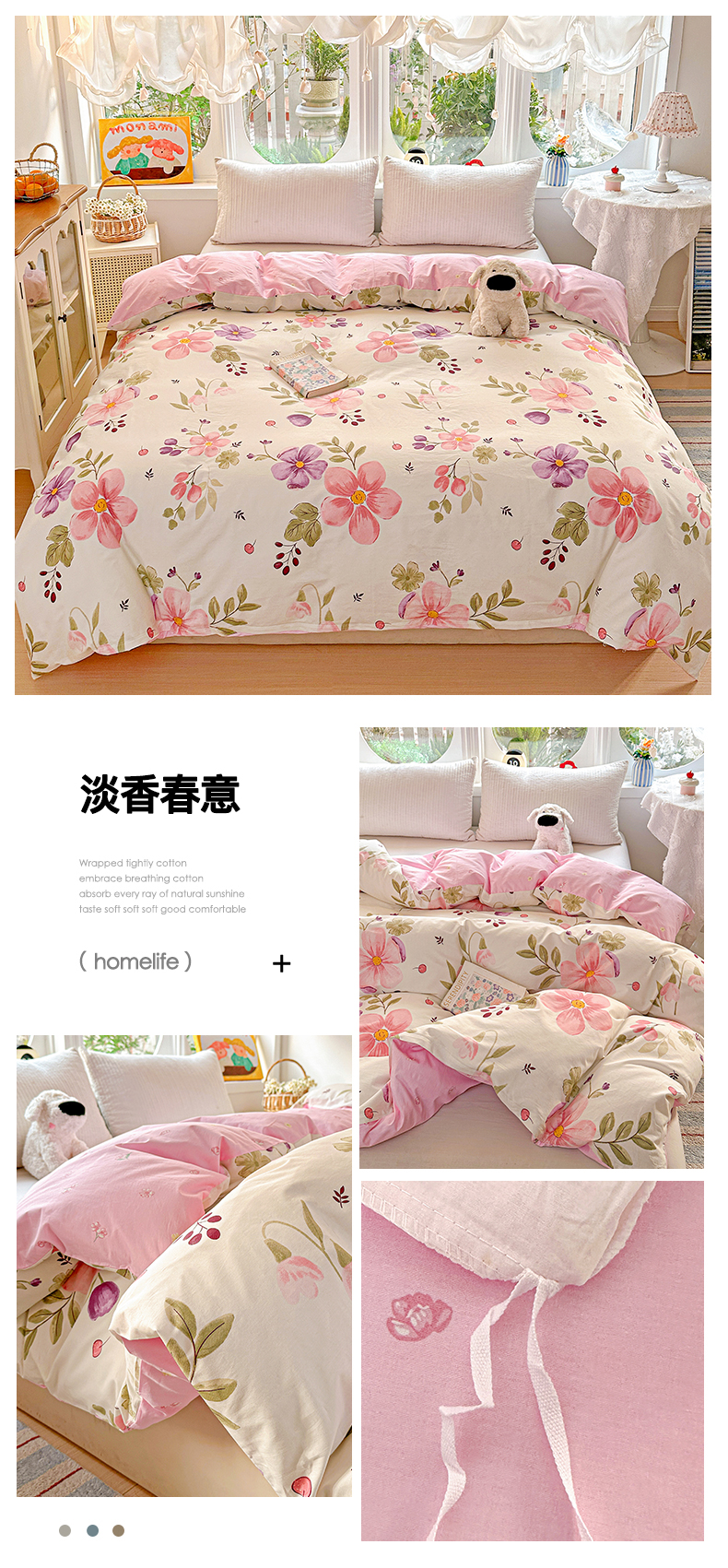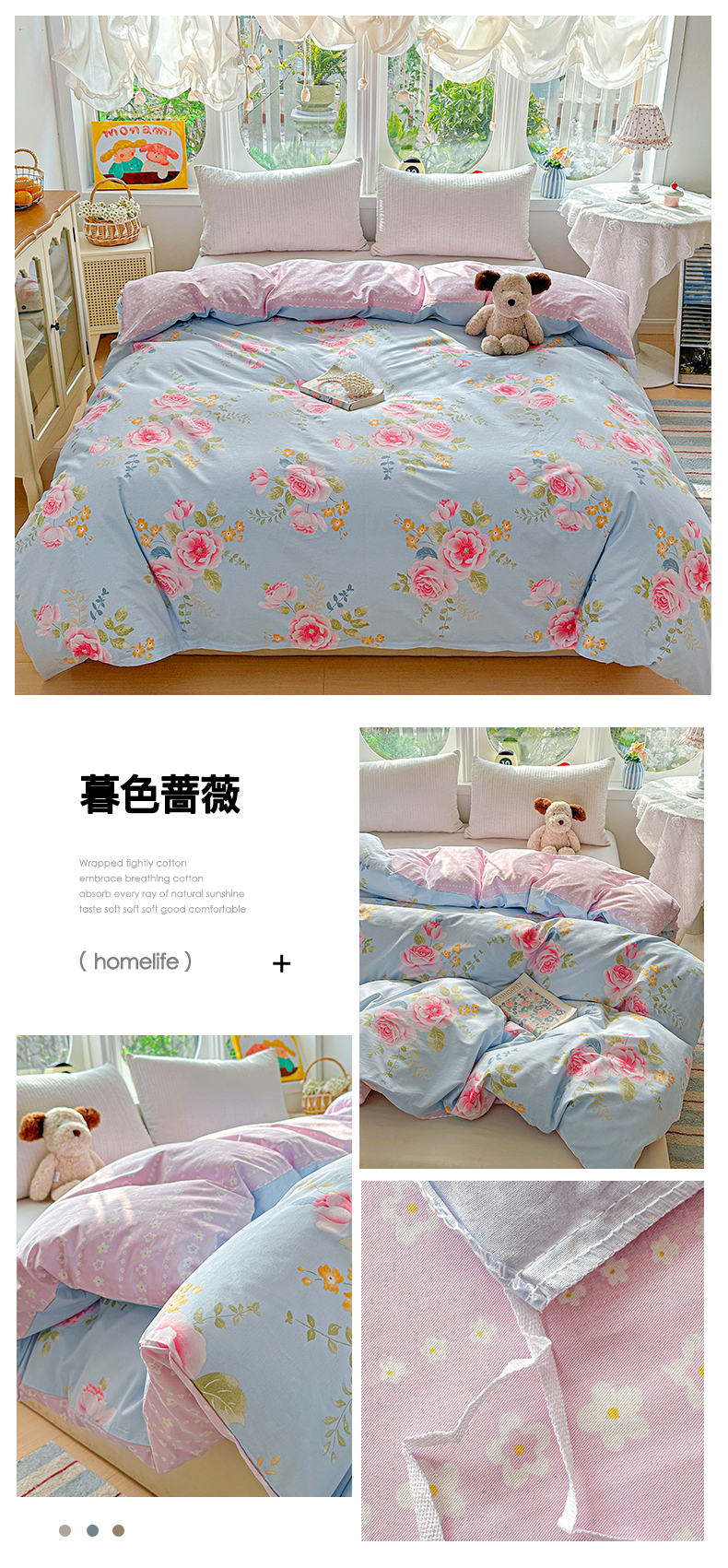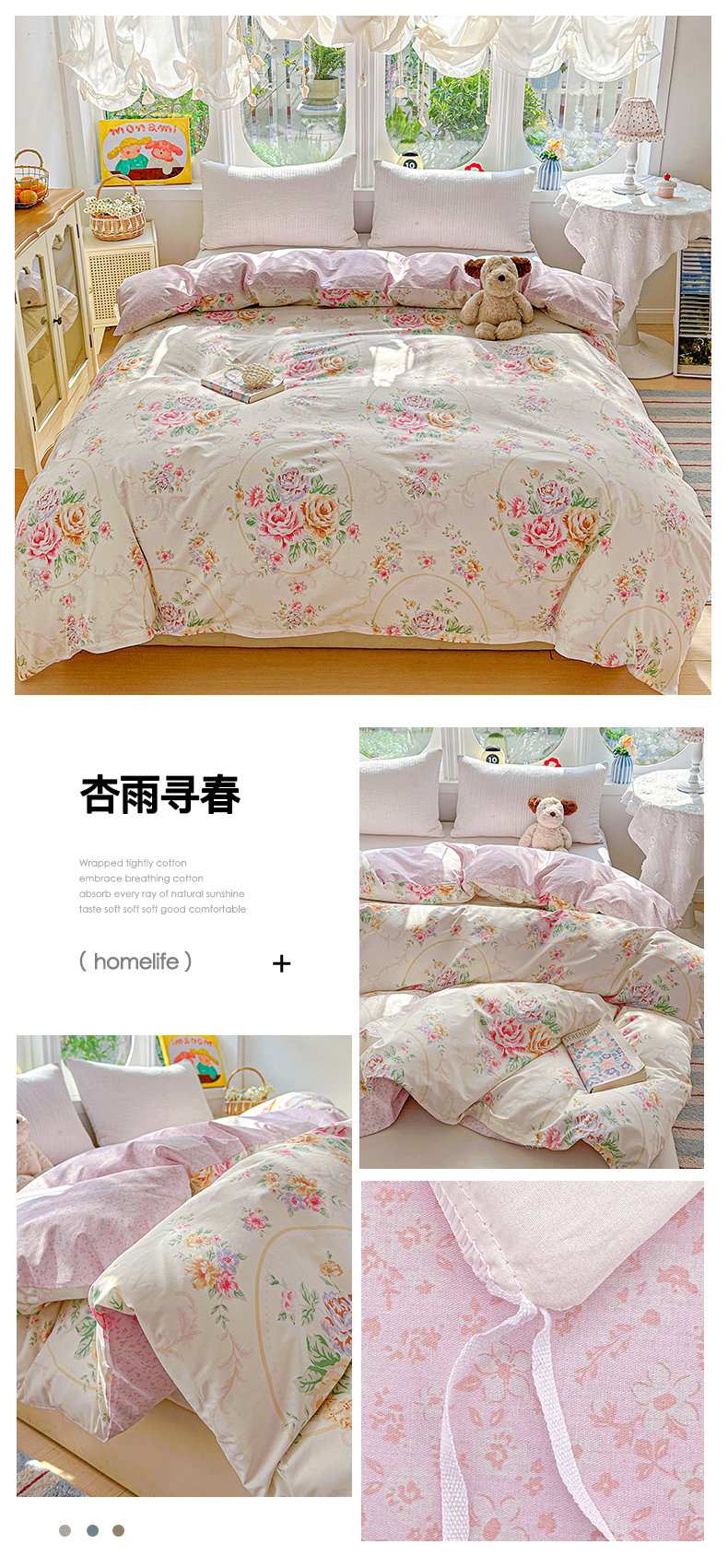 (总)佳汐蓝家纺 2026新款春夏棉麻新品印花+流光纱四件套-春缇玫瑰,春缇玫瑰