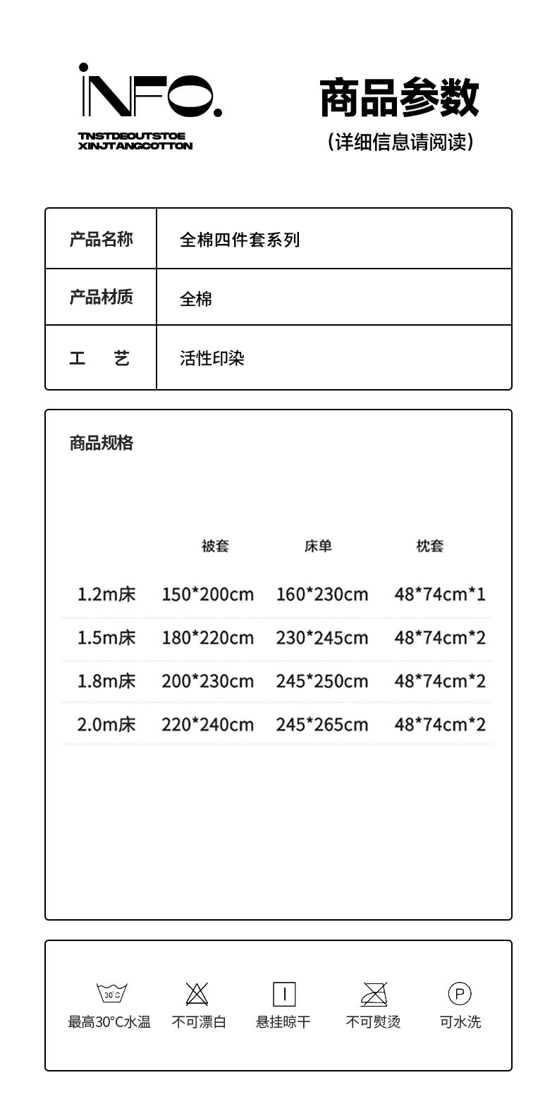 2.0m床单款四件套(被套220*240cm床单245*265cm枕套48*74cm*2)