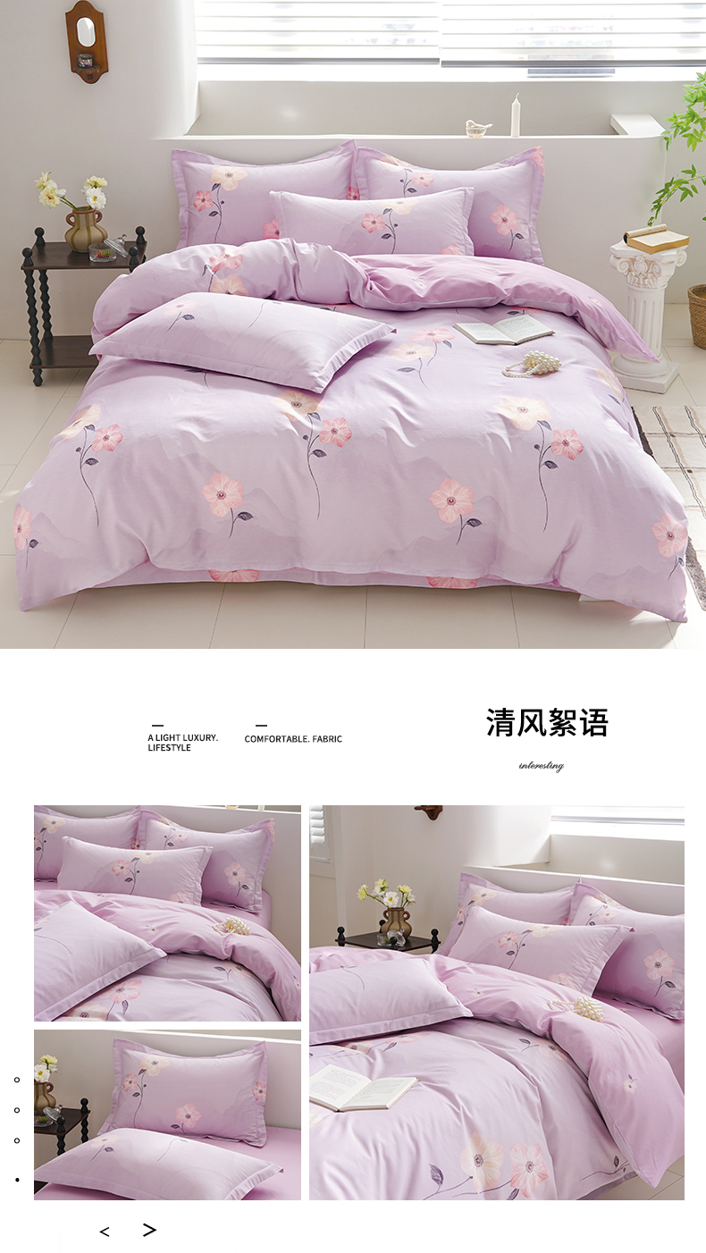 登登 2024新款直播爆款清新风纯棉全棉三四件套 紫气盛开,紫气盛开