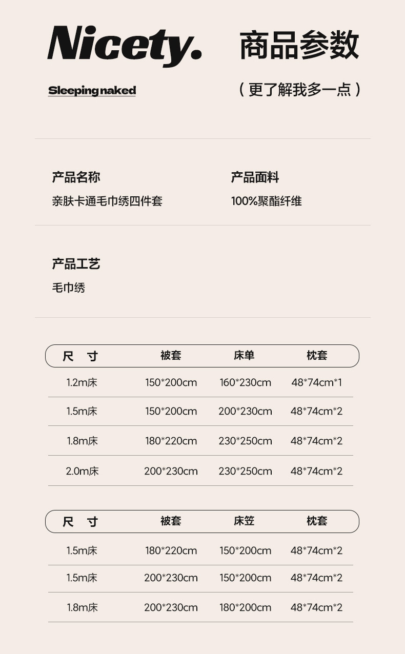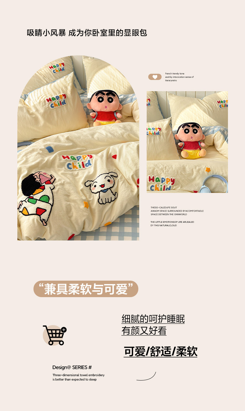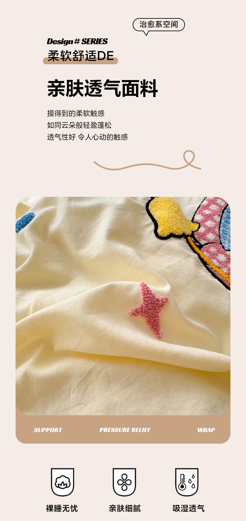 商品名称:(总)欣宜家纺 2026新款云朵棉毛巾绣床上四件套卡通被套床单学生宿舍三件套