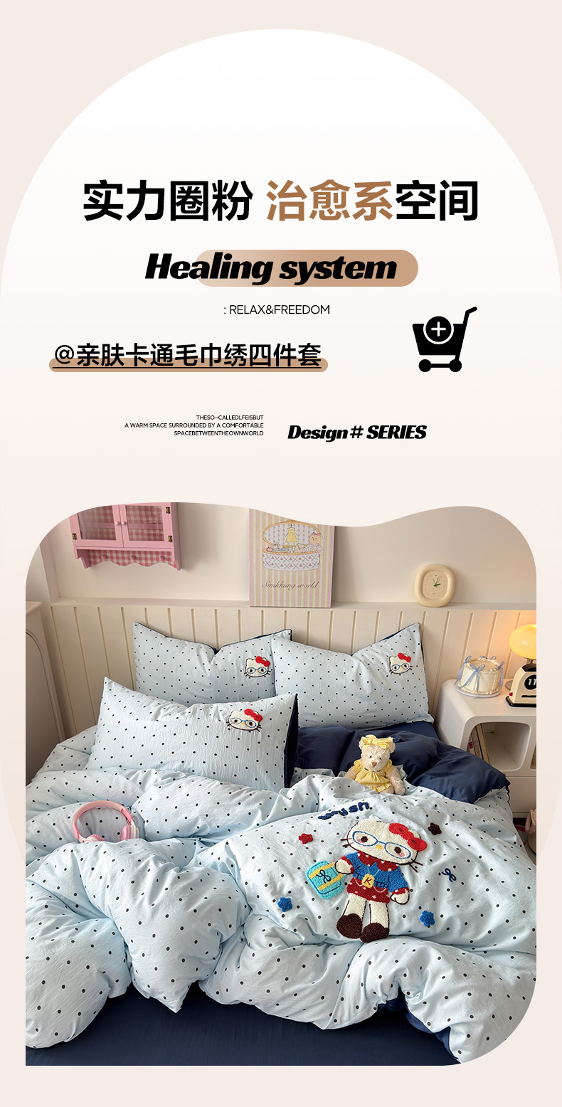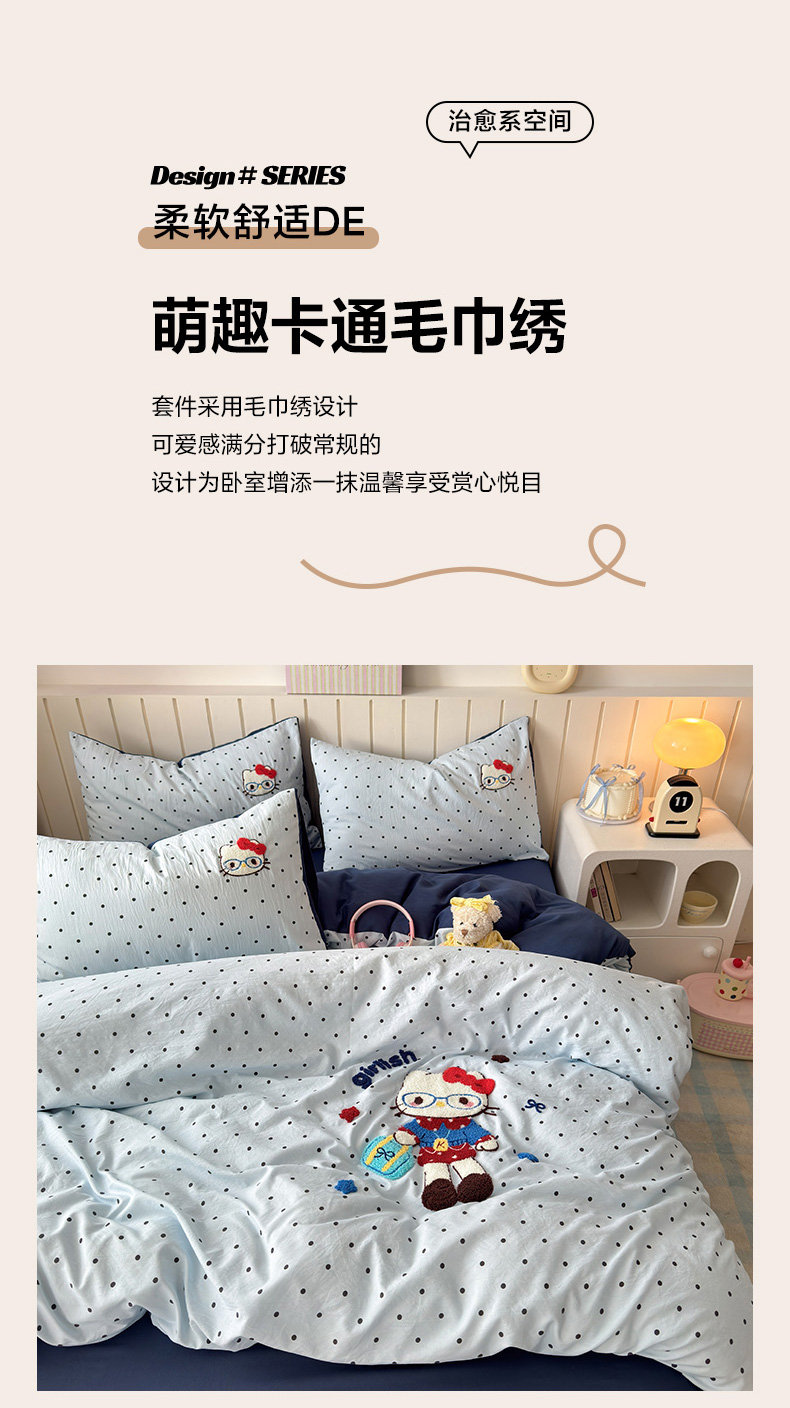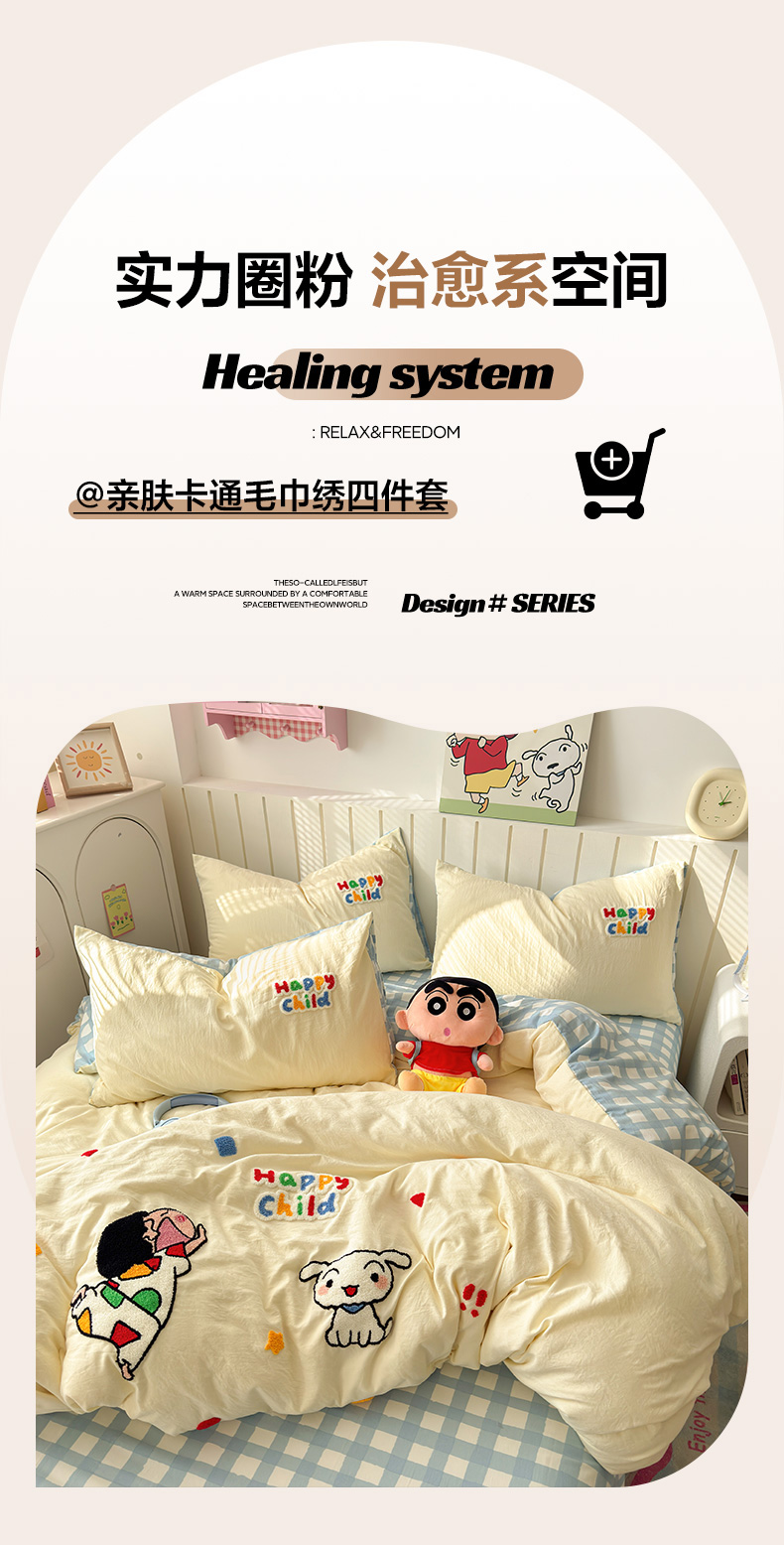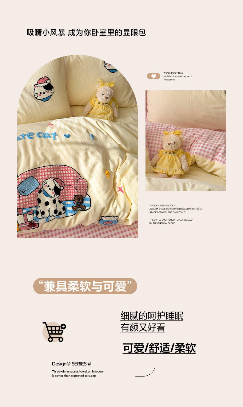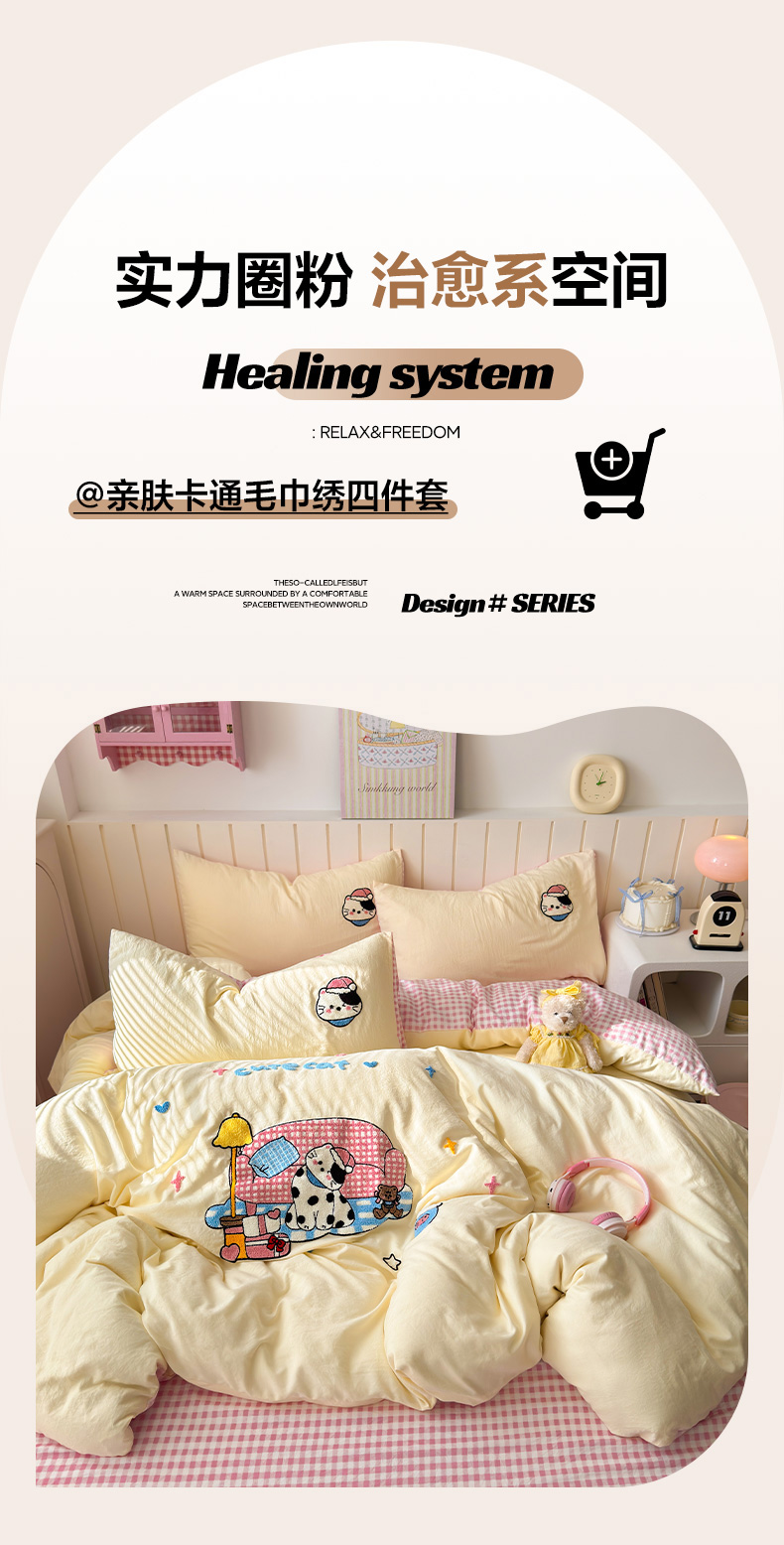 (总)欣宜家纺 2026新款云朵棉毛巾绣床上四件套卡通被套床单学生宿舍三件套