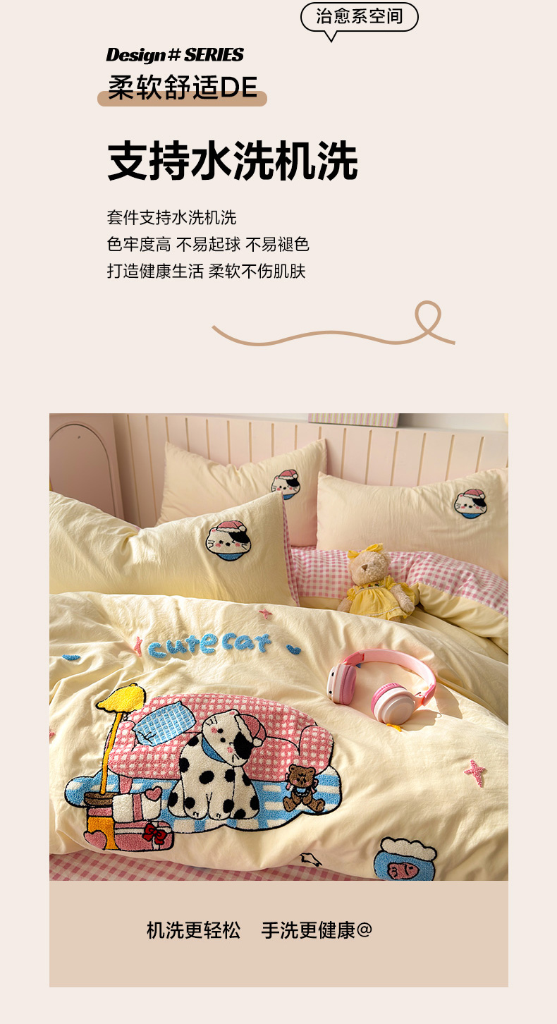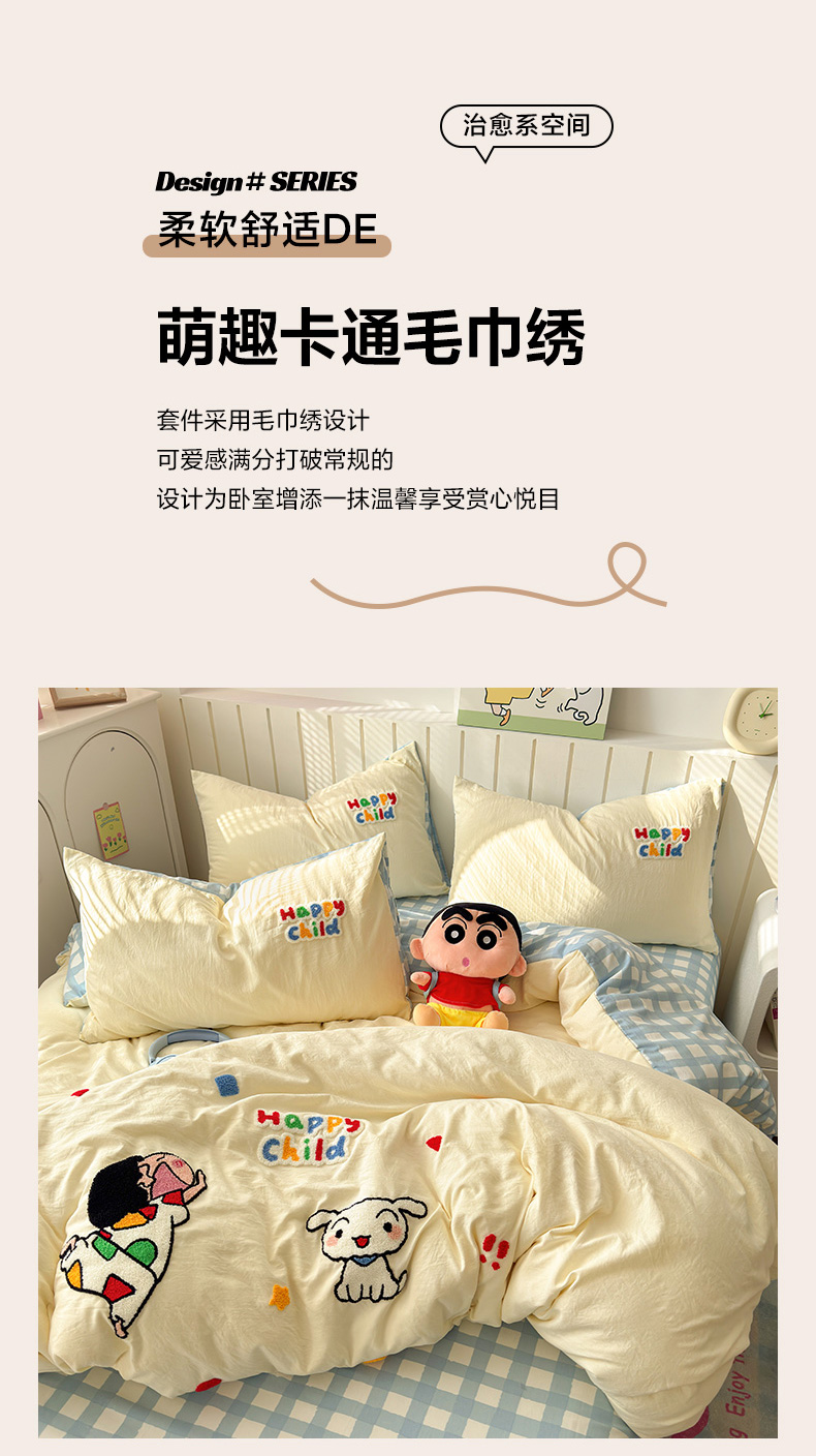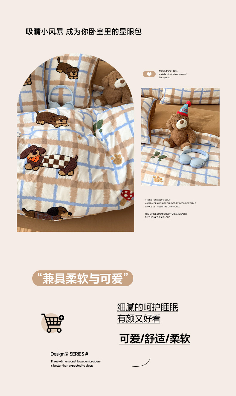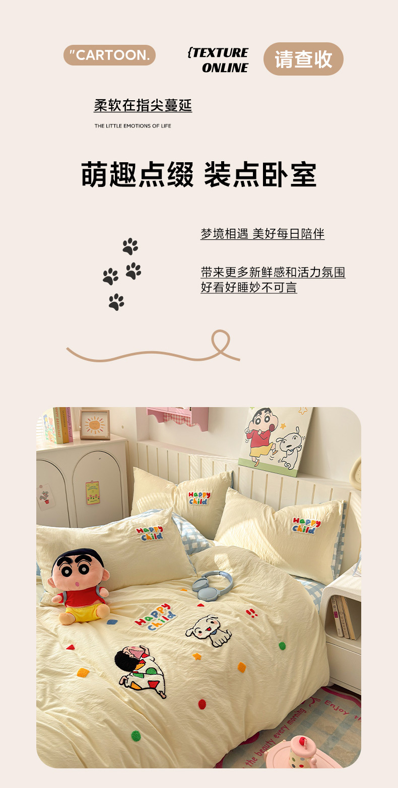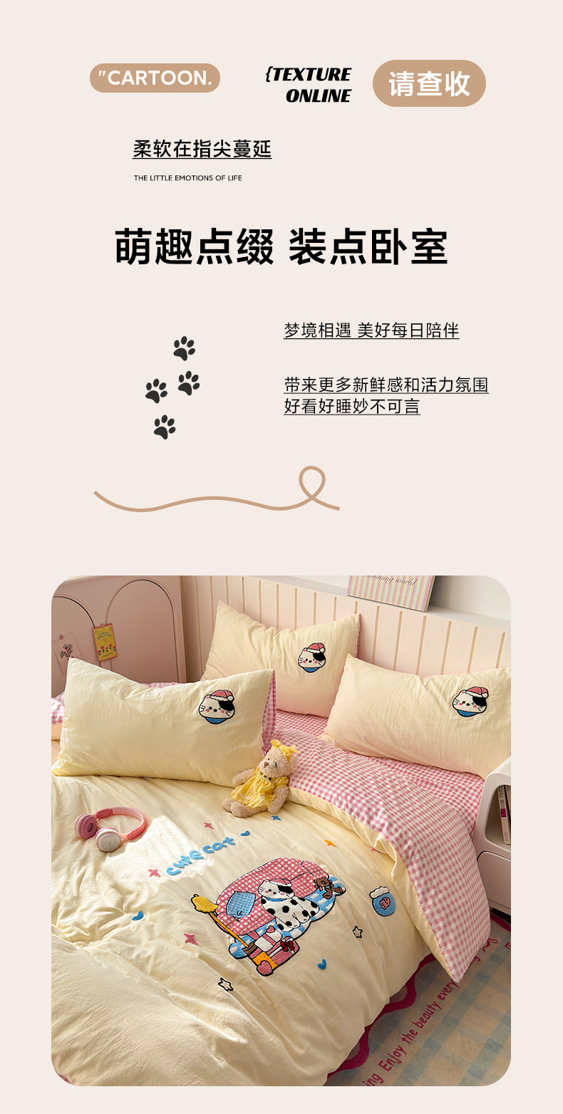 (总)欣宜家纺 2026新款云朵棉毛巾绣床上四件套卡通被套床单学生宿舍三件套