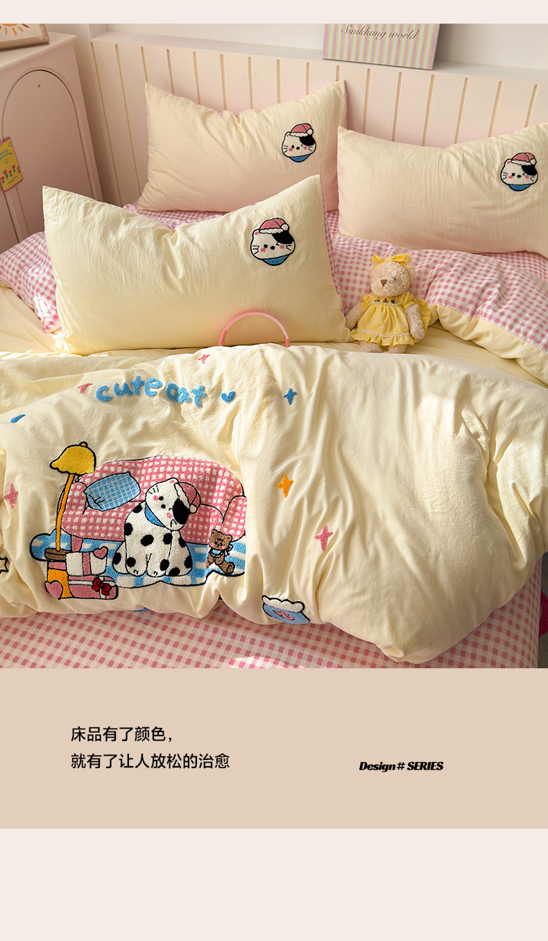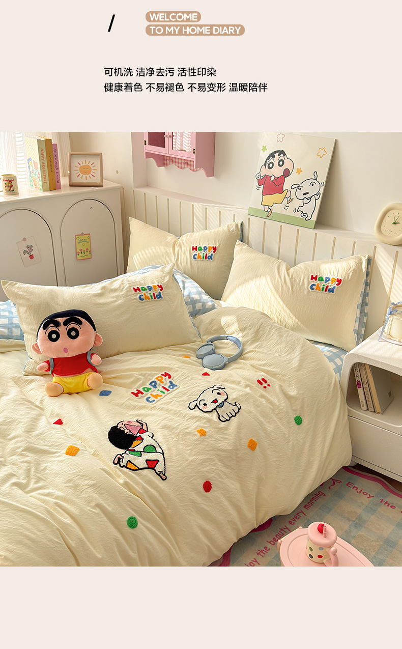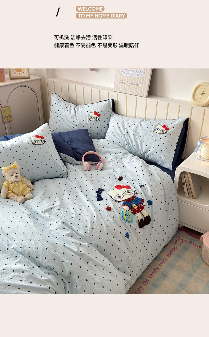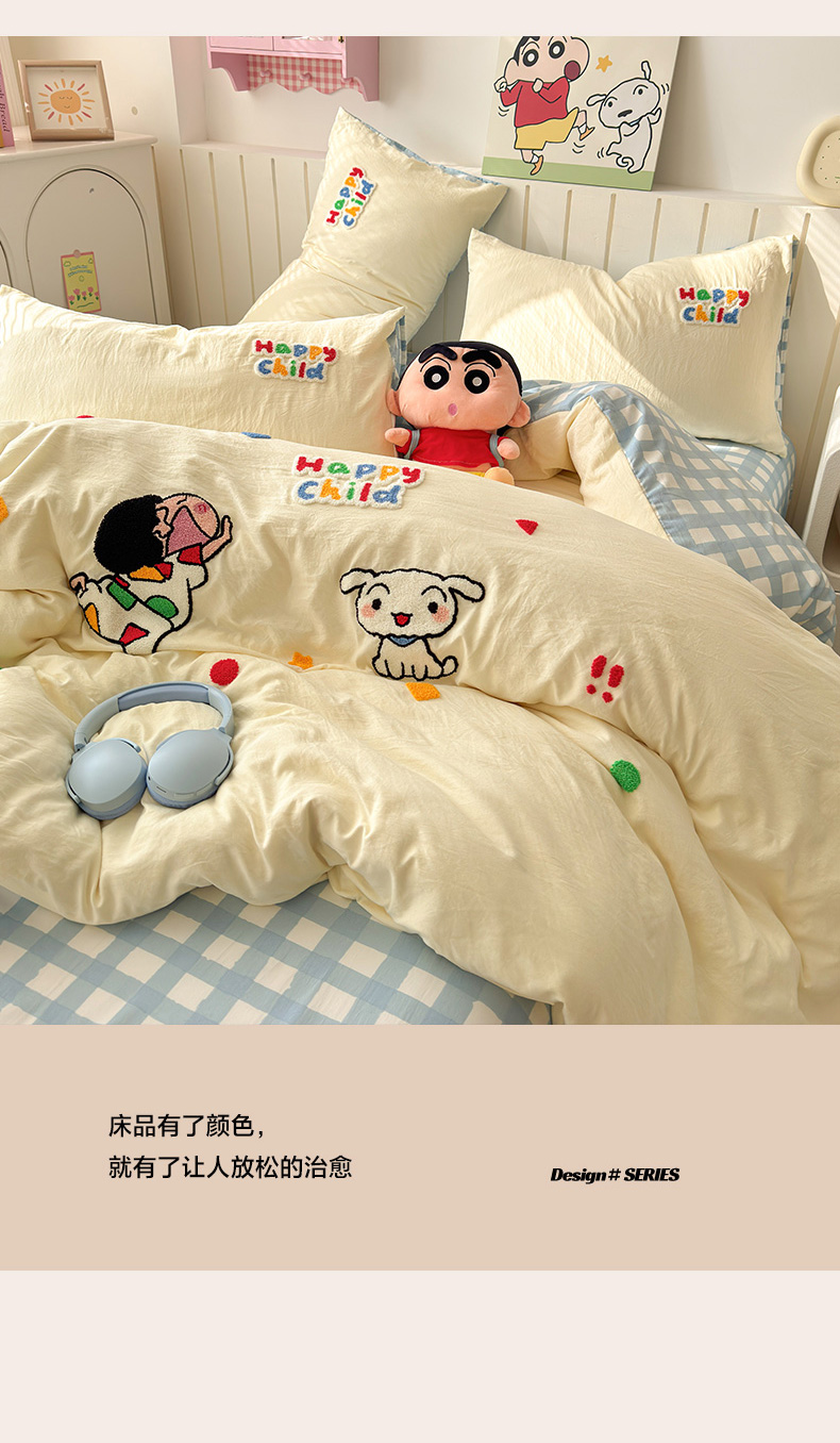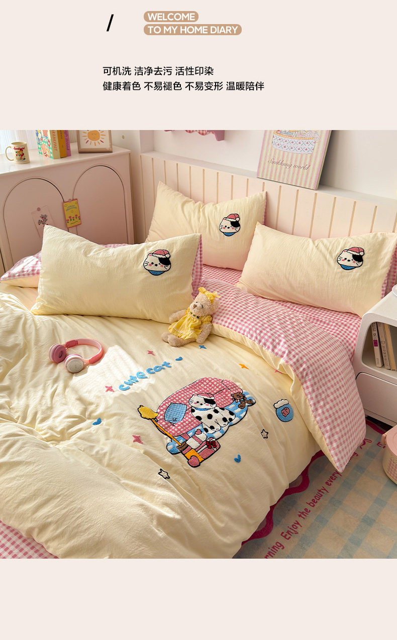 (总)欣宜家纺 2026新款云朵棉毛巾绣床上四件套卡通被套床单学生宿舍三件套