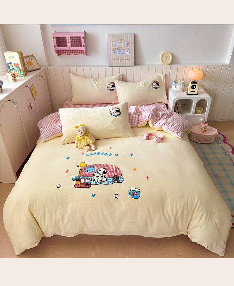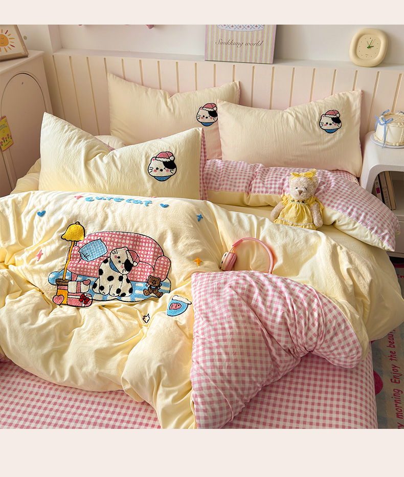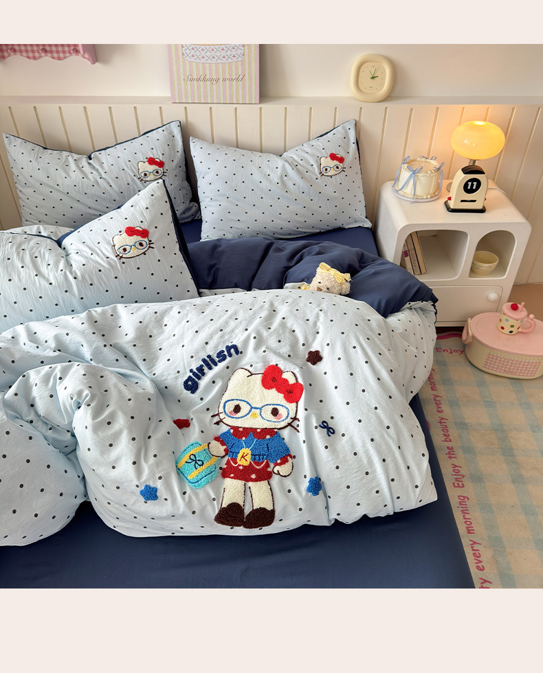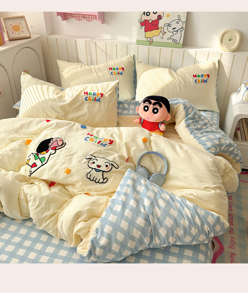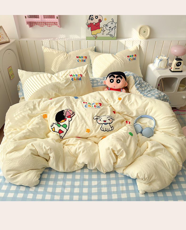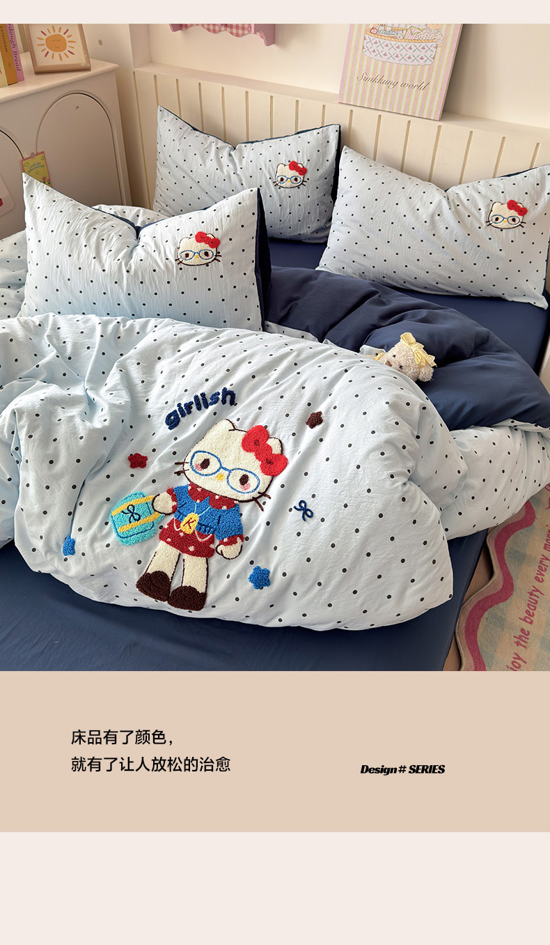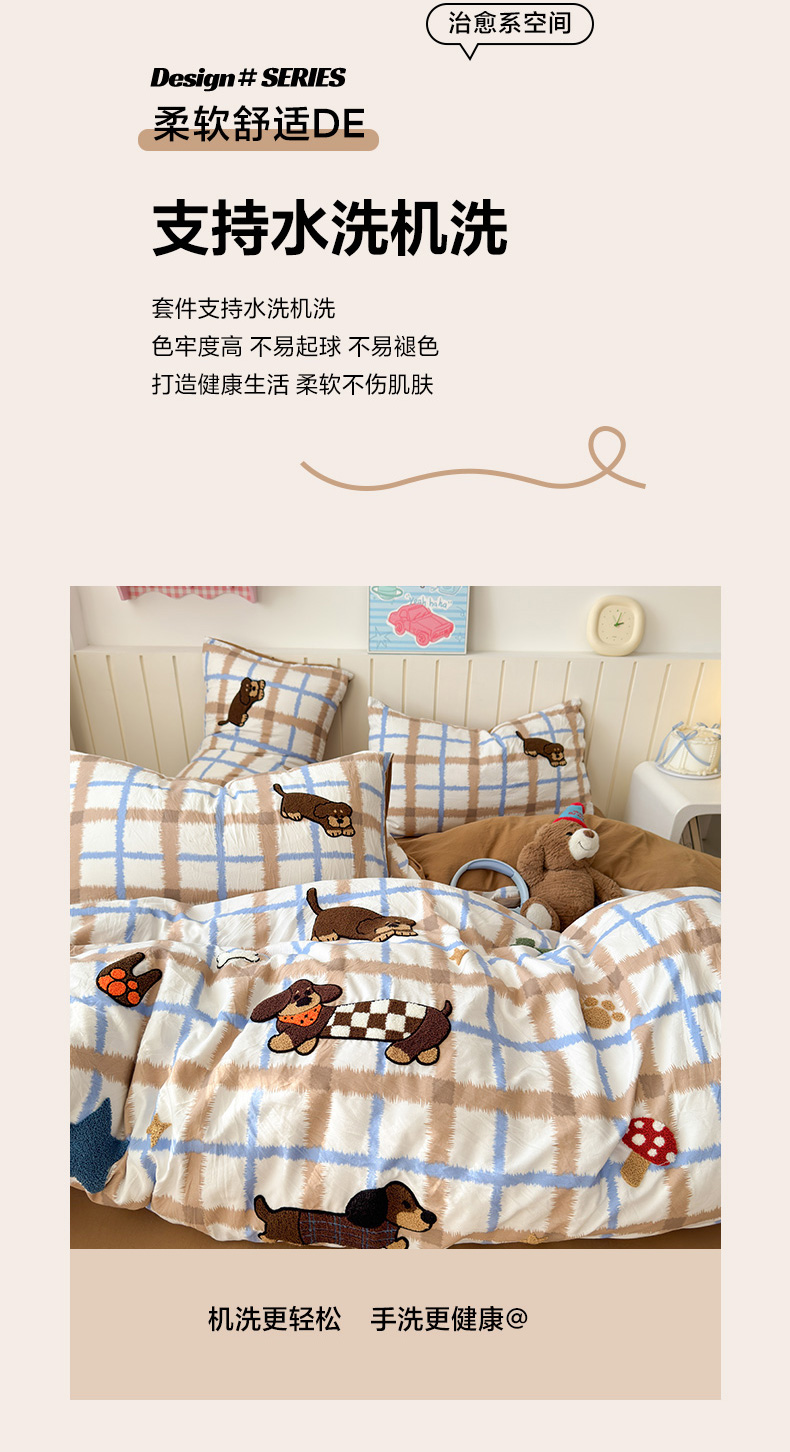(总)欣宜家纺 2026新款云朵棉毛巾绣床上四件套卡通被套床单学生宿舍三件套