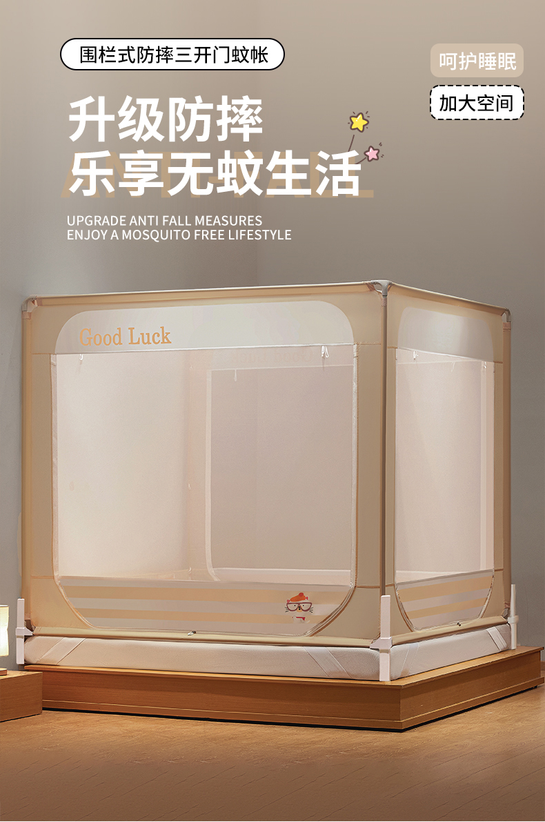 当前位置: 91家纺网 > 商品网购 > 床上用品 > 蚊帐 > 坐床式蚊帐 > 雪姿家纺 2026新款外穿杆三开u型门回底床笠款防摔蚊帐-星梦 星梦-浅粉玉