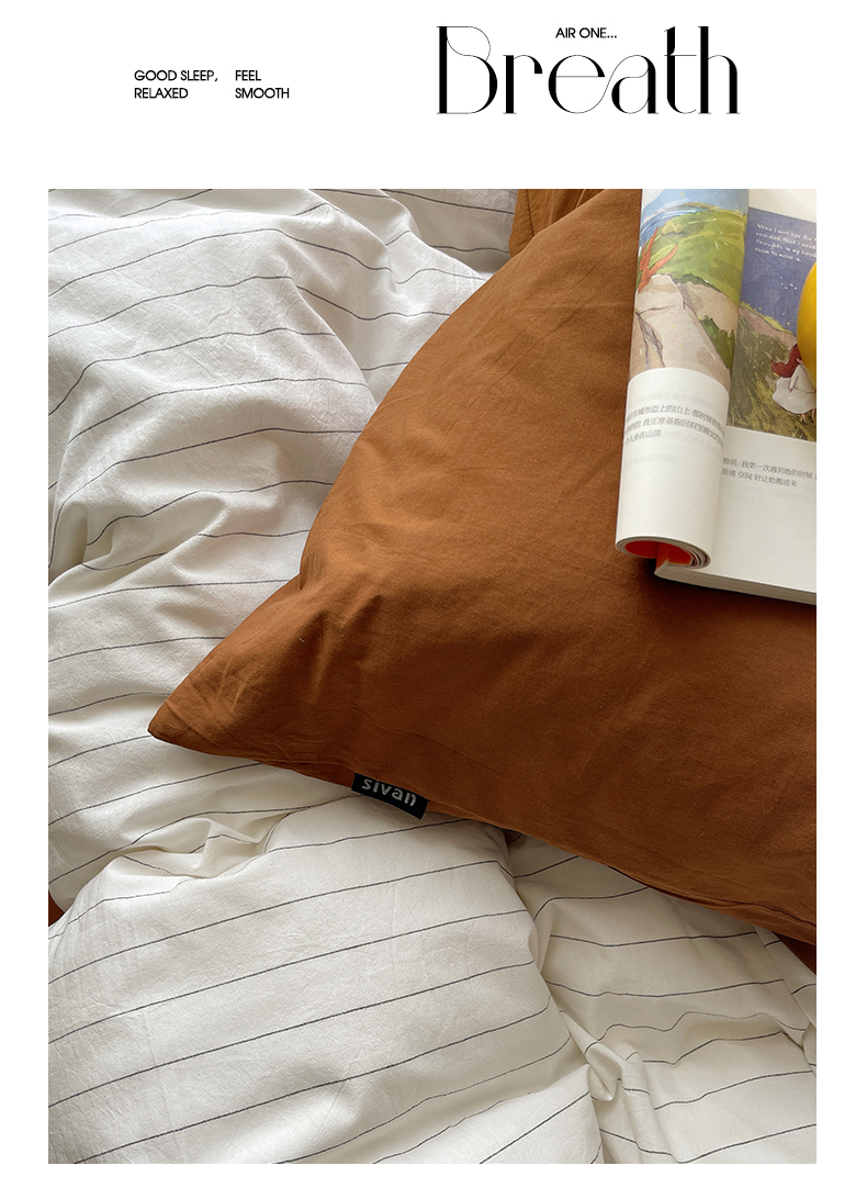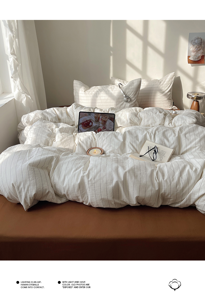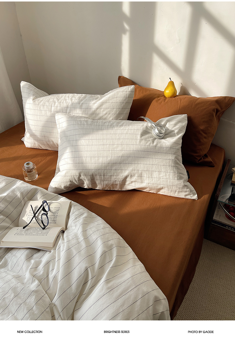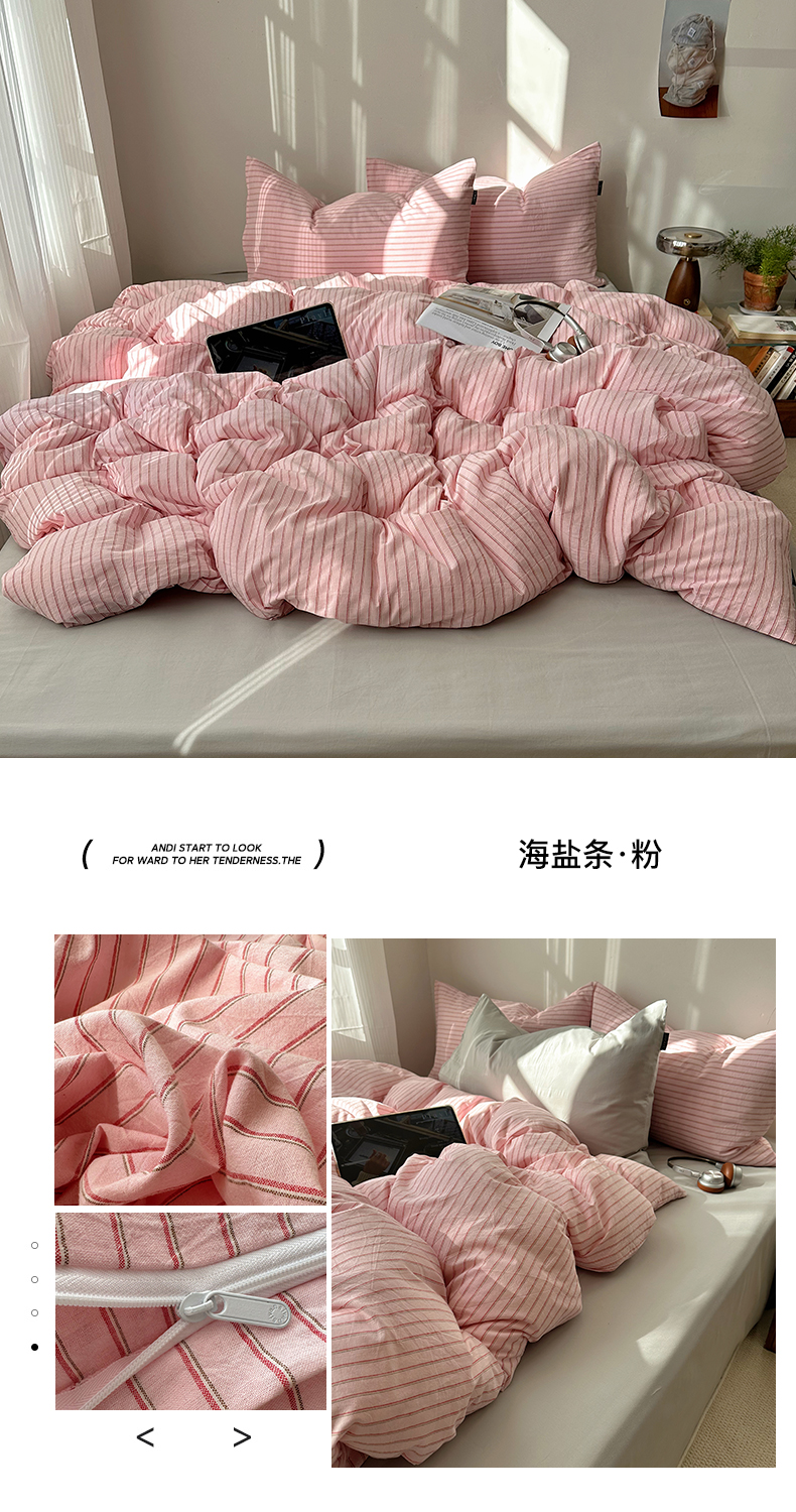 希文2023新款40s全棉色织水洗棉四件套 极细条纹-豆沙(枕套混搭),极细条纹-豆沙(枕套混搭)