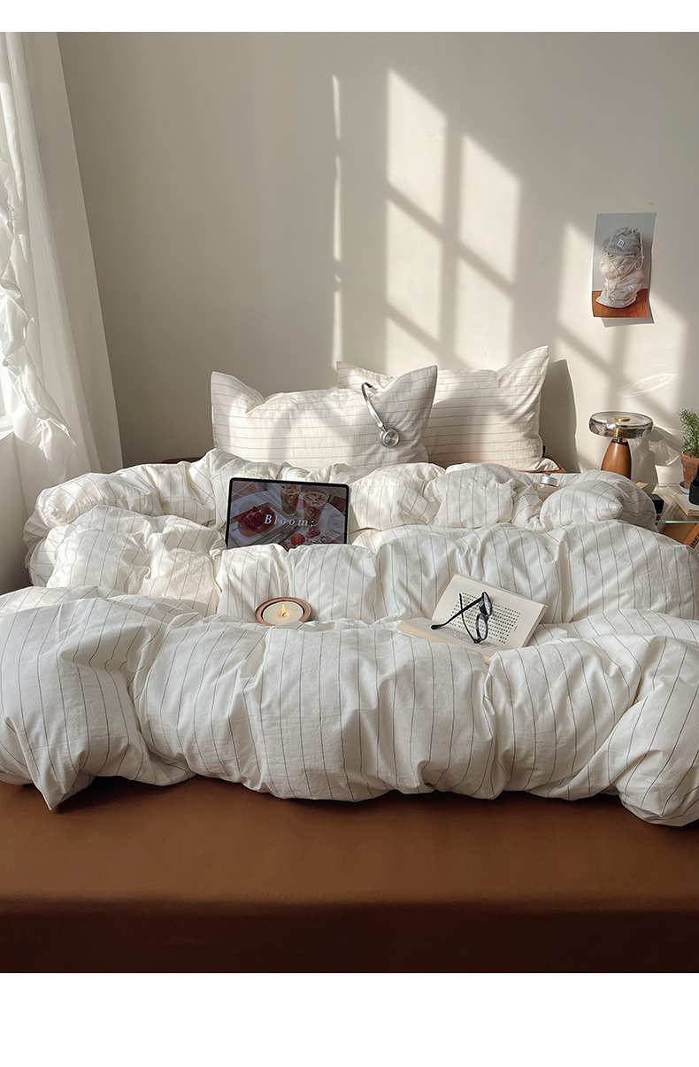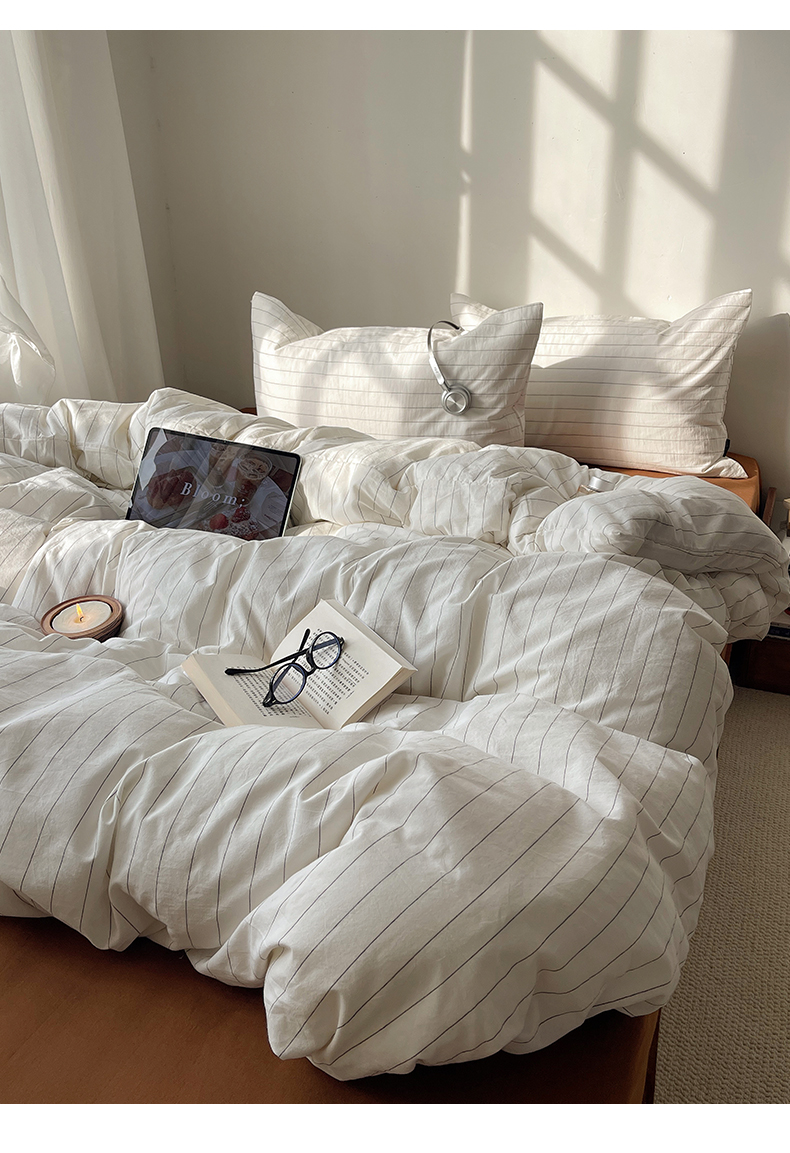 (总)希文 2023新款40s全棉色织水洗棉四件套-条纹系列,极细条纹-豆沙(枕套条纹),极细条纹-绿(枕套条纹),极细条纹-米色(枕套条纹),极细条纹-深灰(枕套条纹),极细条纹-豆沙(枕套混搭),极细条纹-绿(枕套混搭),极细条纹-米色(枕套混搭),极细条纹-深灰(枕套混搭)