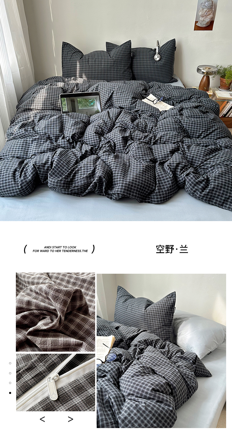 希文 新款40s全棉色织水洗棉四件套-格子系列 迷迭-黑黄(格子混搭),迷迭-黑黄(格子混搭)