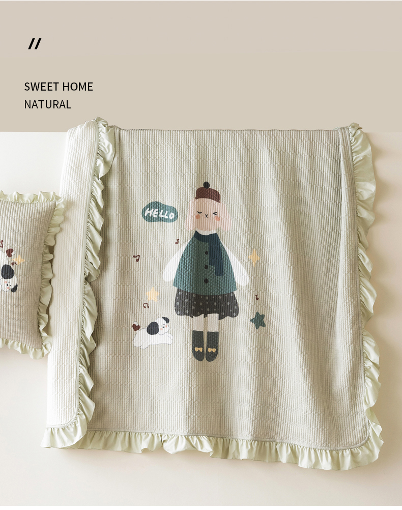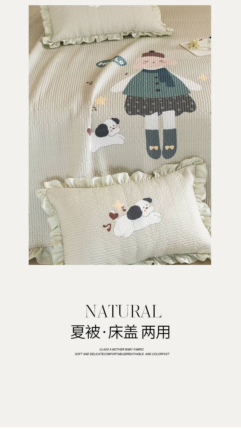 商品名称:立奥被业 2026新品古法水洗棉夏被仿棉大版床盖防棉大版夏被 童梦绿