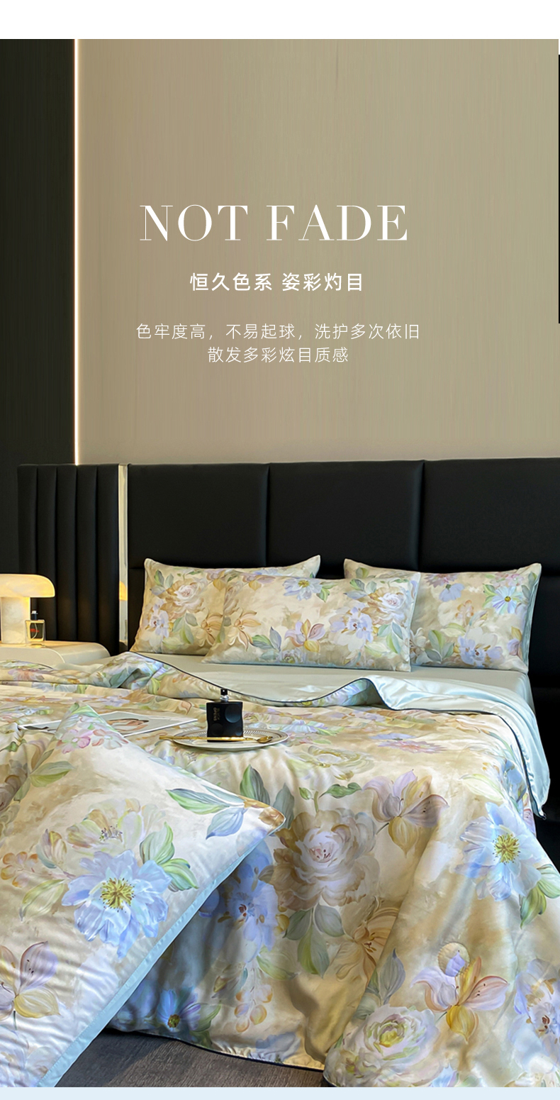 绒棉世家 2026新款100%莱赛尔天丝面料数码印花天丝夏被四件套 倾城