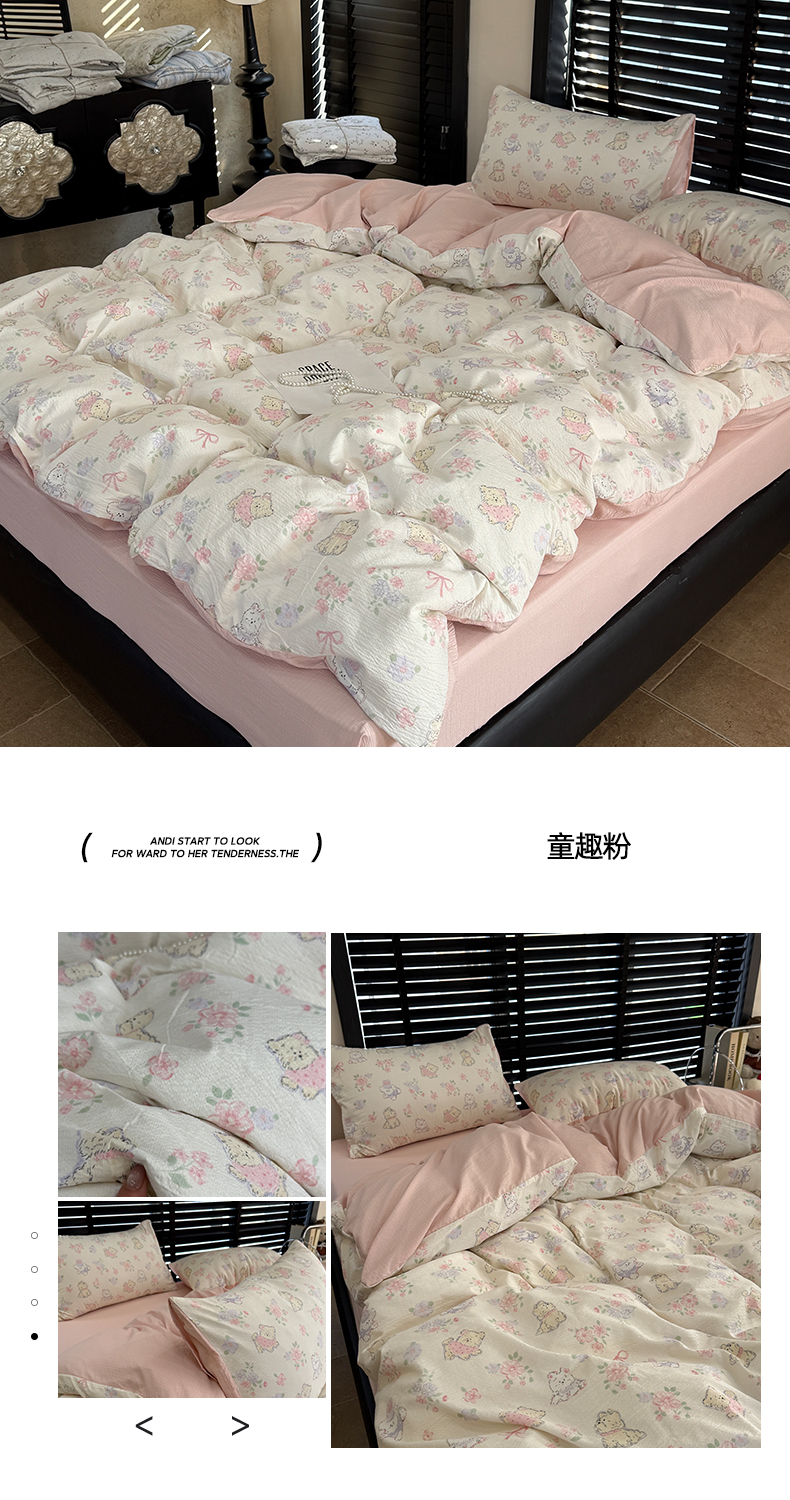 (总)美丽坊 2026新款爆款韩版泡泡纱四件套,爱丽丝,草莓啵啵,超级玛丽,杜若,朵蔓,哈基米,海派甜心,花间鹿,花汀,米亚,小蓝盯,星星人,组合图(仅供展示不可下单)
