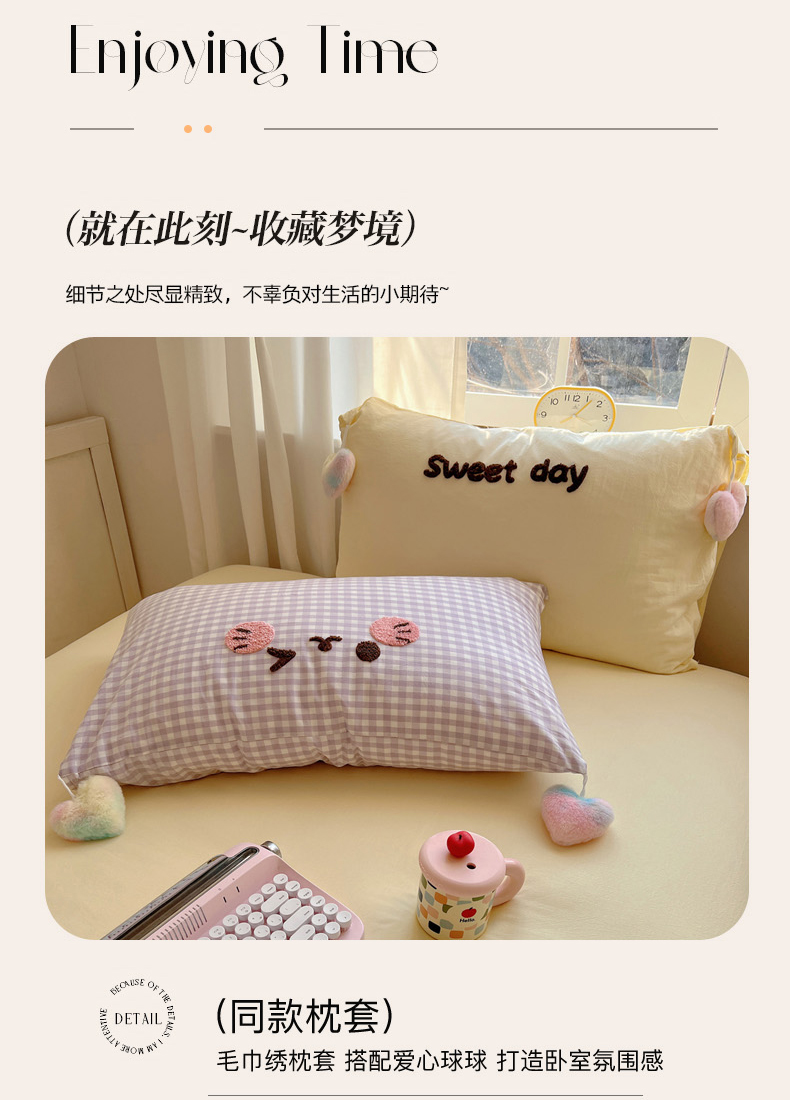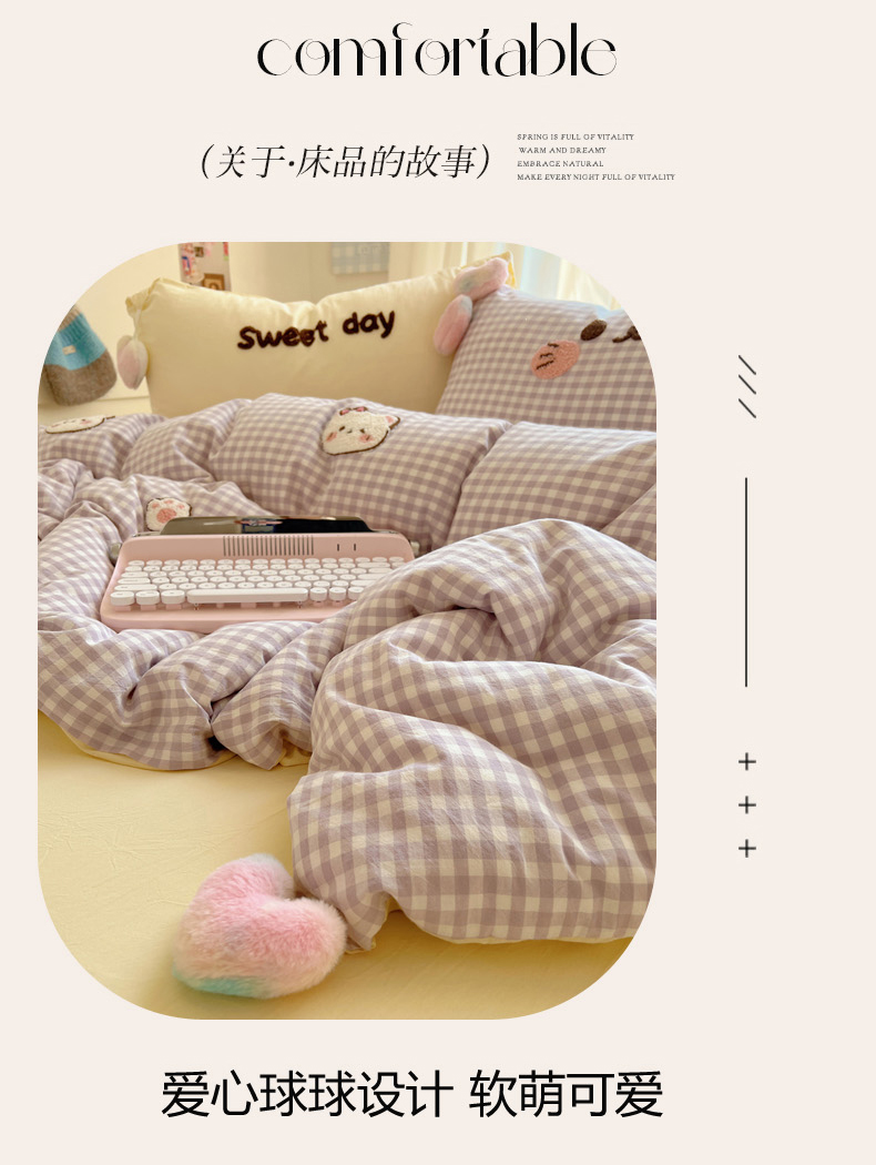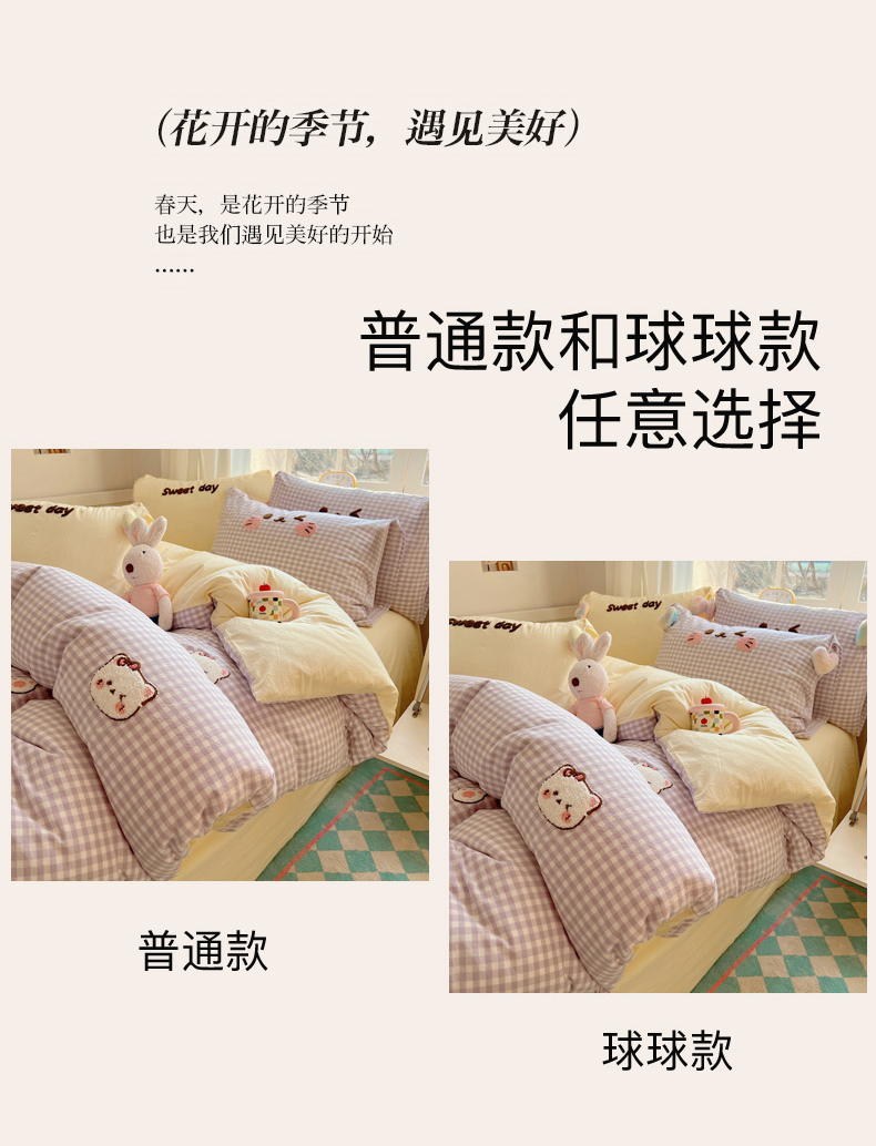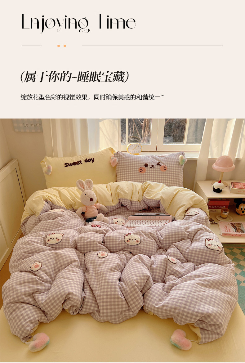 当前位置: 91家纺网 > 商品网购 > 床品套件 > 四件套 > 全棉普通四件套 > 丽涵家纺 2026新款全棉色织水洗棉毛巾绣四件套-甜心小猫 甜心小猫-紫格-简单款