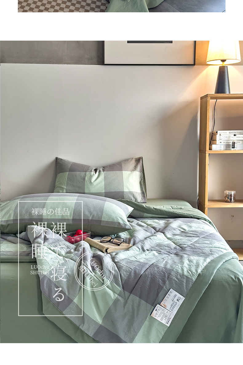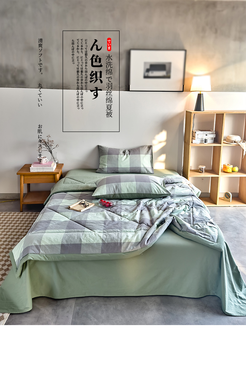 春皖家纺 2026新款全棉色织羽丝绒夏被-风格1 素雅-清格