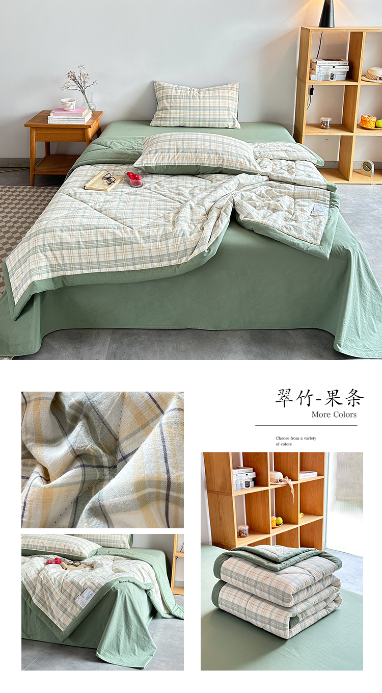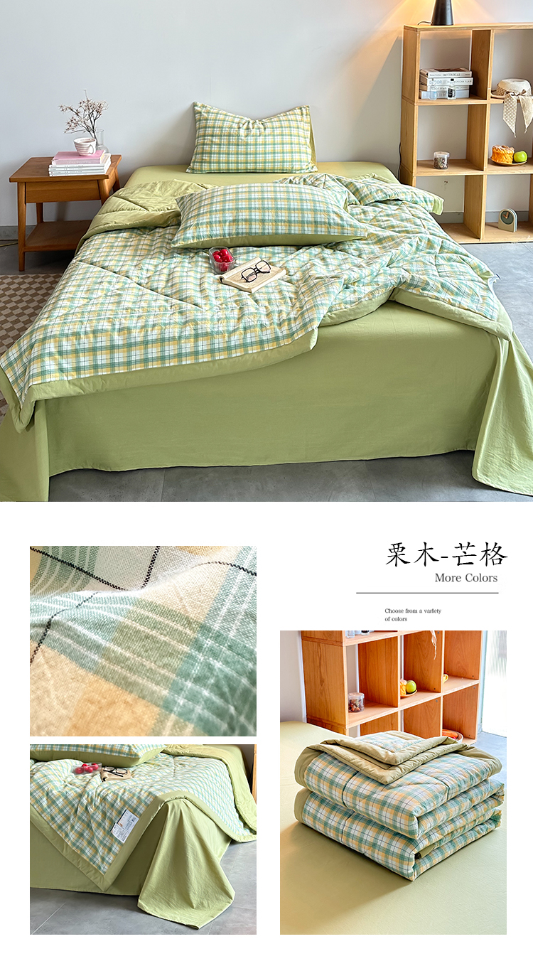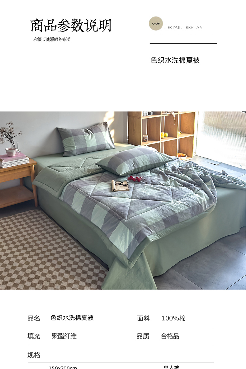 • 91家纺网 家纺一手货源 找家纺 春皖家纺 2026新款全棉色织羽丝绒夏被-风格1 素雅-清格