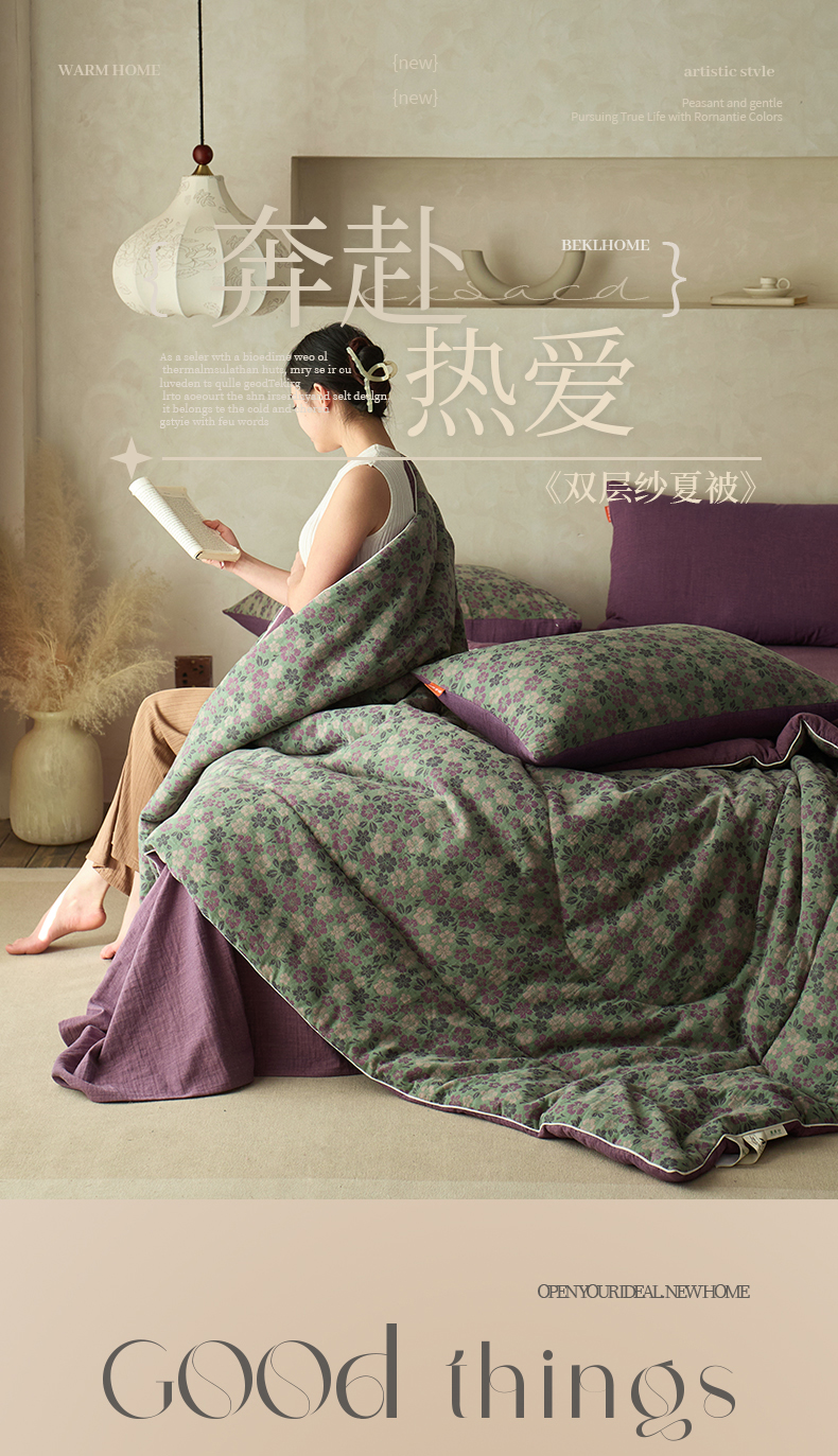 • 91家纺网 家纺一手货源 找家纺 春皖家纺 2026新款全棉双层提花夏被四件套 春光灿烂