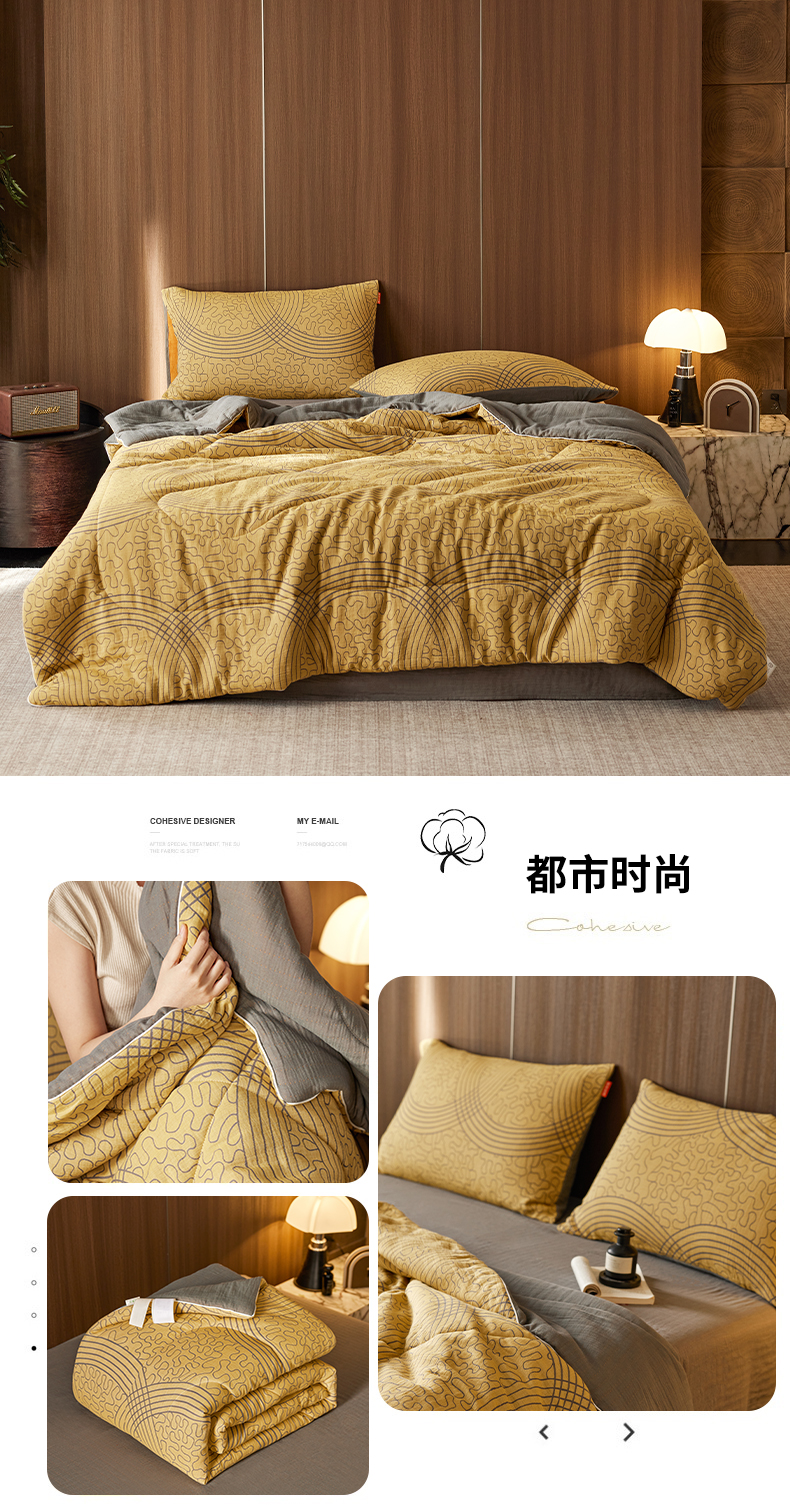 • 91家纺网 家纺一手货源 找家纺 春皖家纺 2026新款全棉双层提花夏被四件套 映阳黄蓝