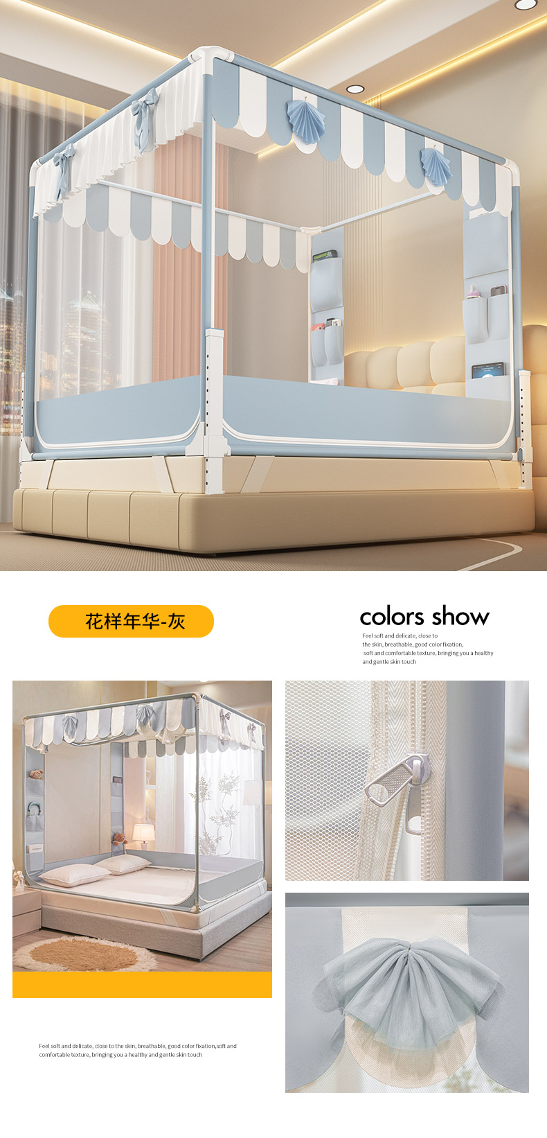 当前位置: 91家纺网 > 商品网购 > 床上用品 > 蚊帐 > 坐床式蚊帐 > (总)富莱星蚊帐 2026新款双丝加厚网纱坐床蚊帐大力士围栏擎天柱支架-花样年华