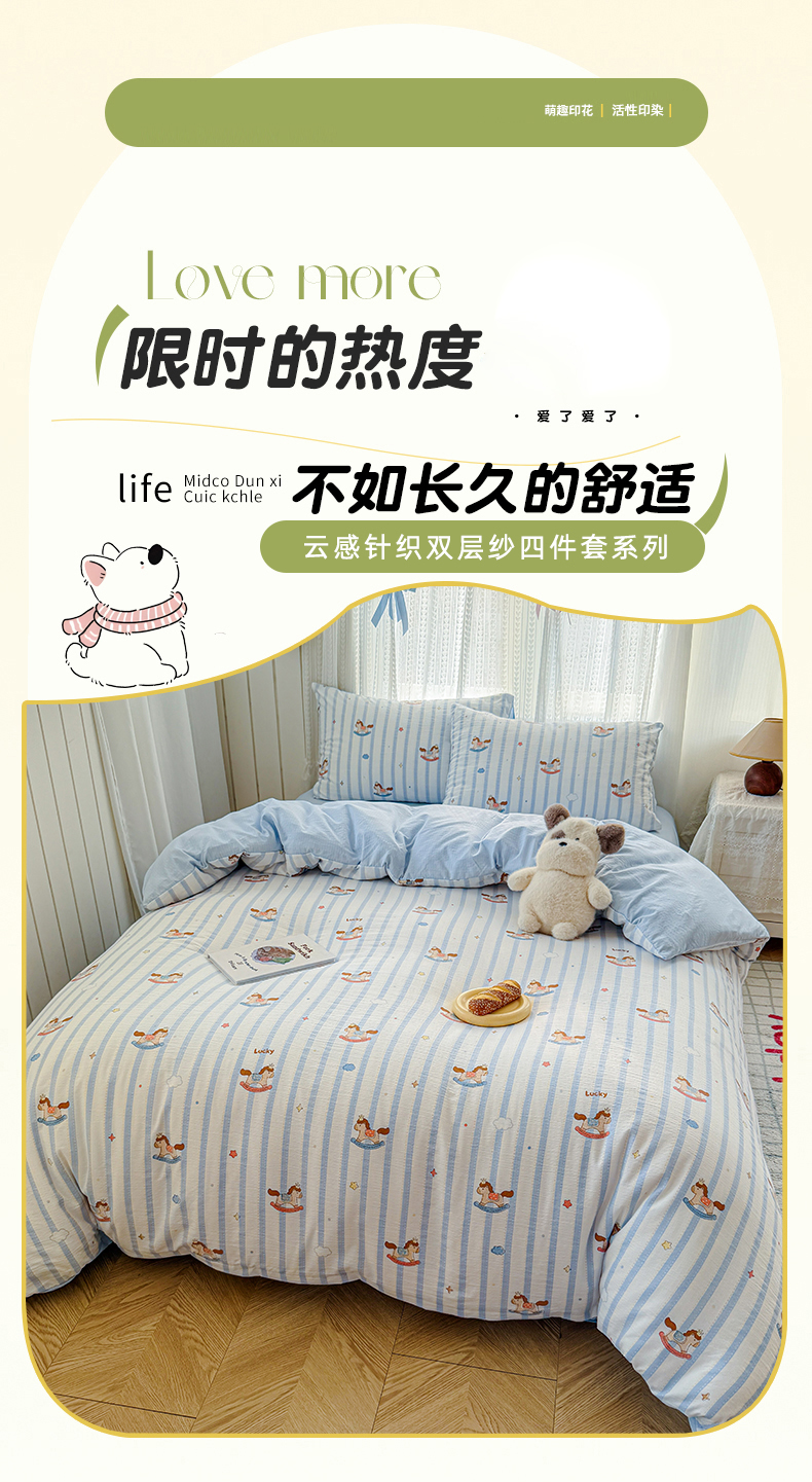 (总)温眠家纺 2026新款敲可爱的奶呼呼云感双层纱简约四件套系列-超级治愈~,裙子小兔,暗夜玫瑰,大脸二胡猫-粉,大脸二胡猫-咖,大脸二胡猫-蓝,蛋糕派,动物游园,蝴蝶剪影,见花则喜,焦糖樱桃,镜子里的兔,蓝莓奶糖,铃兰结,六子棋-绿,木马,奶昔甜糕,苹果小怪,葡萄多多,俏皮狗,切块草莓猫,清风与雾-蓝,苏瑾,童年木马,像素小猫,烟紫,一口青苹果,樱桃奶球,竹歆花语