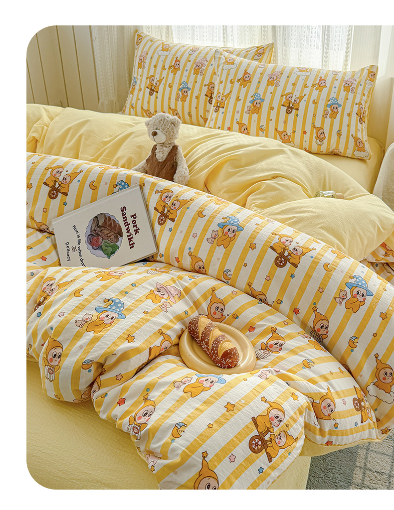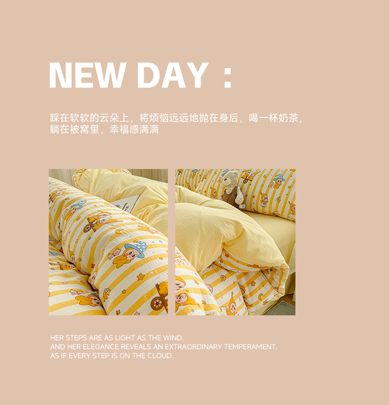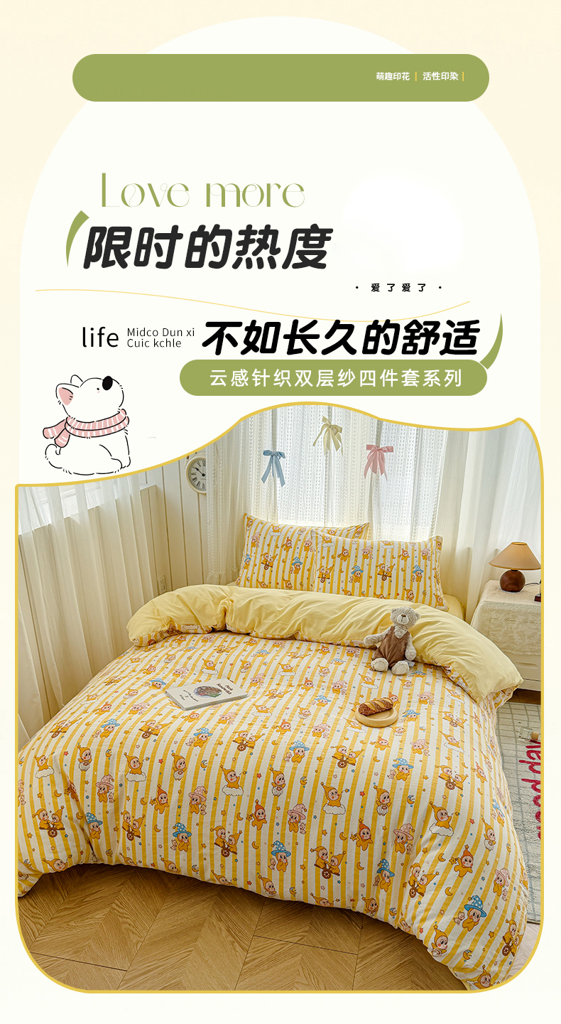 当前位置: 91家纺网 > 商品网购 > 床品套件 > 四件套 > 双层纱四件套 > 温眠家纺 2026新款云感针织提花双层纱四件套 快乐星星