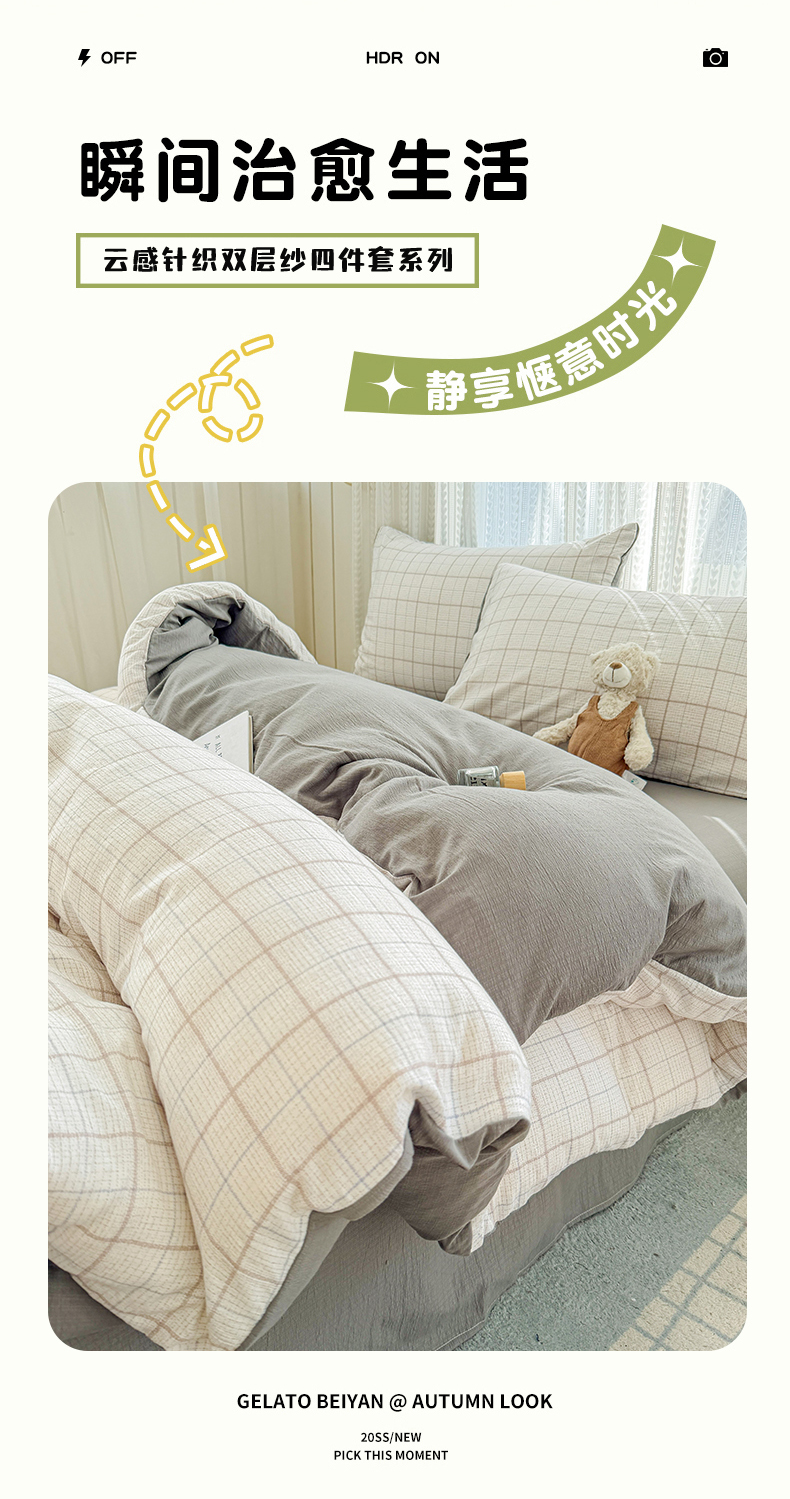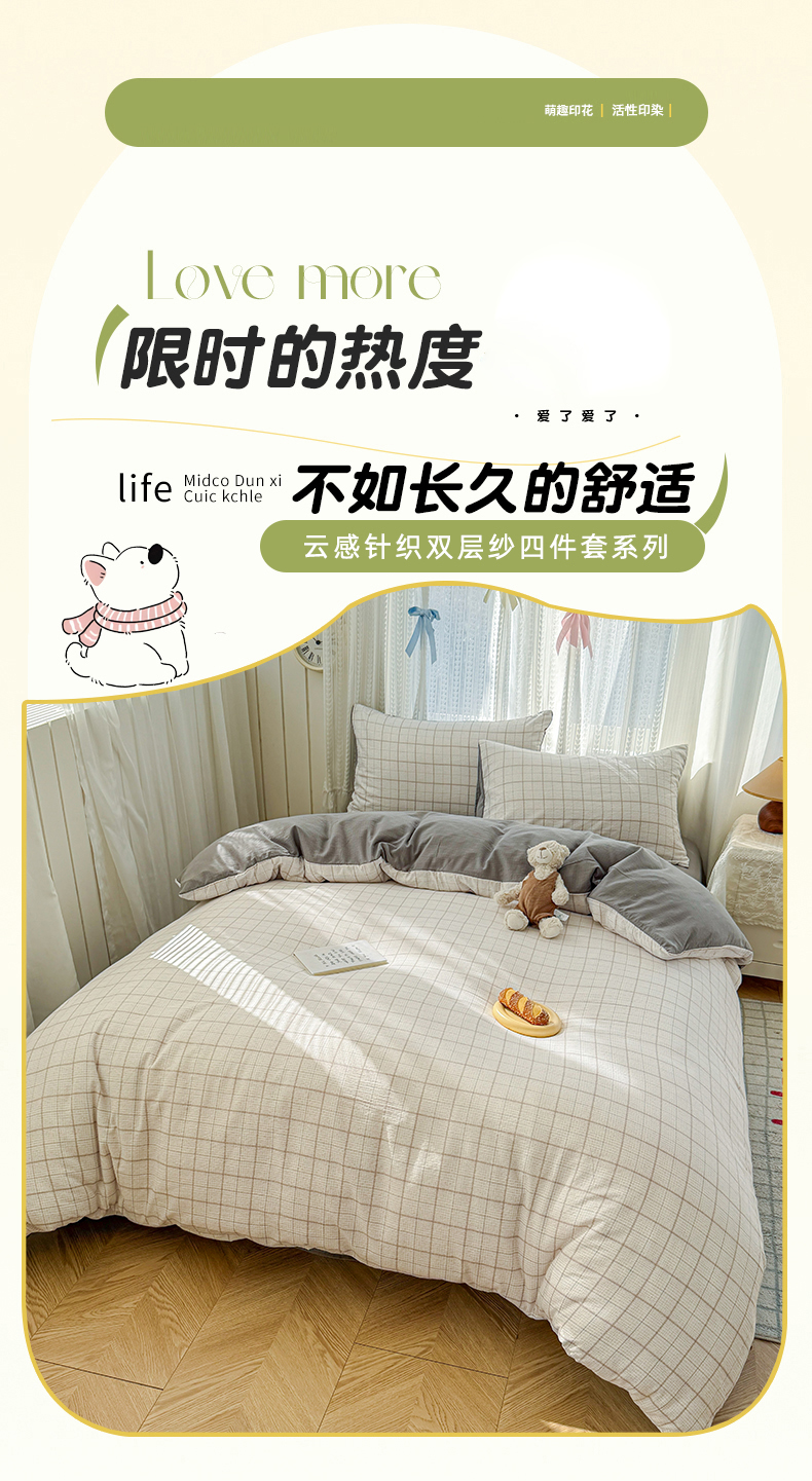 当前位置: 91家纺网 > 商品网购 > 床品套件 > 四件套 > 双层纱四件套 > 温眠家纺 2026新款云感针织提花双层纱四件套 未来暮